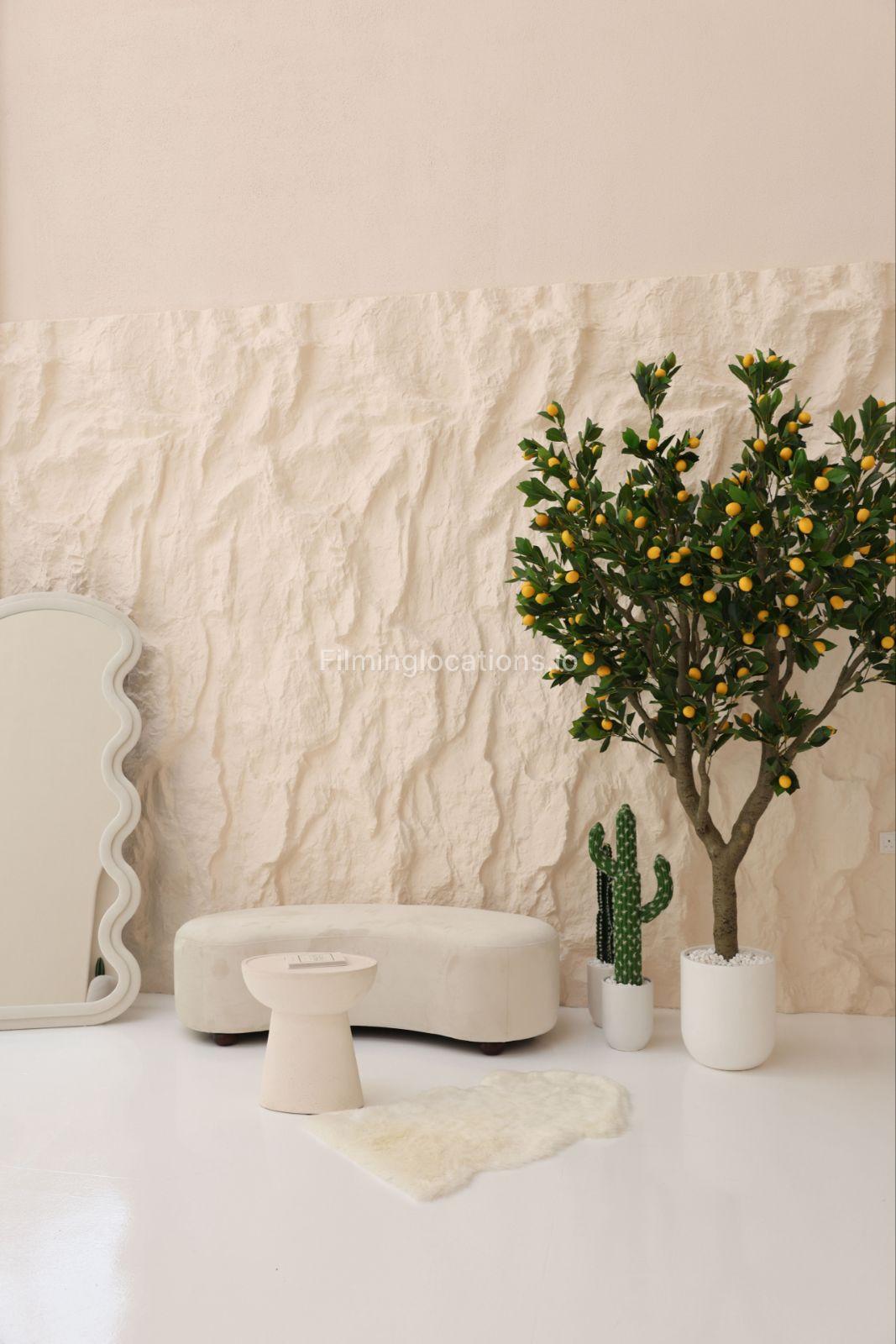 Our studio features creamy beige walls, natural textures, and soft indirect lighting, creating a timeless, editorial-quality backdrop for any shoot.