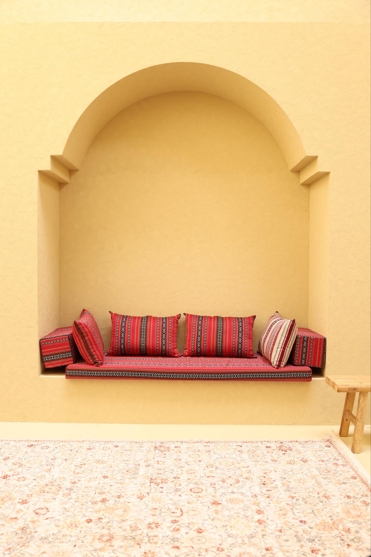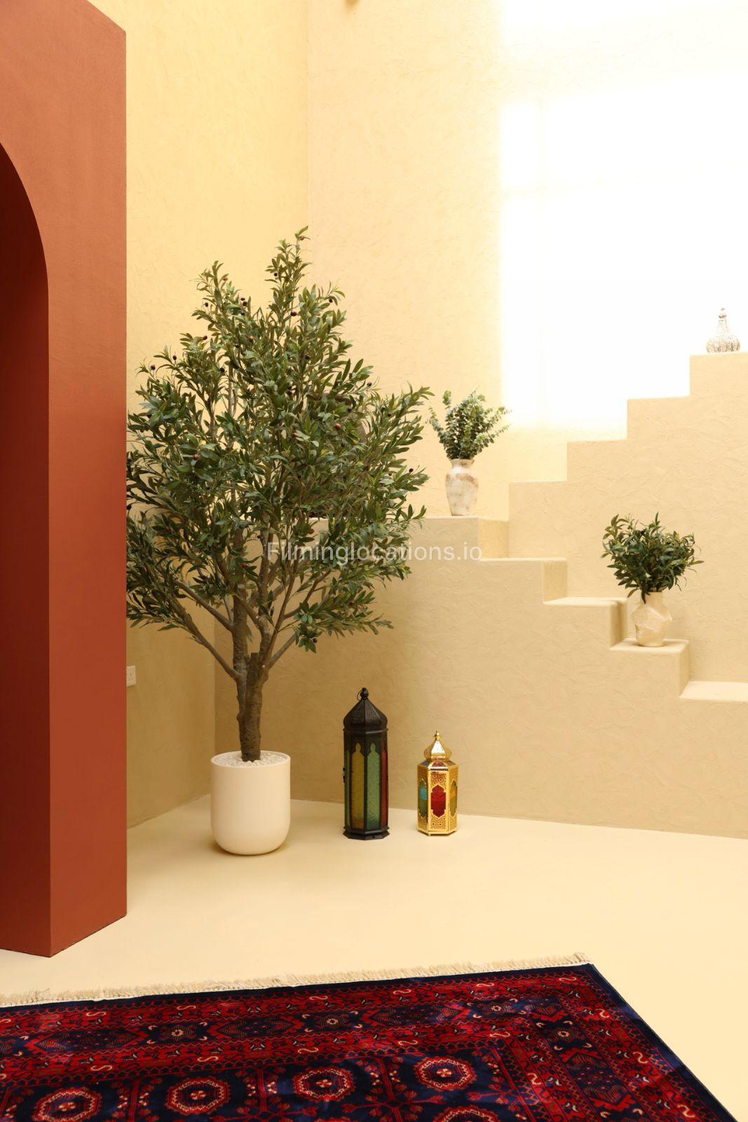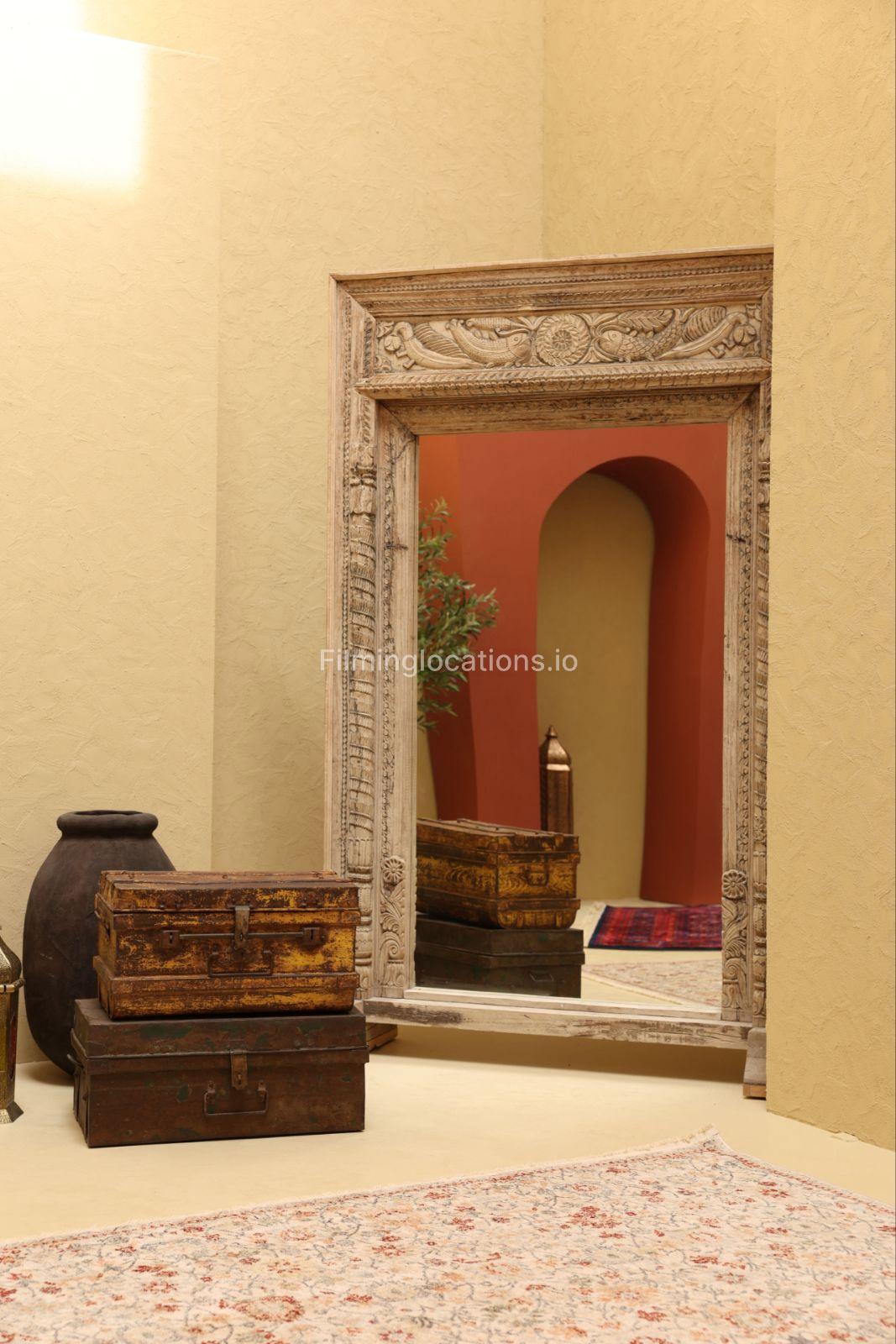 Our heritage-themed studio blends culture, comfort, and character, featuring terracotta arches, woven rugs, and soft light through traditional forms. Rooted in tradition, the space offers modern creative freedom for distinctive visuals.