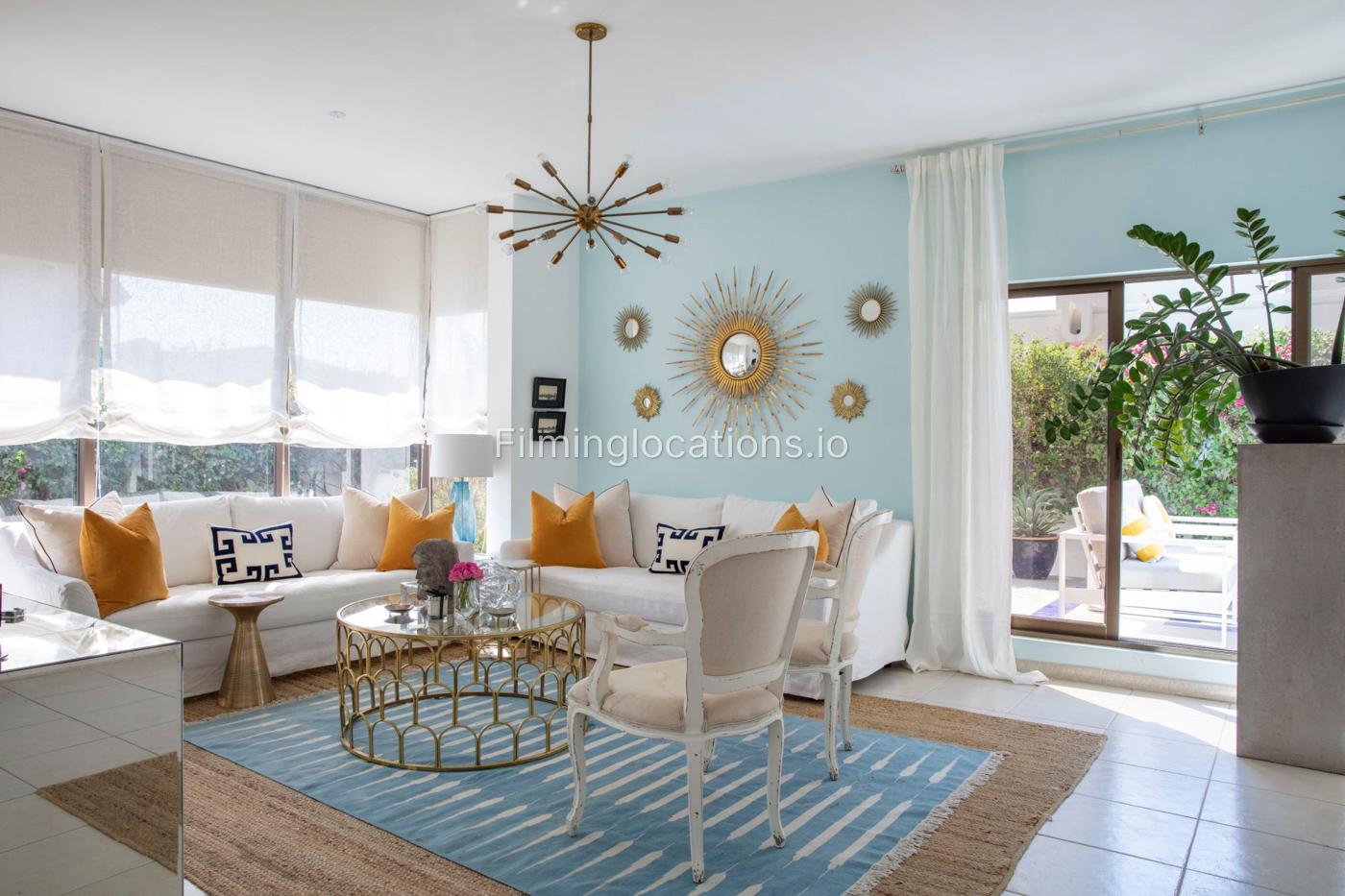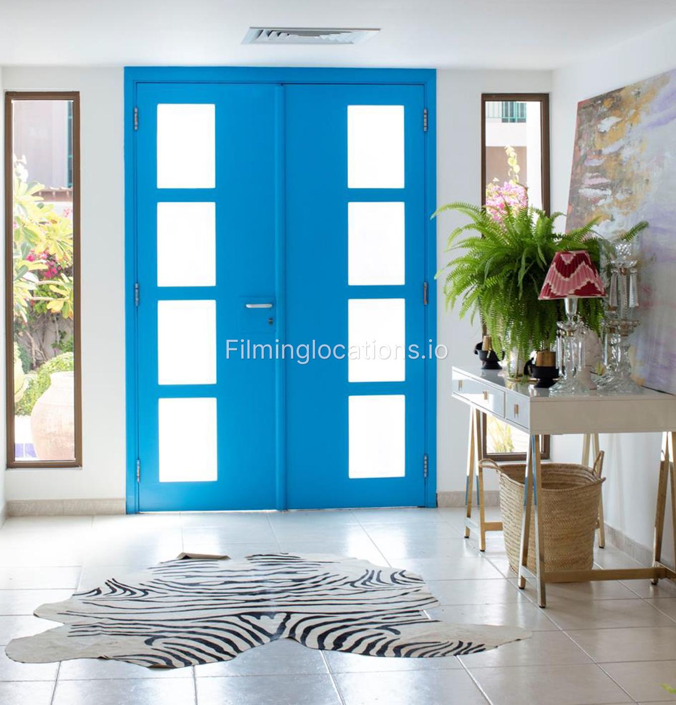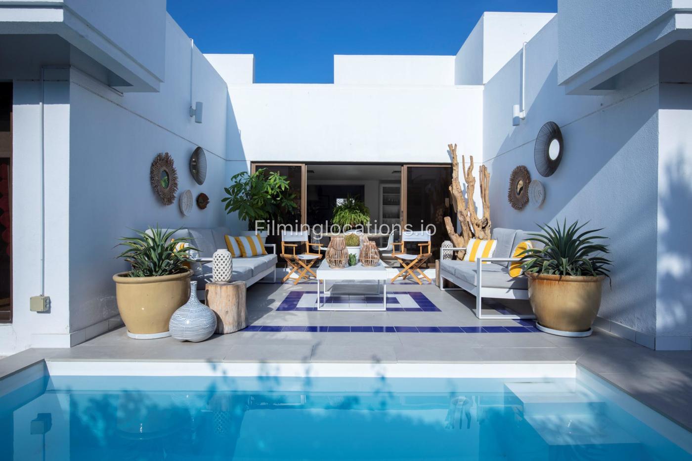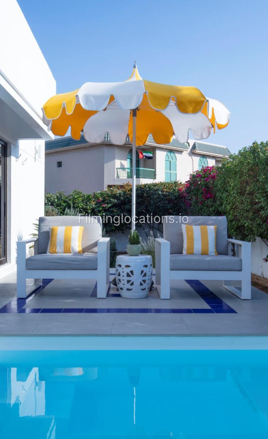 A unique exclusive Santorini-style house in Umm Suqeim will be perfect for small and medium commercial shoots. This custom-made villa has 2 bedrooms, 2 offices, and 2 bathrooms and 1 guest WC. It also has a Greece-style swimming pool with a beautiful terrace area, a front garden with medium size lawn, Provence-style garden at the back of the house.