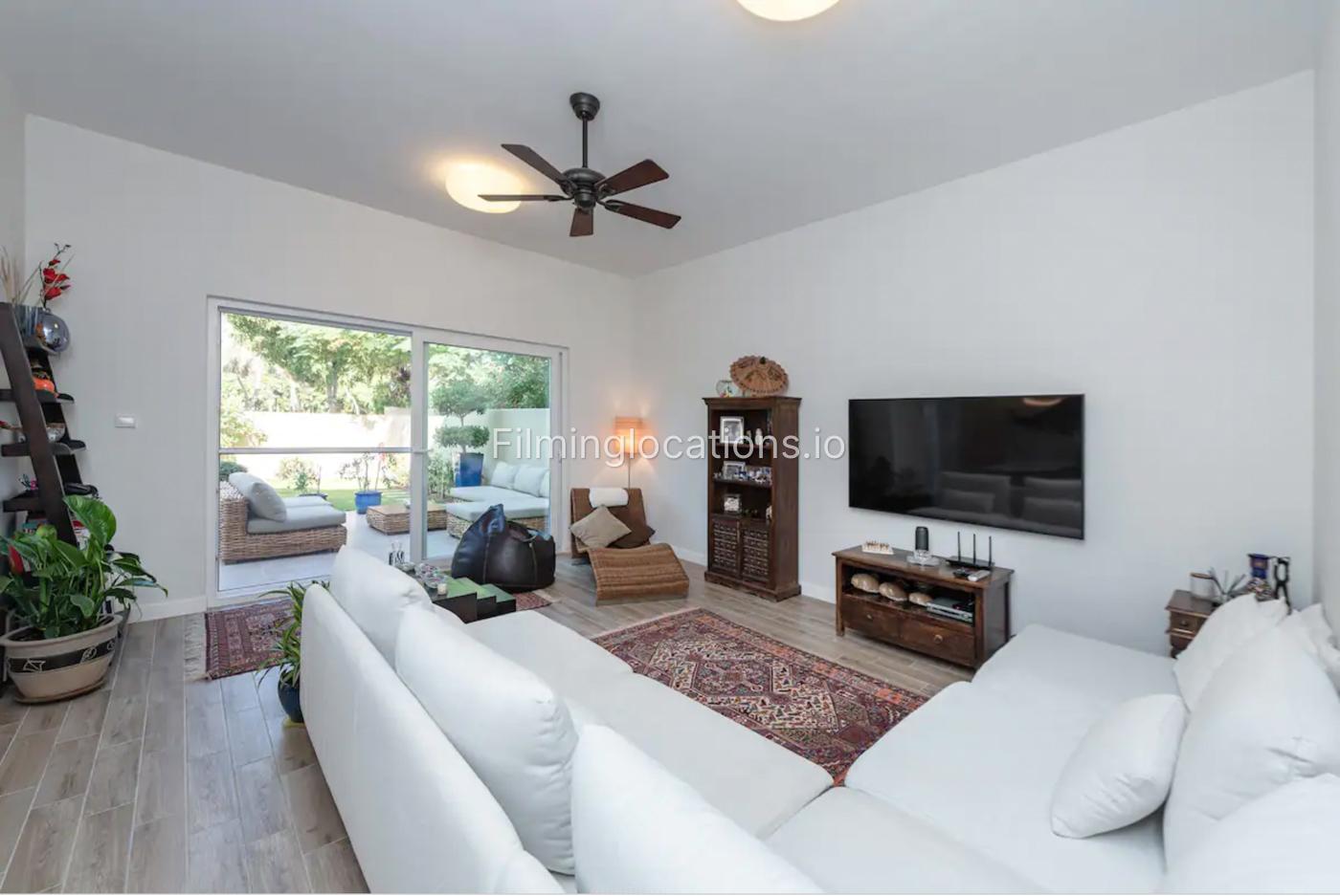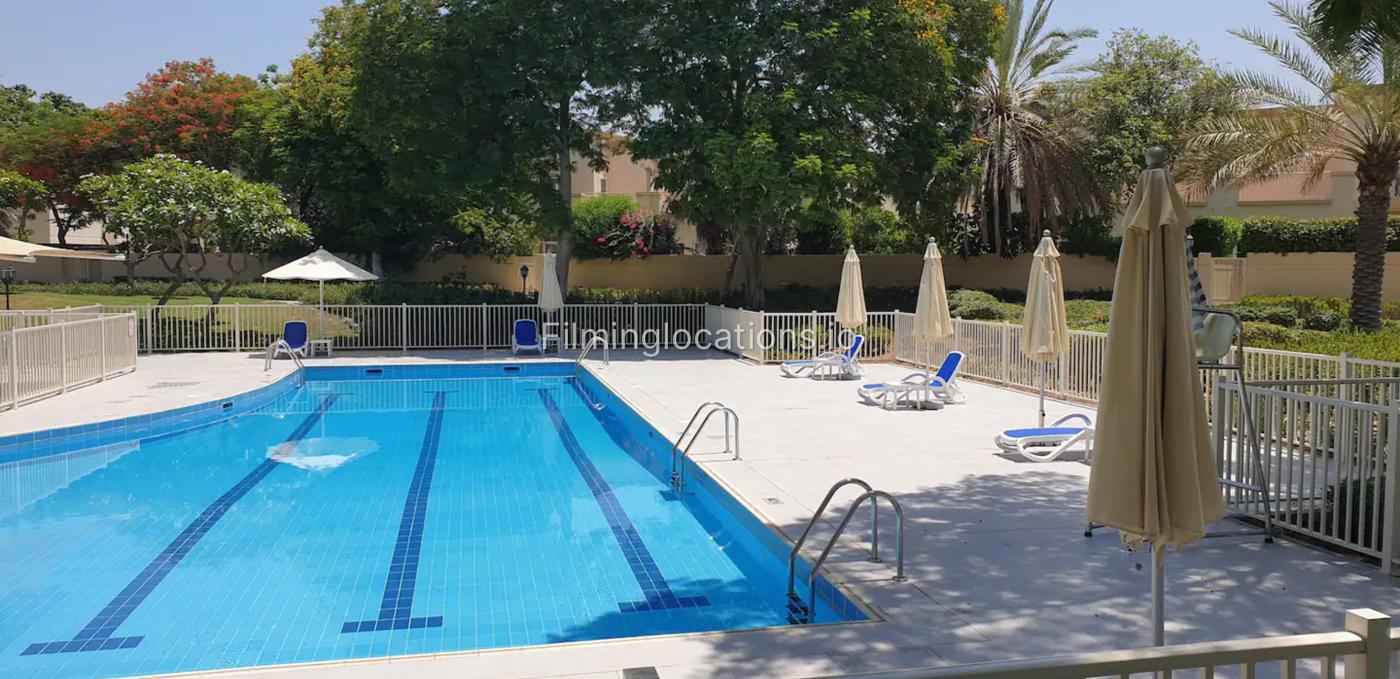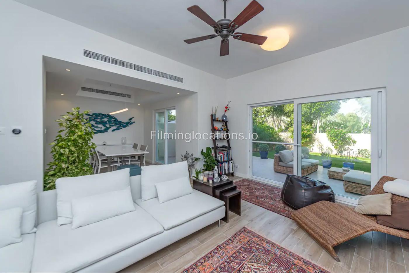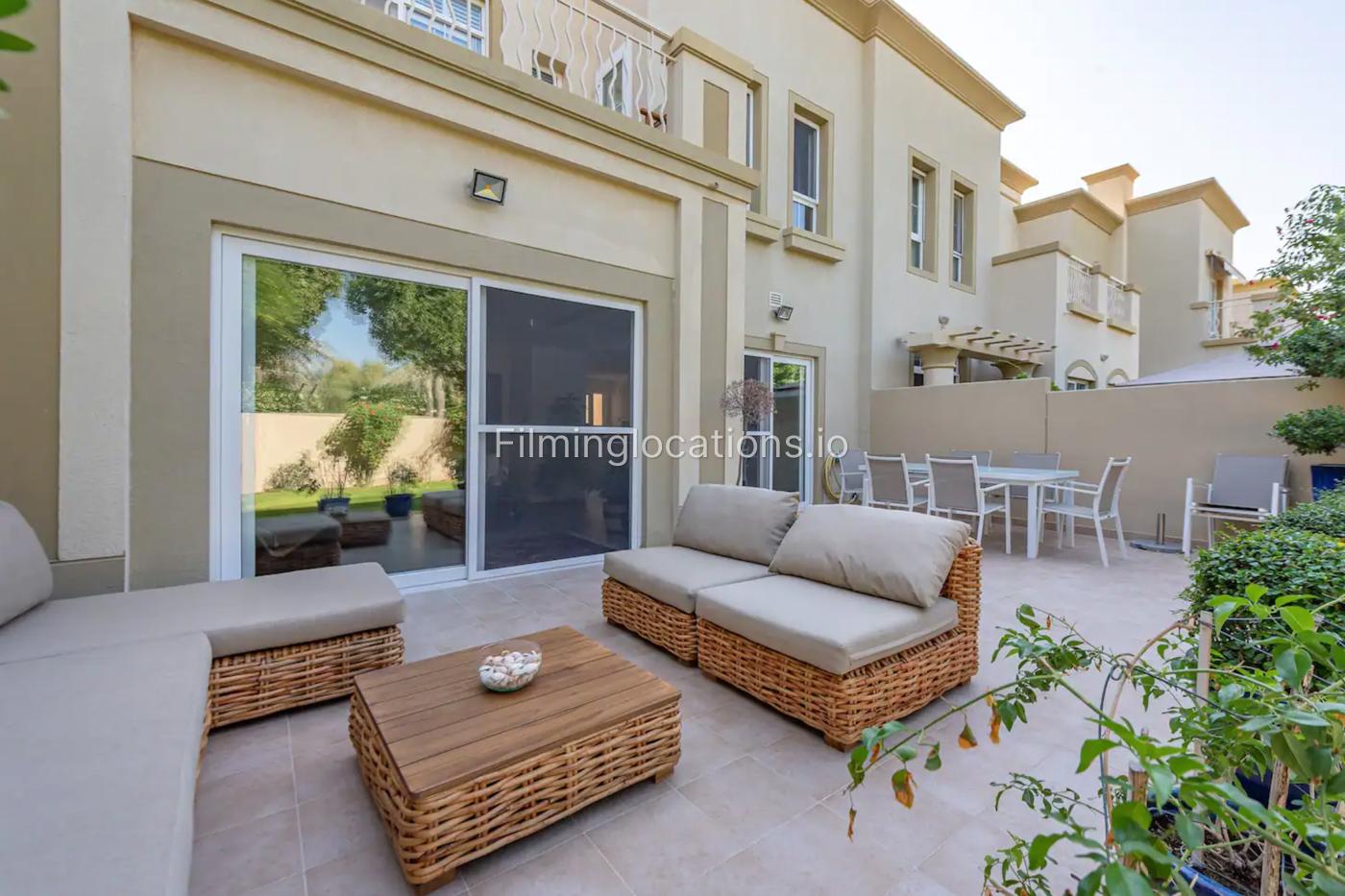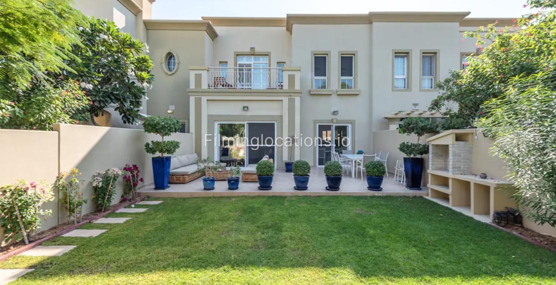 The villa has a cosy living room, dining room connected with the kitchen, with big windows facing the villa garden, proving a wonderful light in the afternoons. The highlight of the sleeping area upstairs is a beautiful custom-made walking wardrobe with stunning views on the community park/pool and on the Dubai Marina skyline. The pool is in a common area, upon special request with security.