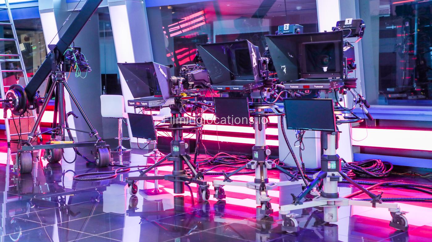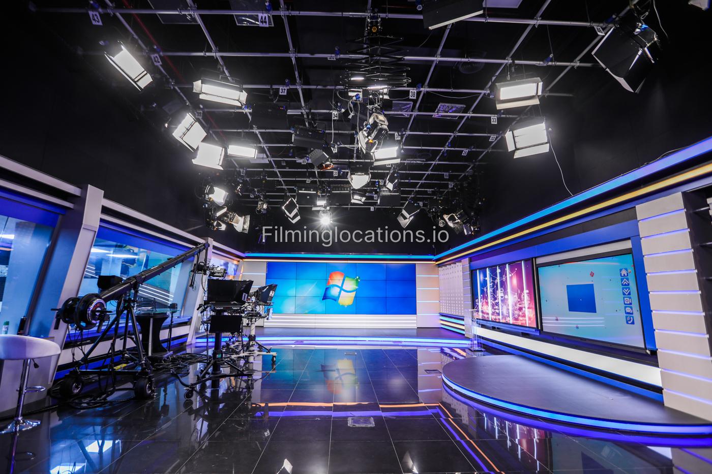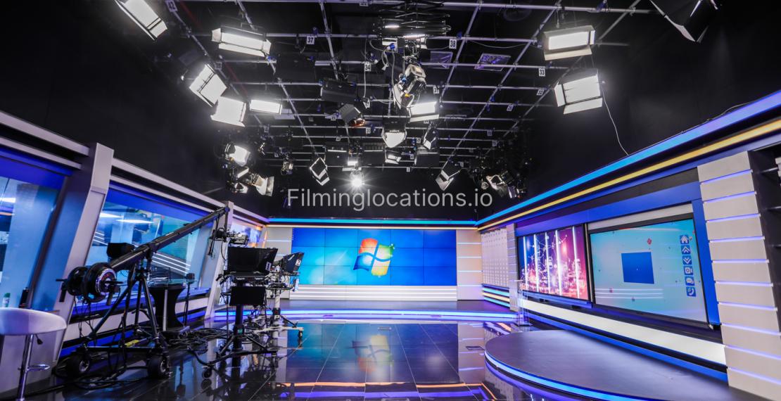 Qty 4 and Jimi Jib, Playout 4 Input/output, VizArt, INEWS ,Teleprompter, Video Editing Suite, Mixers, Switchers) , Green Chroma 14*5 sqm , 15 Skypanal lighting