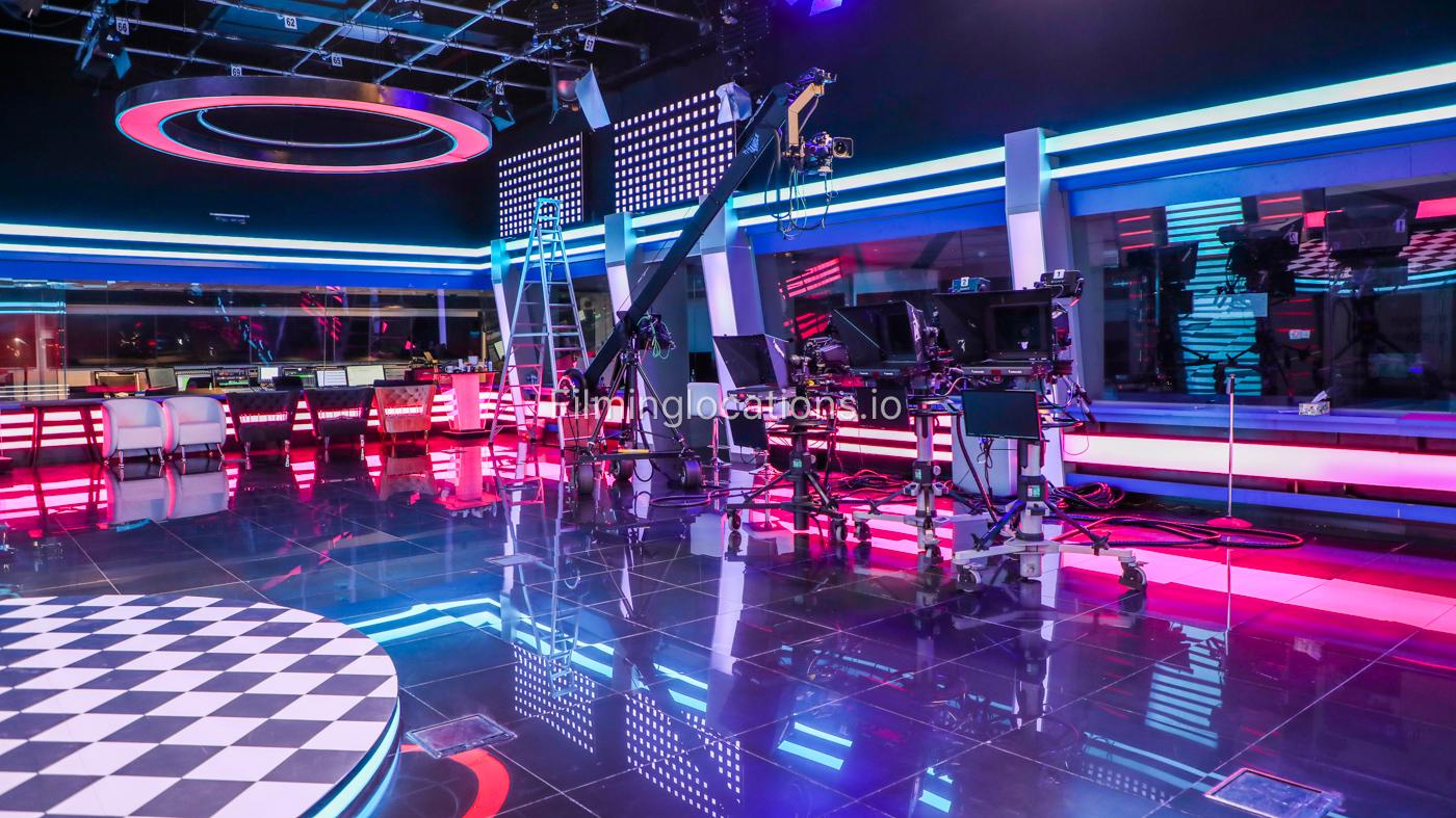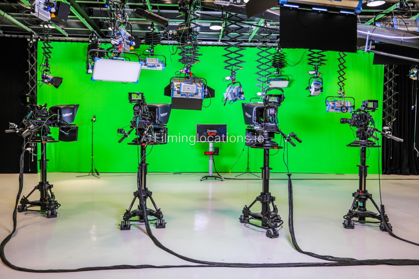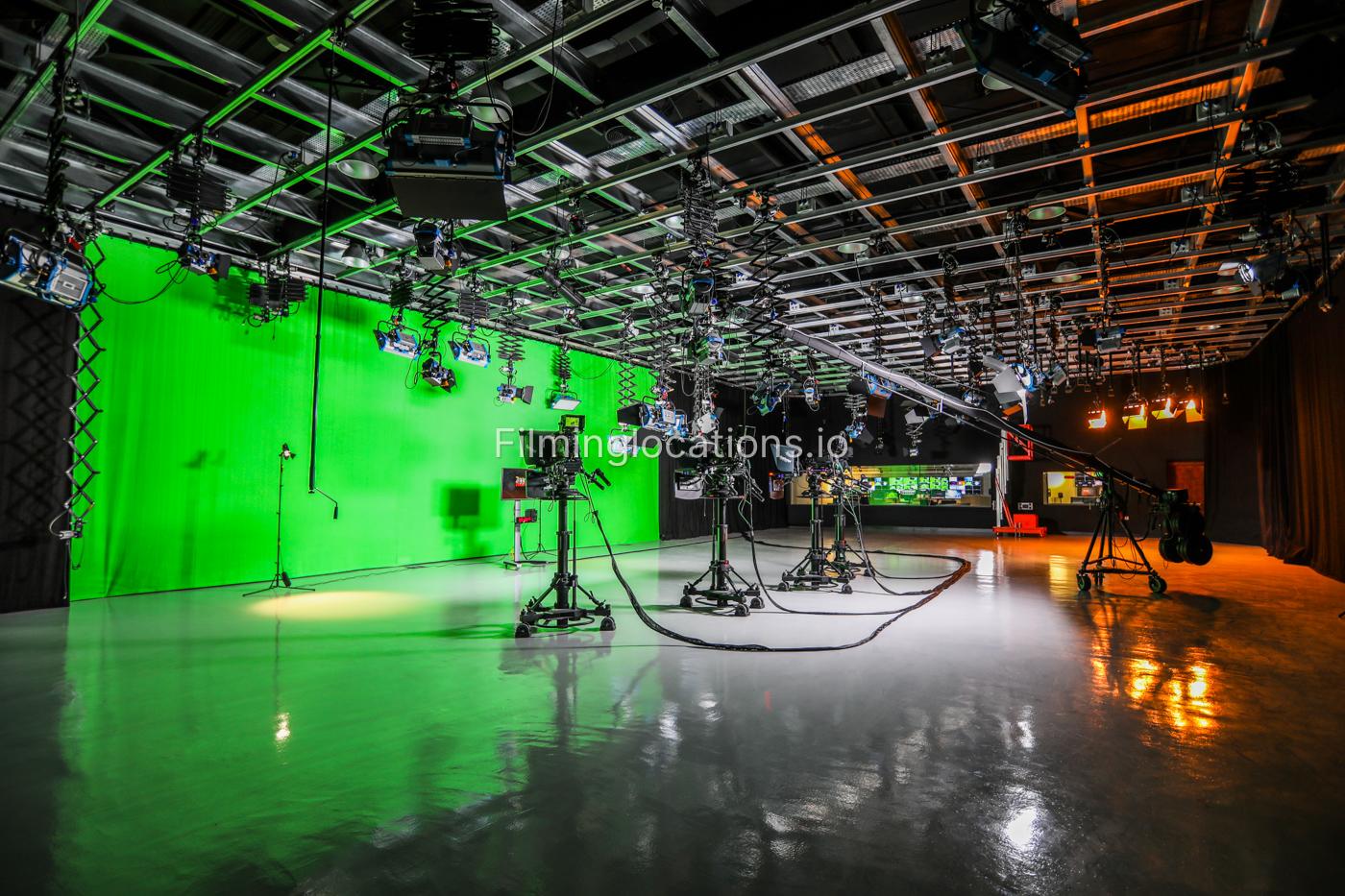 Qty 4 and Jimi Jib, Playout 4 Input/output, VizArt, INEWS ,Teleprompter, Video Editing Suite, Mixers, Switchers) , Green Chroma 14*5 sqm , 15 Skypanal lighting