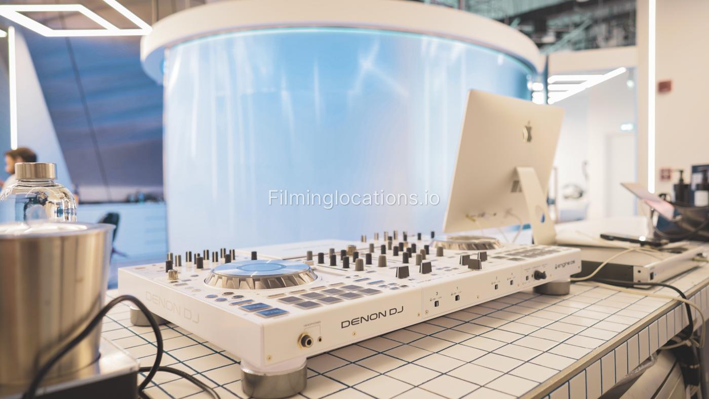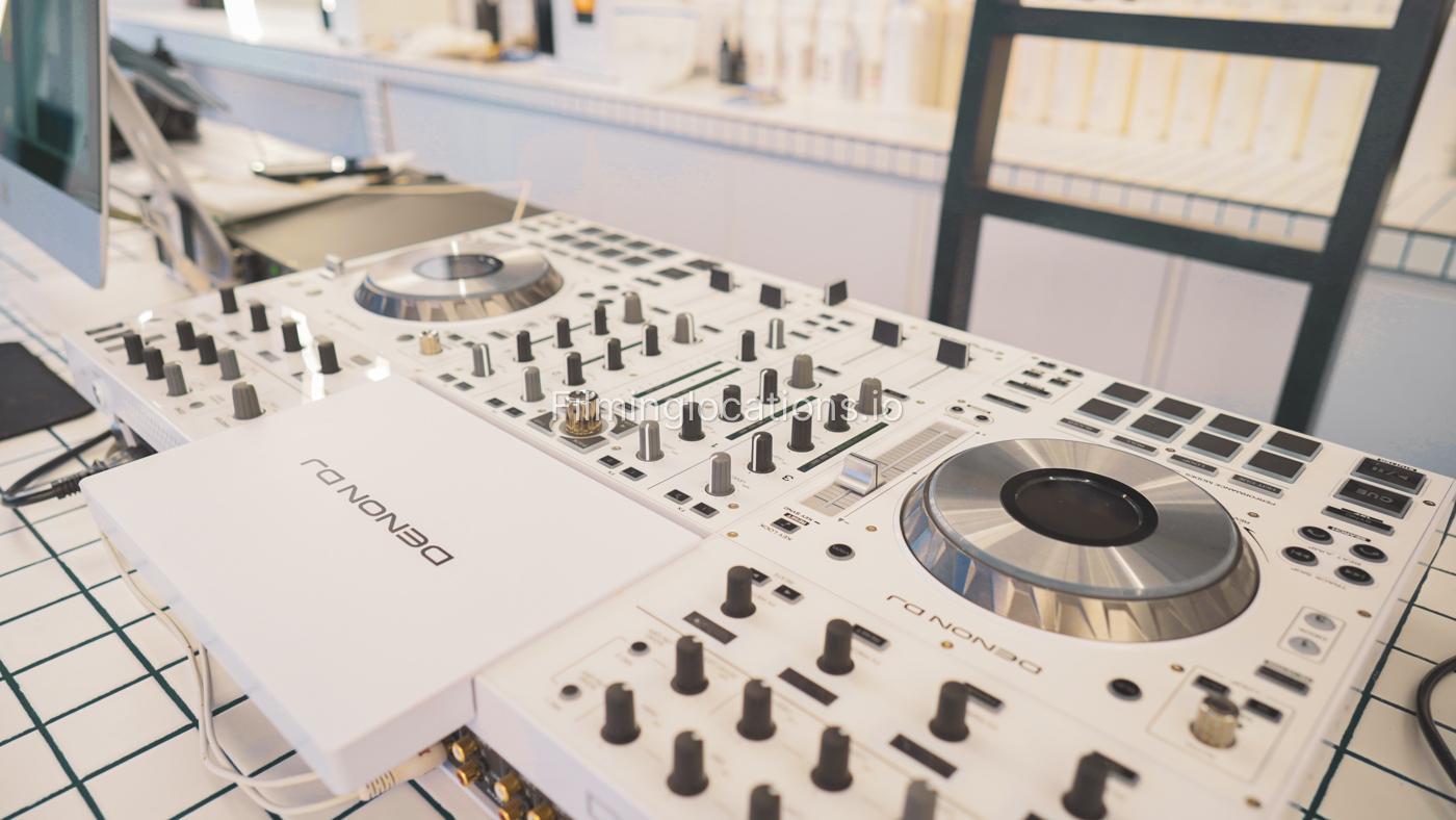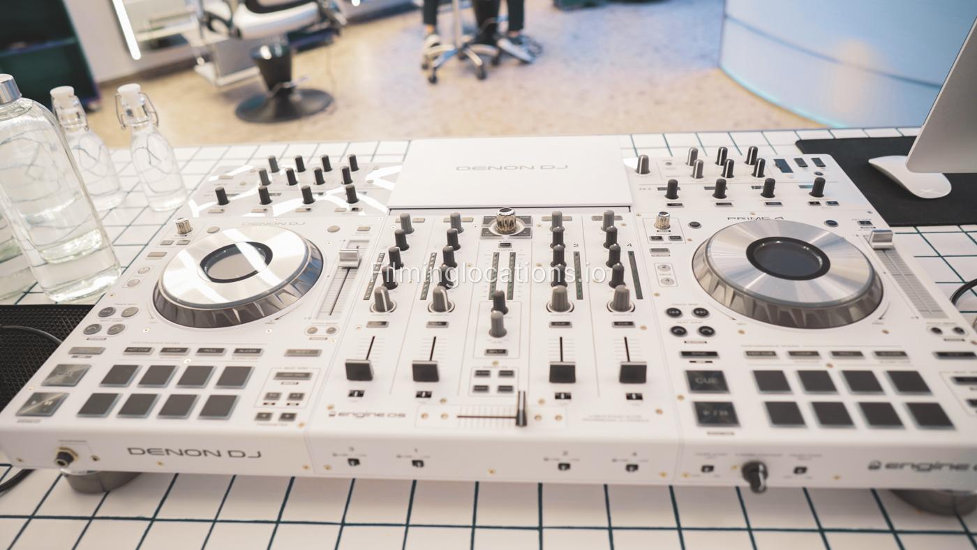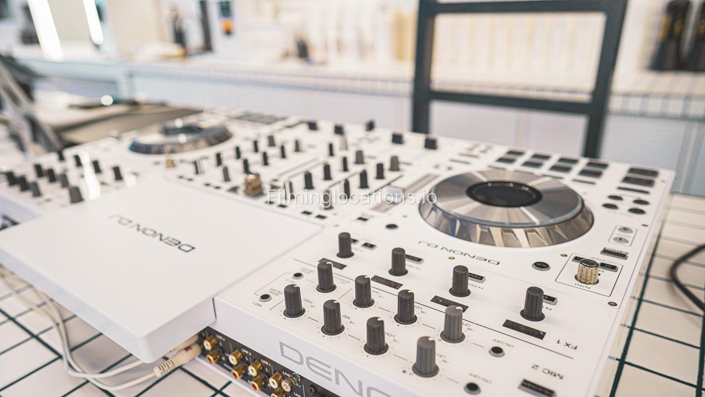 Exclusive white DJ Corner with Coffee bar and 9 meter high shelf full field with hair color and treatment. Latest sound system is available. There is also a 9 meter ladder attached to the shelf behind the DJ set.
