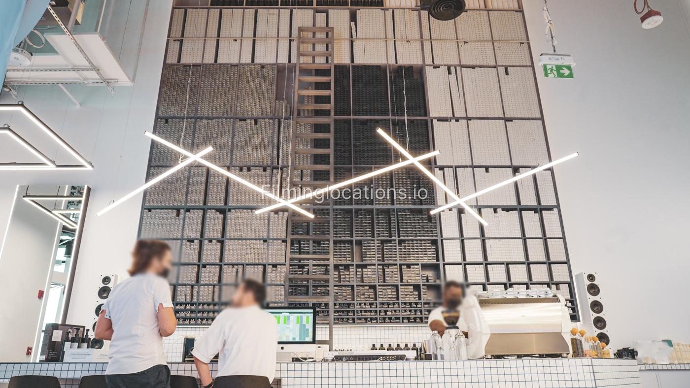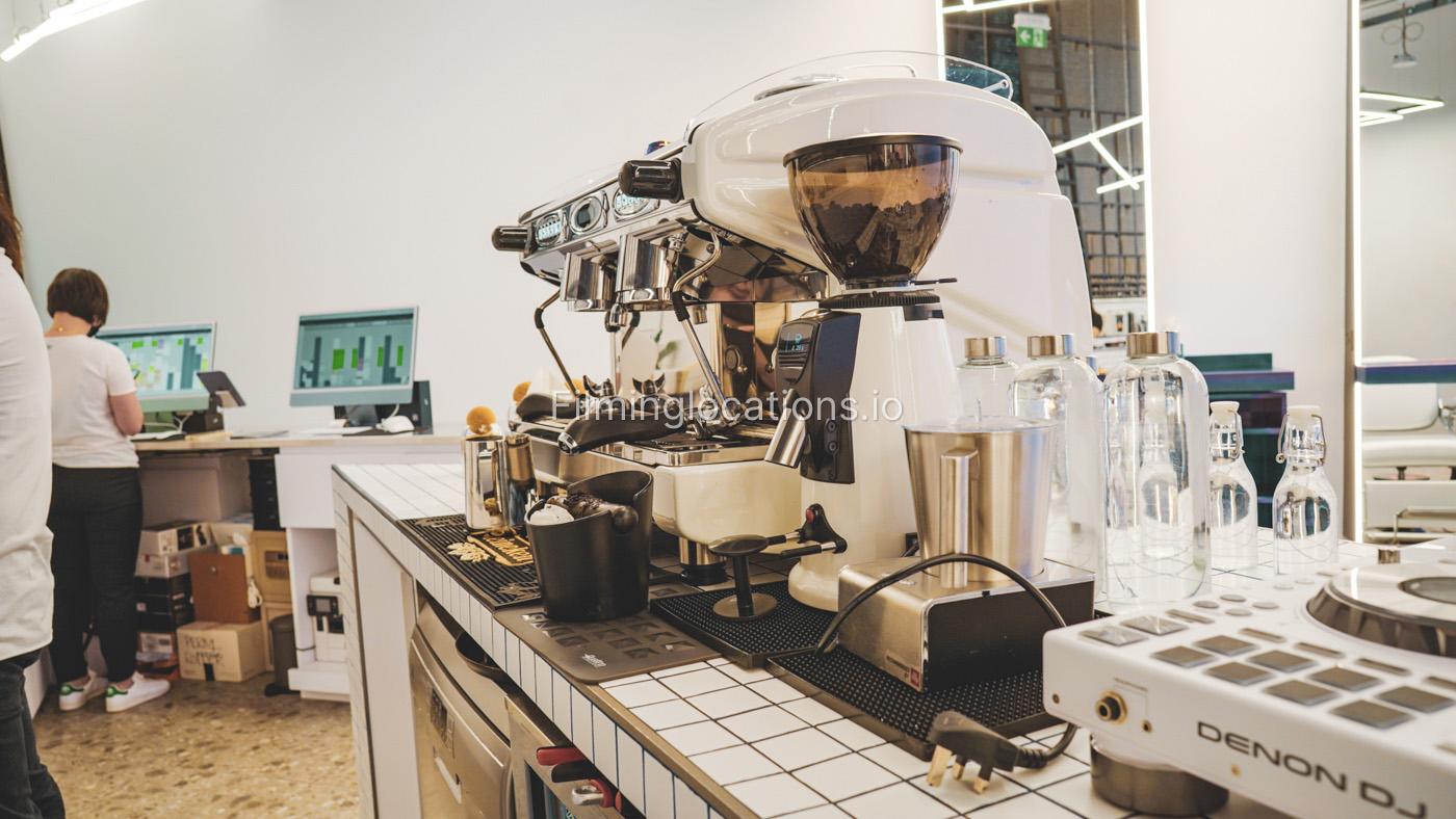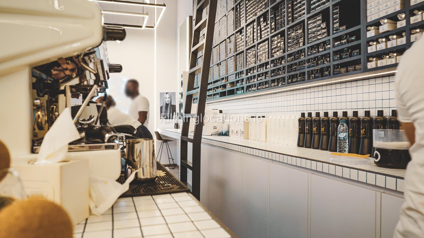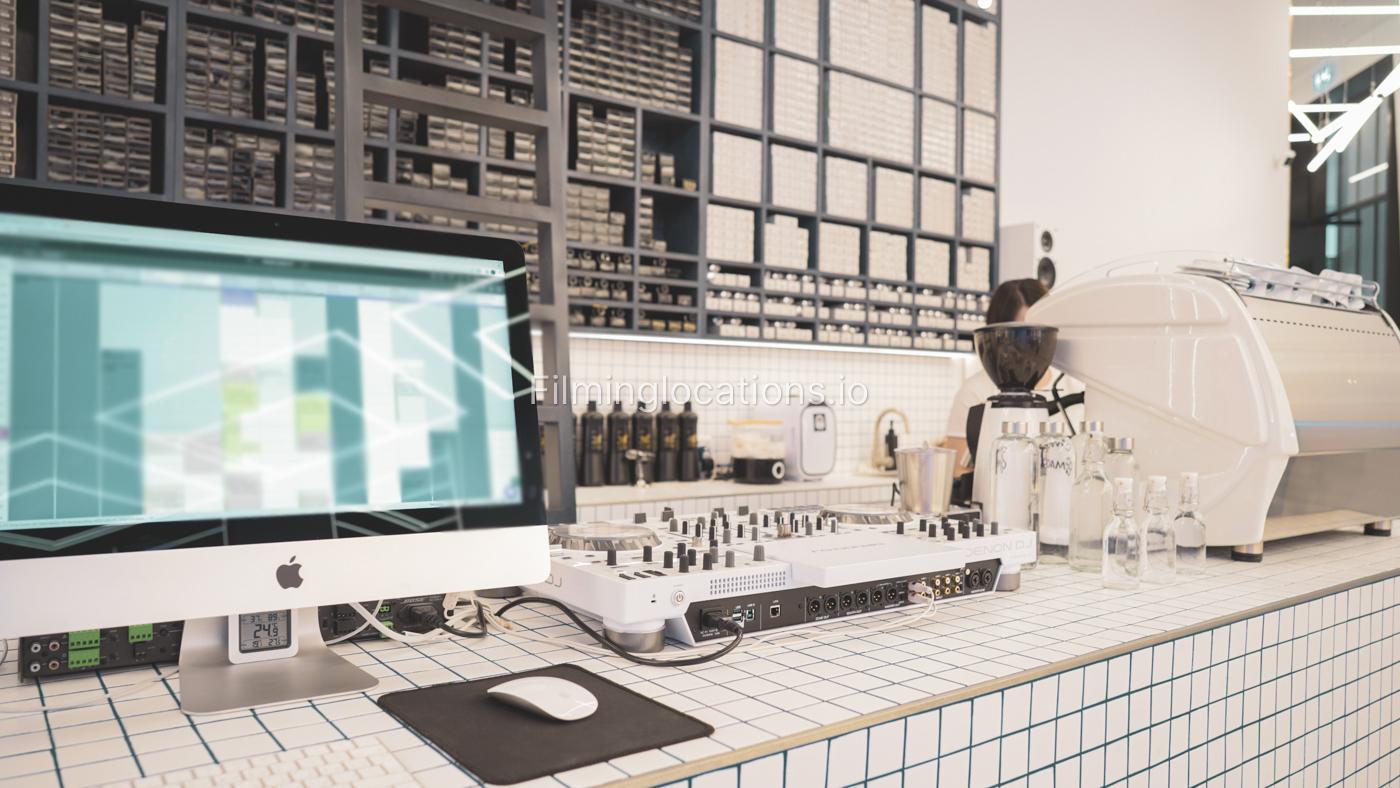 Exclusive white DJ Corner with Coffee bar and 9 meter high shelf full field with hair color and treatment. Latest sound system is available. There is also a 9 meter ladder attached to the shelf behind the DJ set.