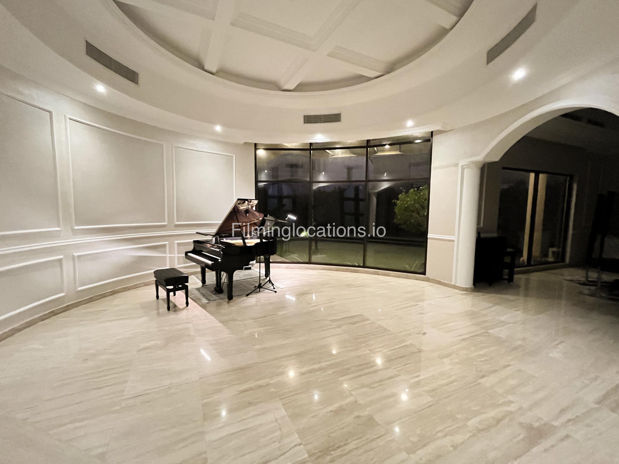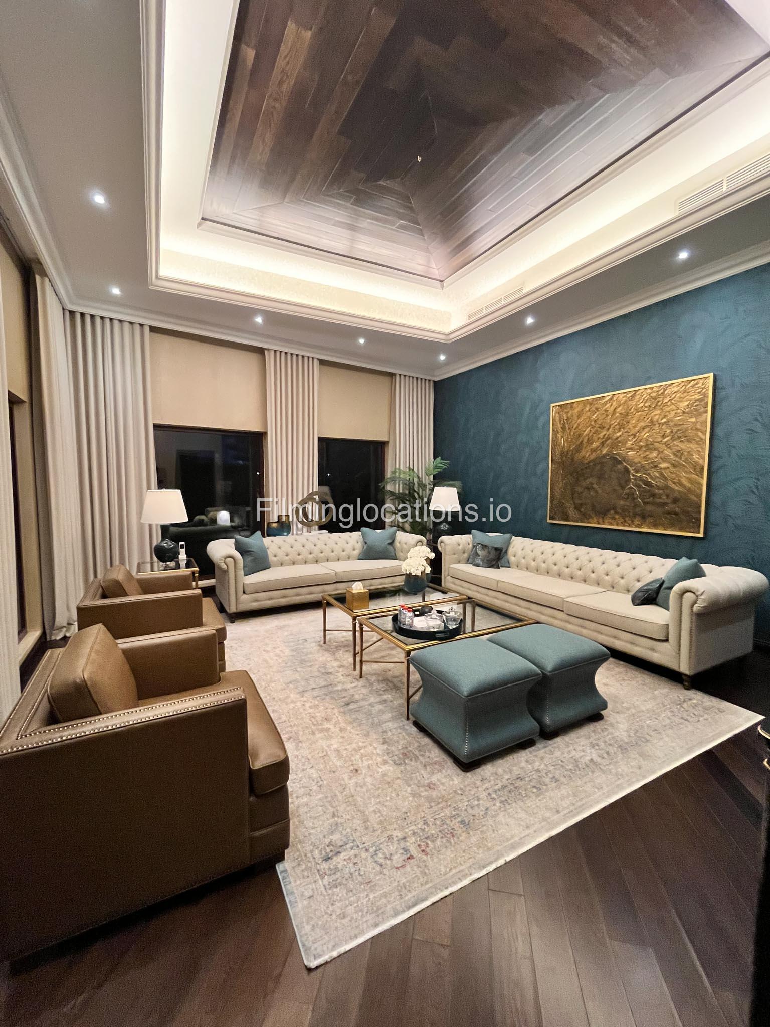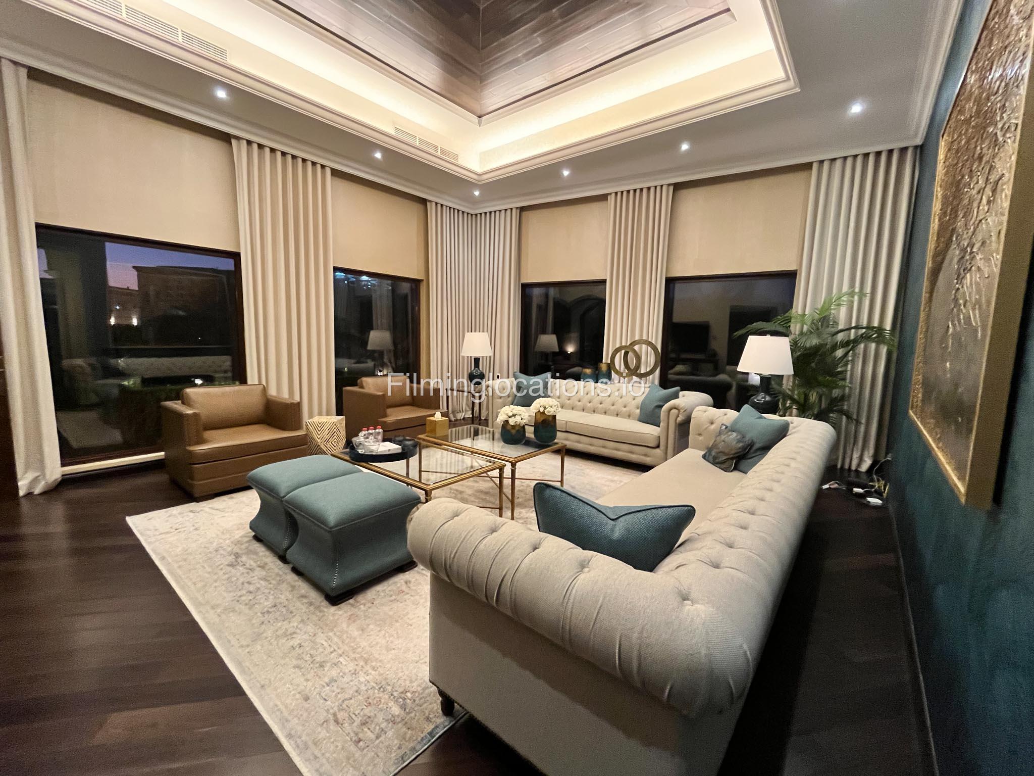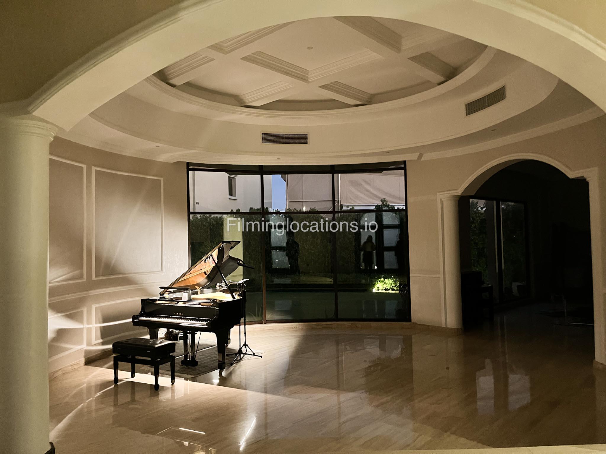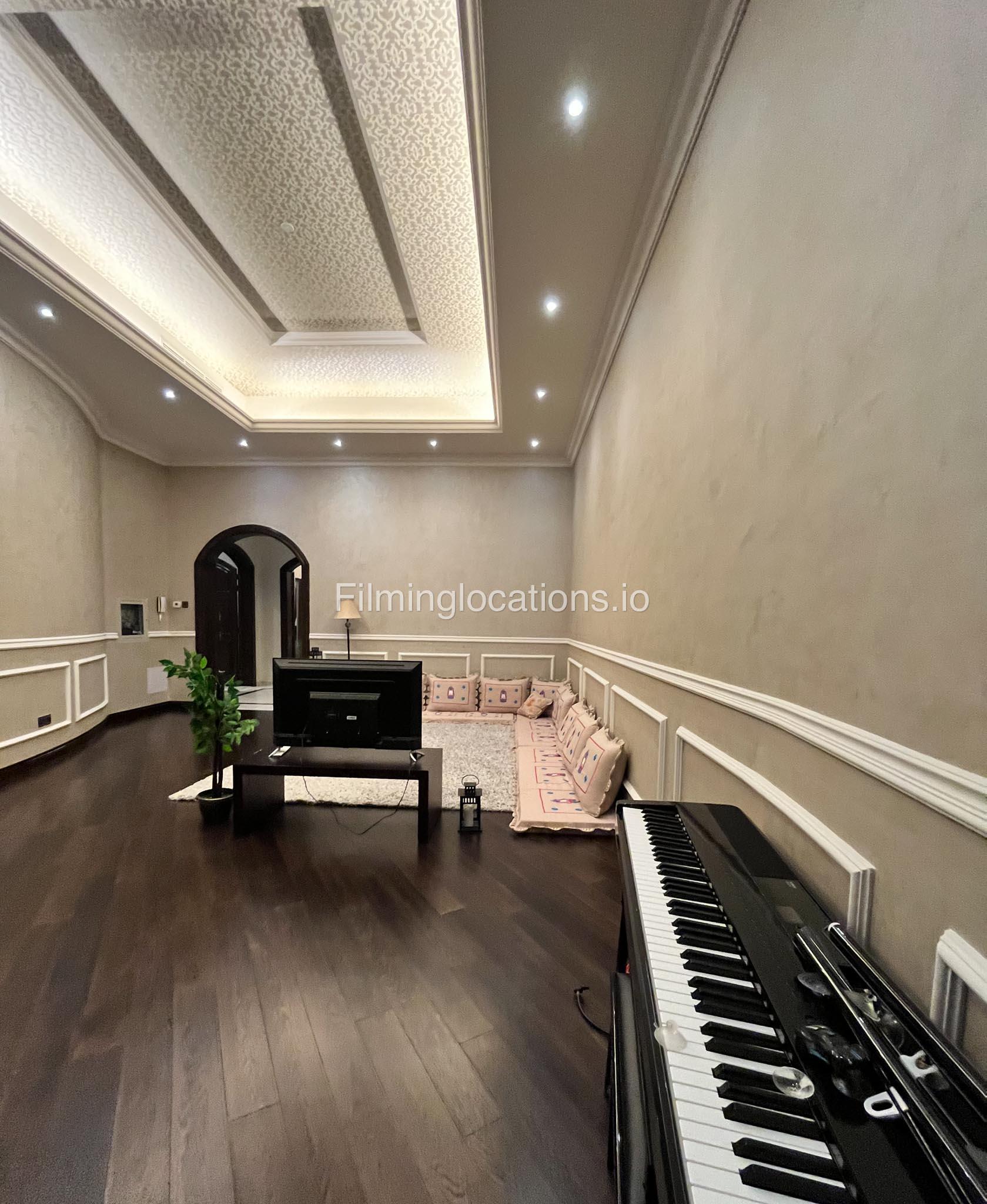 Spacious villa with cinema and private gym suitable for all kinds of productions. The ground floor and basement are only accessible for filming (no bedrooms are provided). Villa has a Majilis room, kitchen, outdoor area with a small garden, a large living area with grand piano, and beautiful private cinema in the basement.