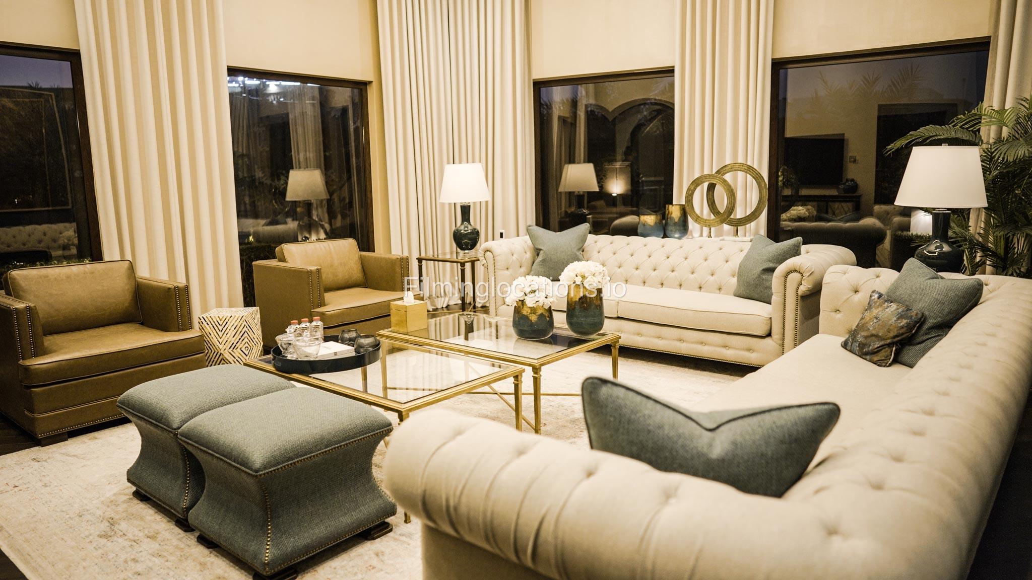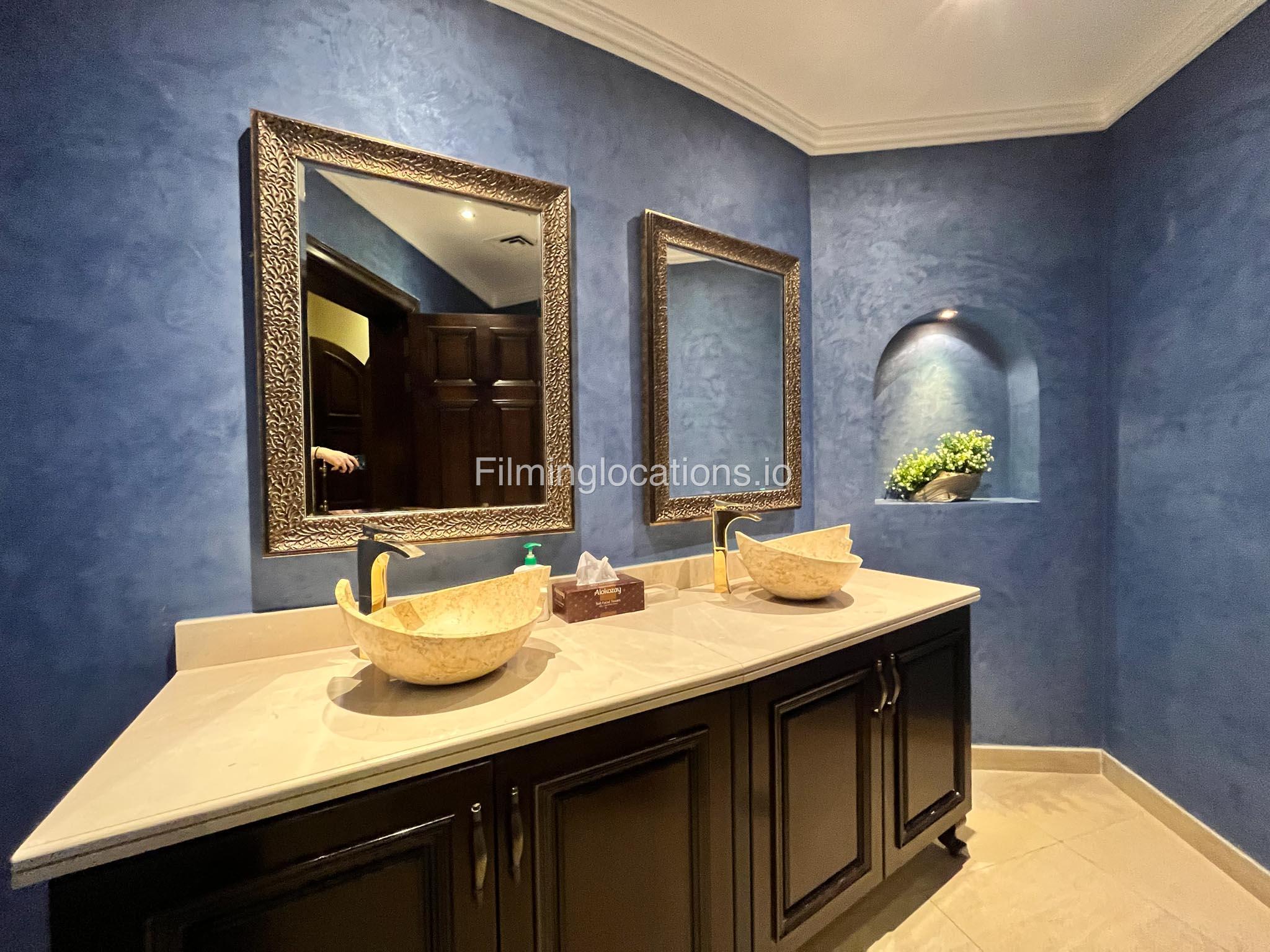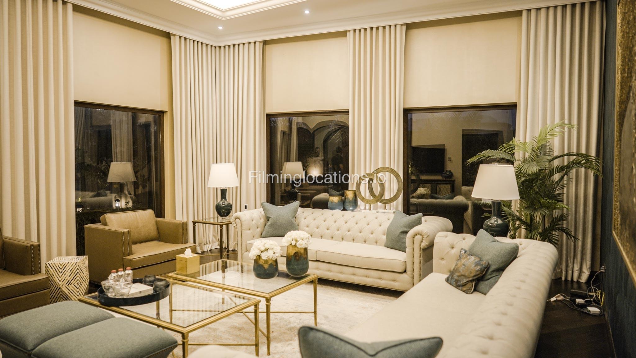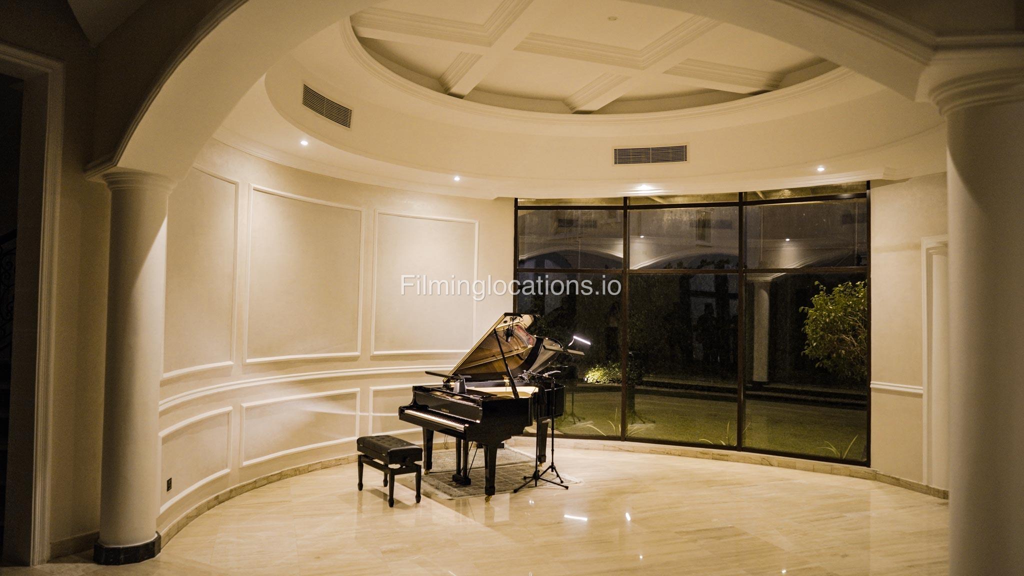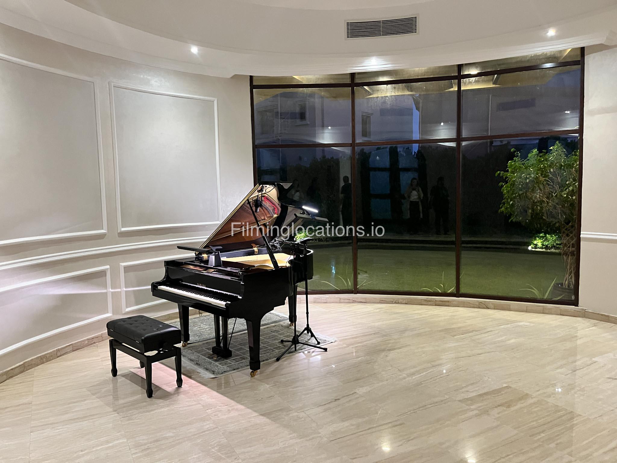 Spacious villa with cinema and private gym suitable for all kinds of productions. The ground floor and basement are only accessible for filming (no bedrooms are provided). Villa has a Majilis room, kitchen, outdoor area with a small garden, a large living area with grand piano, and beautiful private cinema in the basement.