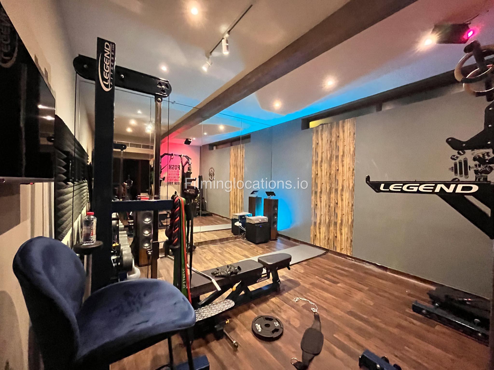 A small private gym is available for small shoots. The gym has all the necessary equipment, a large mirror wall, and adjustable color.