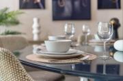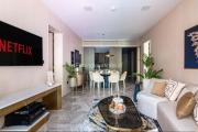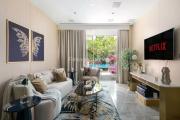 The apartment is fully furnished with a 75” tv in the living and 65” in two rooms and a 55” in the final. It has all amenities and a dining area with impressive gracious sliding doors leading to the pool.