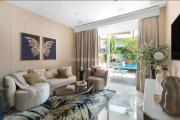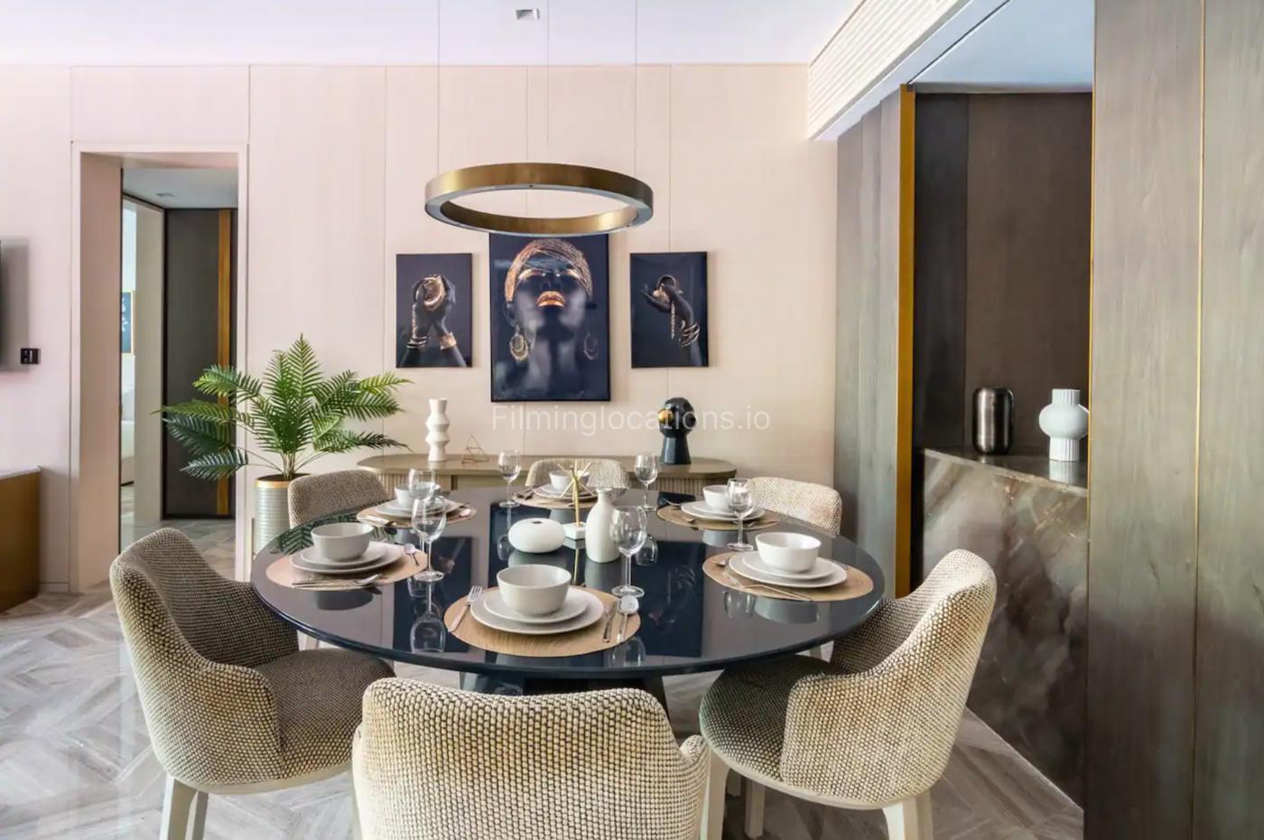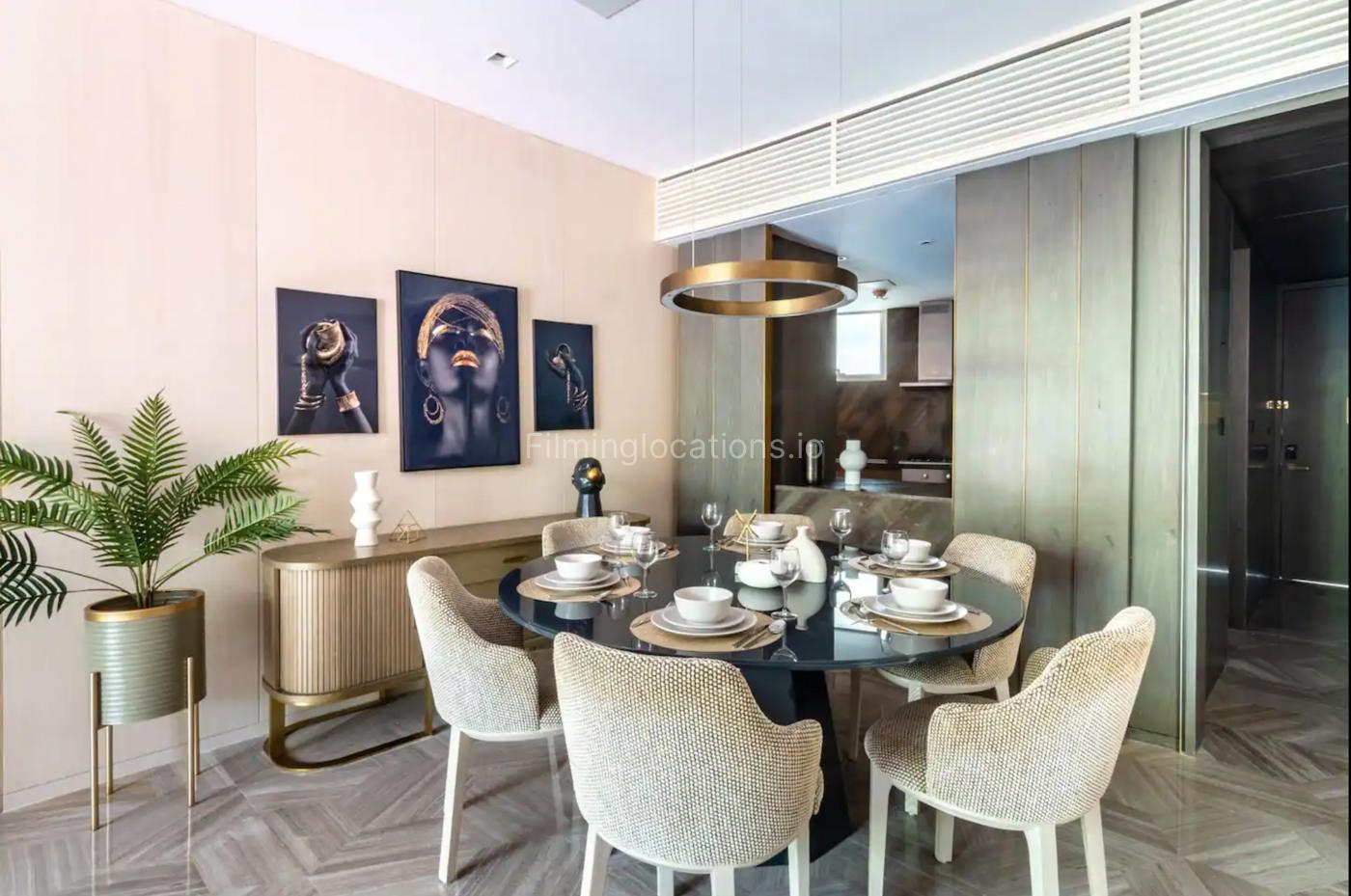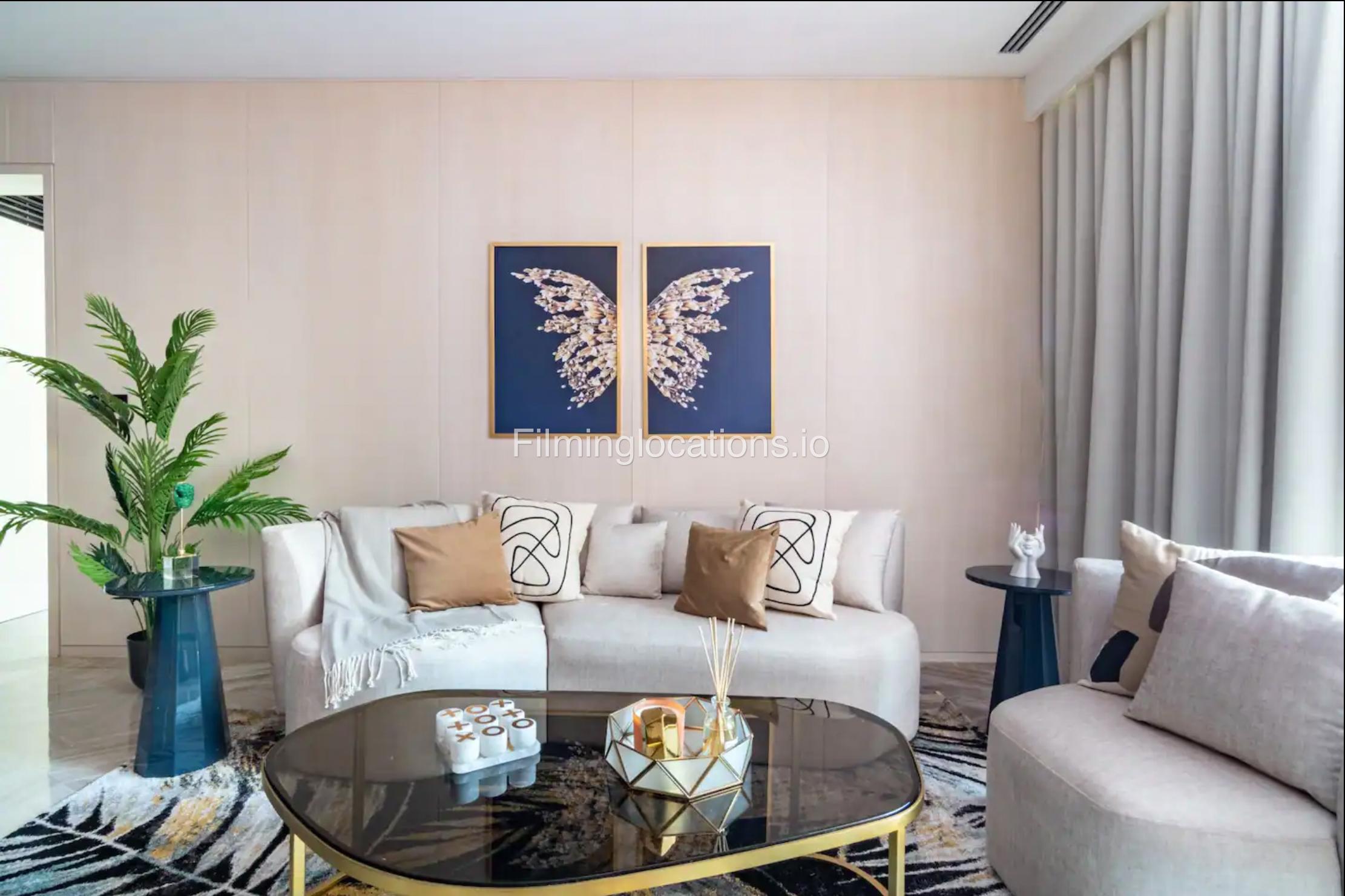 The vibrant three-bedroom apartment is located inPalm Jumeirah residential building, capturing the glamour and vibe of Dubai set against a breathtaking backdrop of the beach and Dubai Marina skyline.