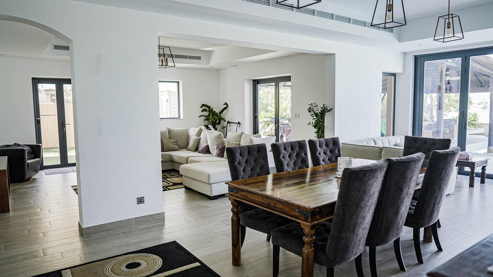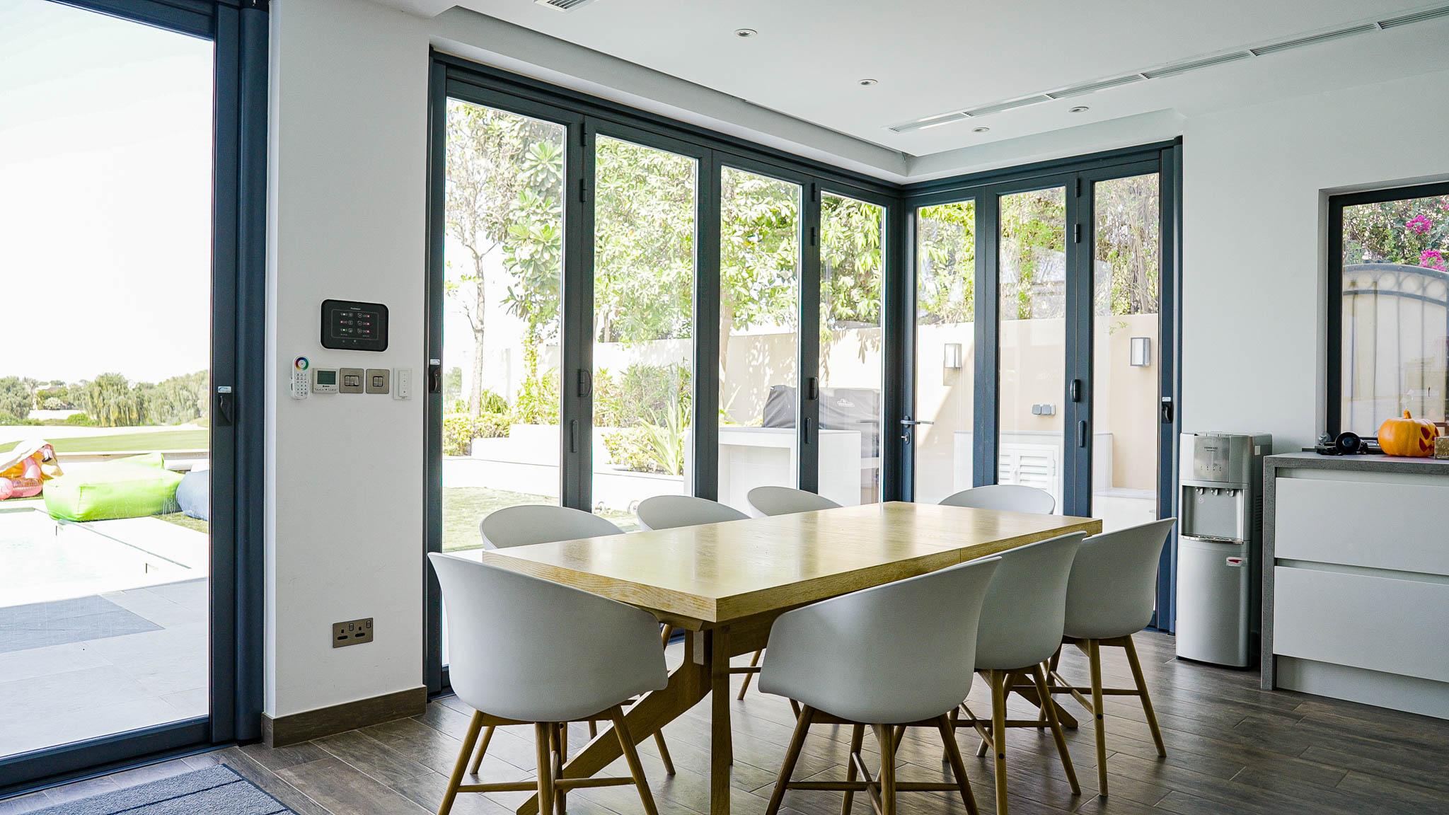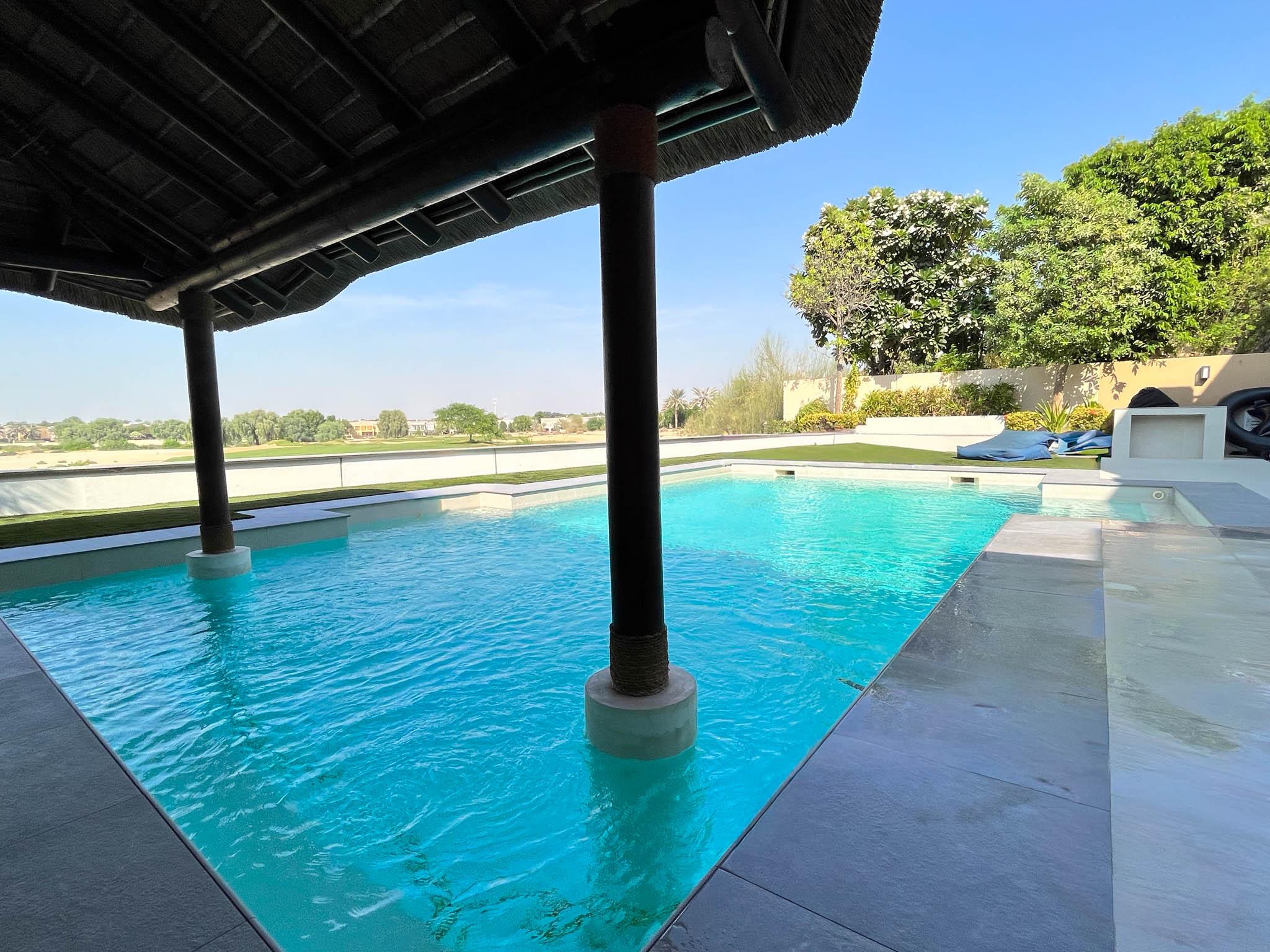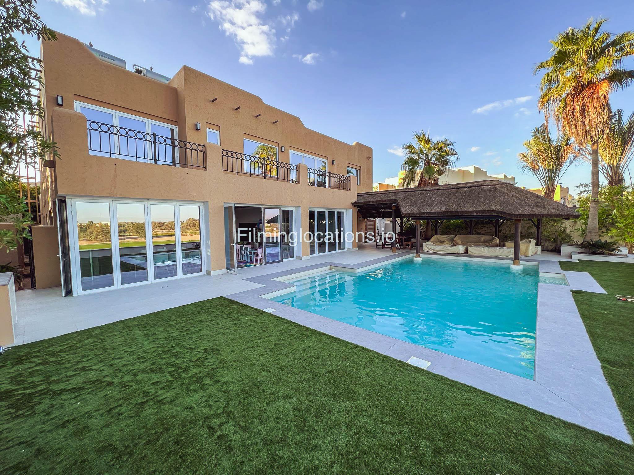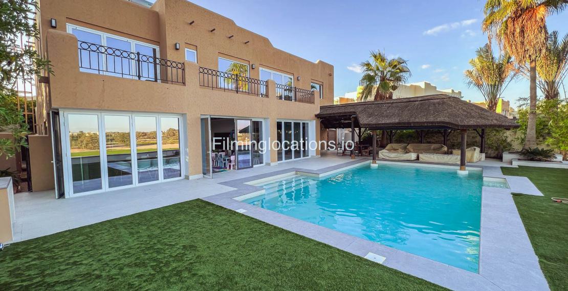 Our villa is open plan with a very large kitchen, with loads of room for cameras on rails. Large glazed, bifold openings and single level to allow shoots to transition from inside to out. Beautiful garden, pool and large gazebo for outdoor shoots. Large balcony overlooking garden, golf course and Burj Khalifa can also be used for shoots. White walls and neutral colours throughout to allow for effective lighting or decorating during the shoot. Large en-suite spare bedroom available as dressing room, hair and makeup.
