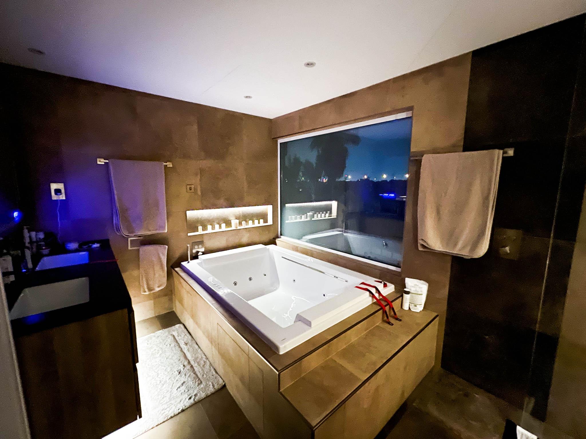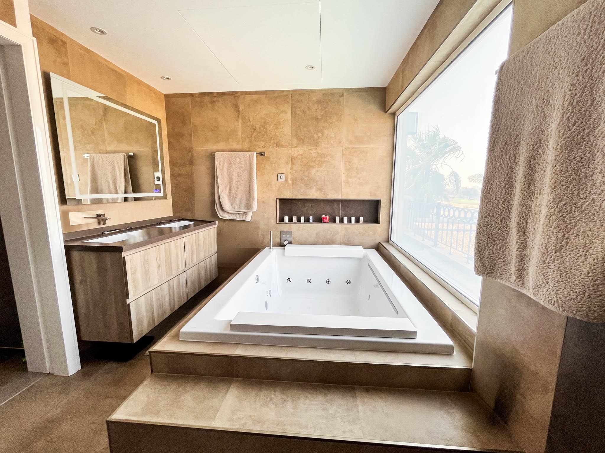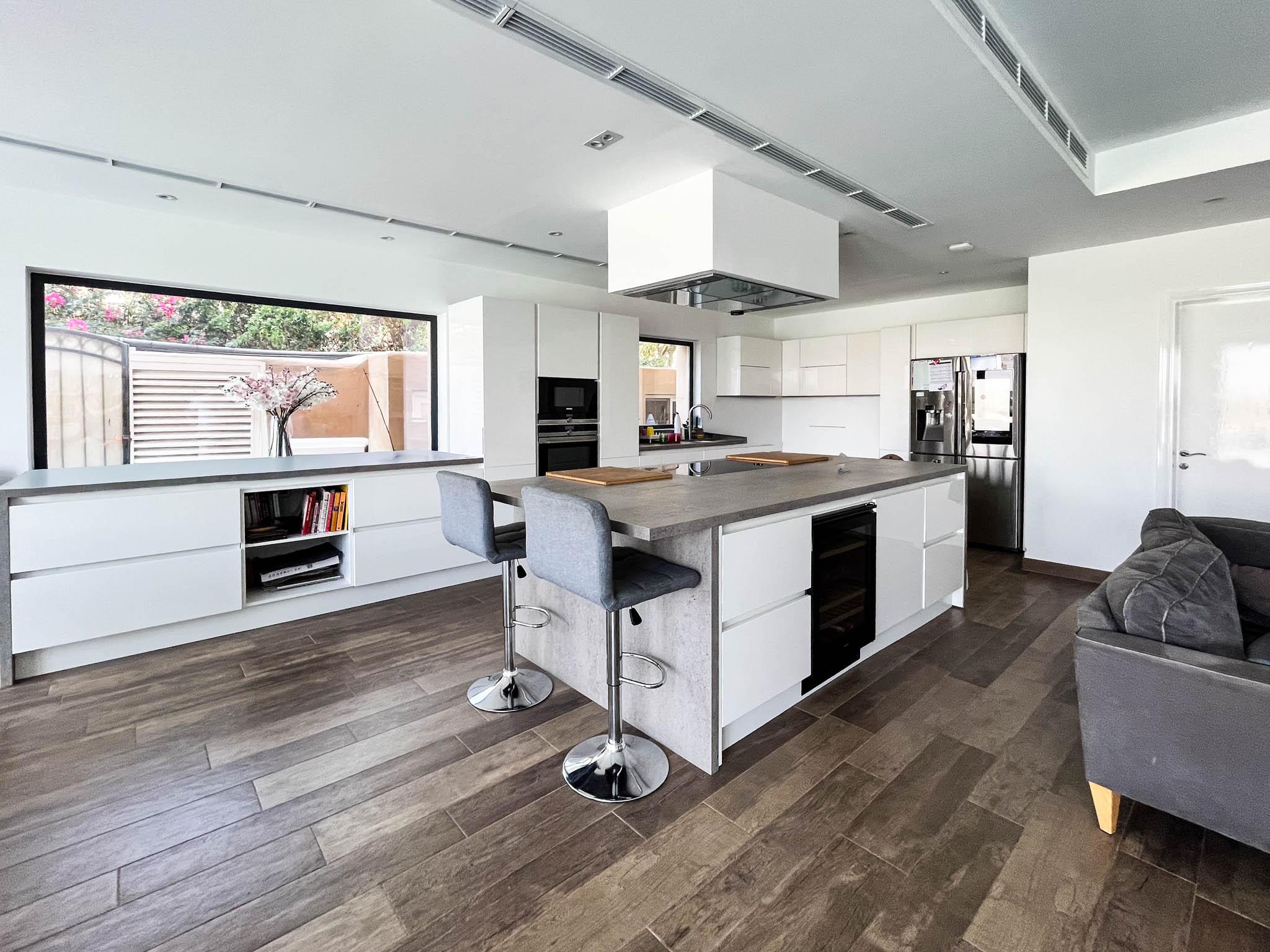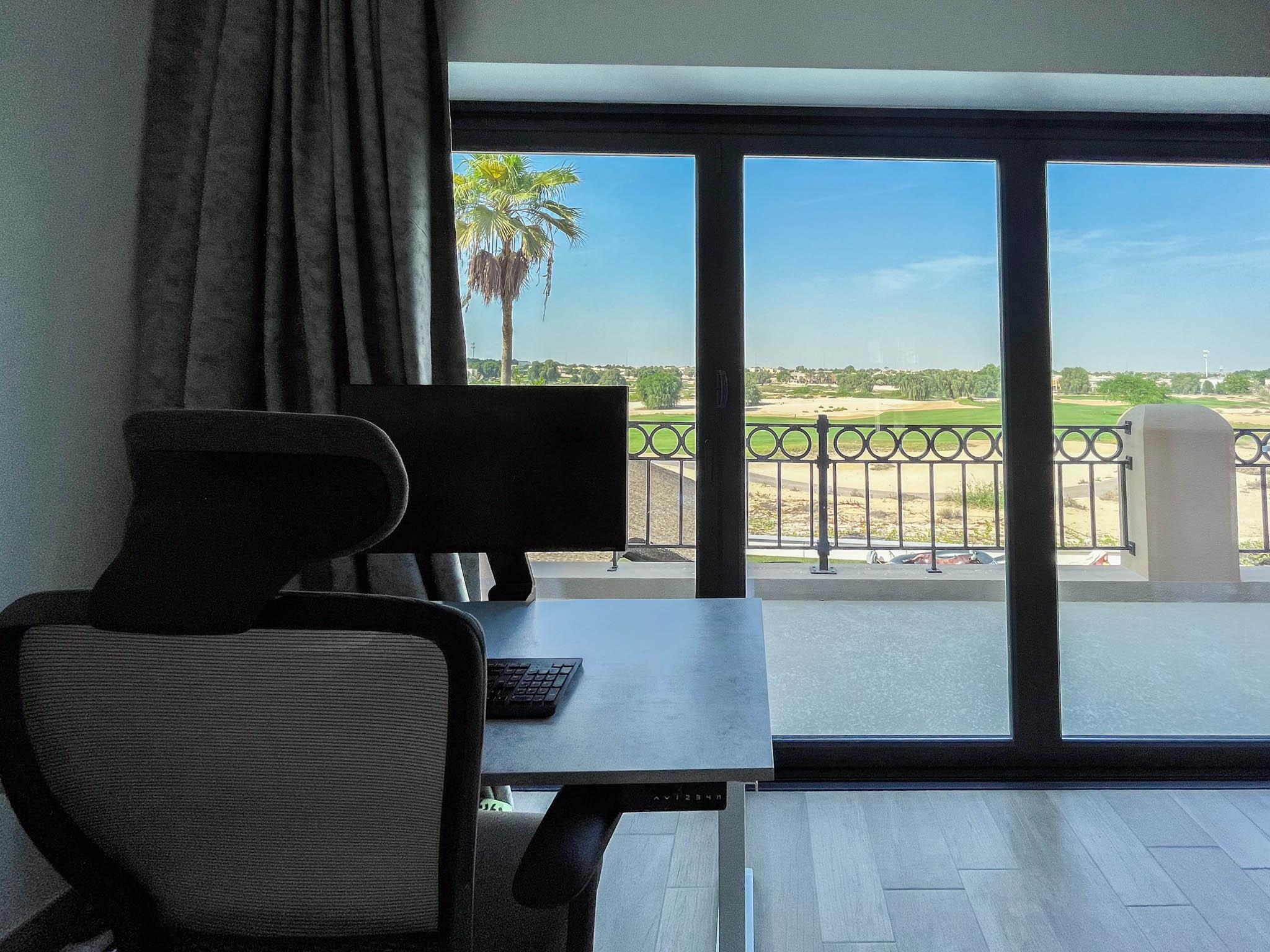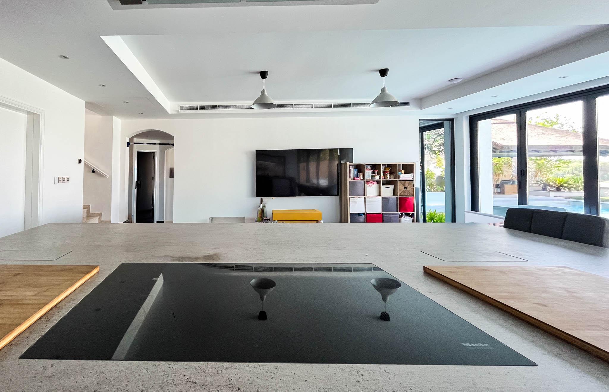 Our villa is open plan with a very large kitchen, with loads of room for cameras on rails. Large glazed, bifold openings and single level to allow shoots to transition from inside to out. Beautiful garden, pool and large gazebo for outdoor shoots. Large balcony overlooking garden, golf course and Burj Khalifa can also be used for shoots. White walls and neutral colours throughout to allow for effective lighting or decorating during the shoot. Large en-suite spare bedroom available as dressing room, hair and makeup.