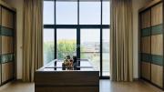 Sunset in the living room with open kitchen, sunrise in majlis