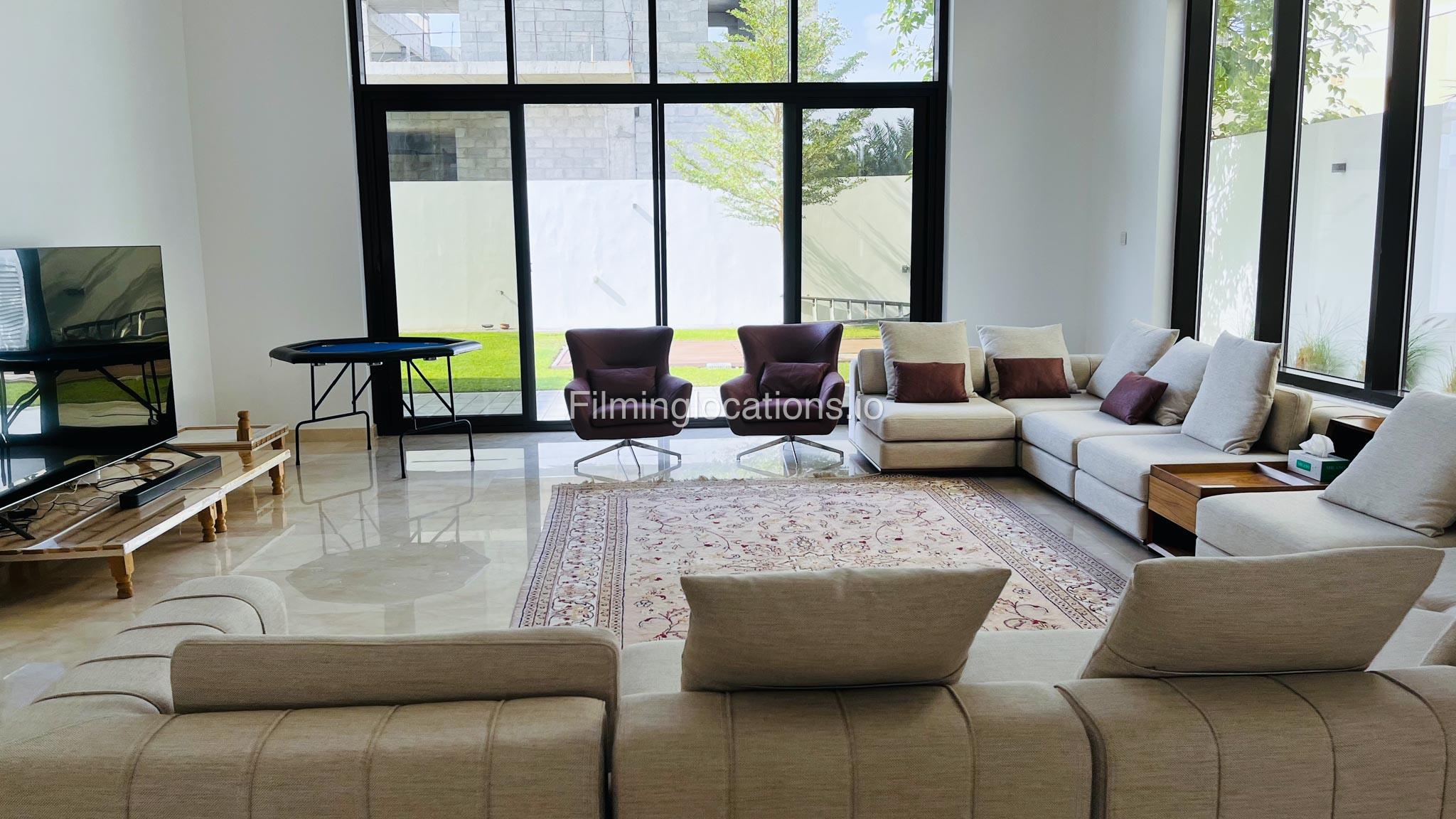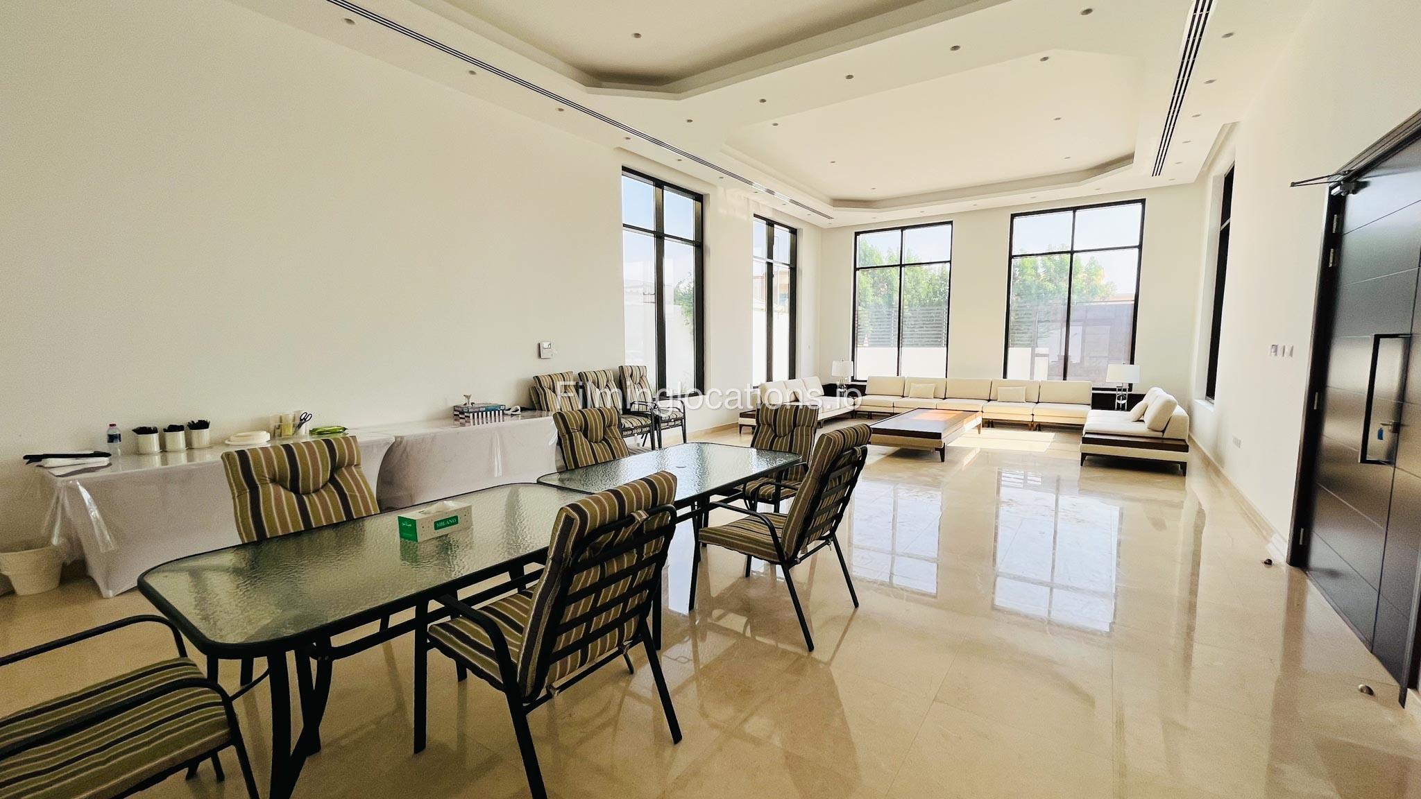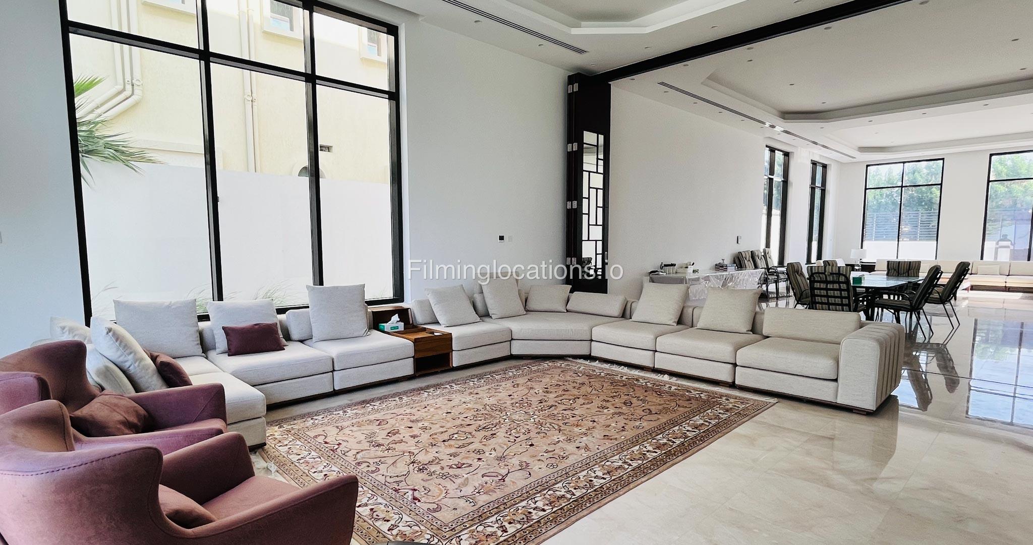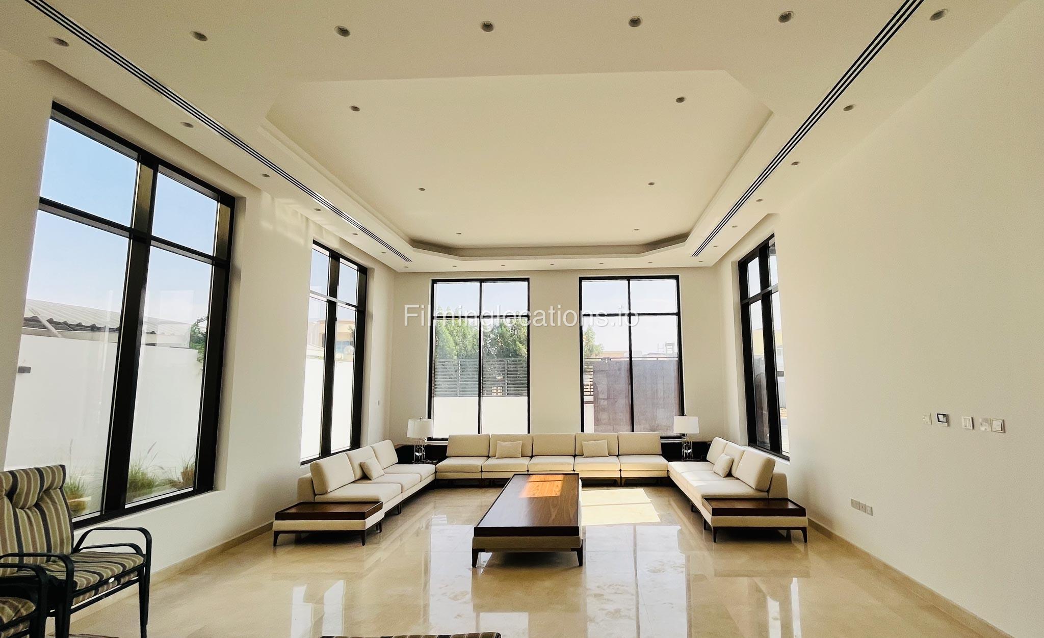 Our gorgeous villa in Barsha South is perfect for filming. Villa has 3 bedrooms, a huge majlis, an open kitchen, 2 living rooms, indoor fountain, and access to the rooftop. Villa has large floor-to-ceiling windows and a glass ceiling.