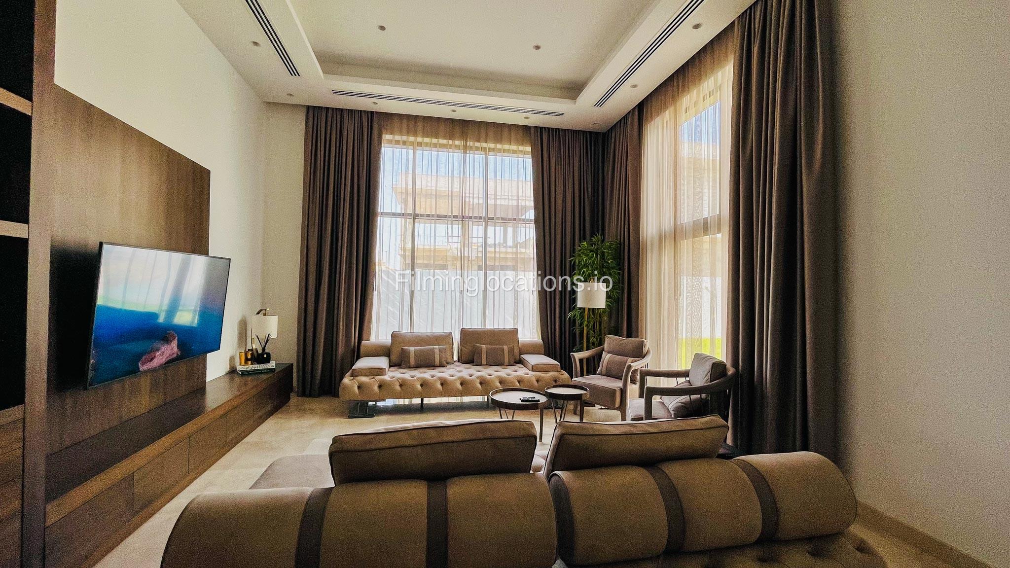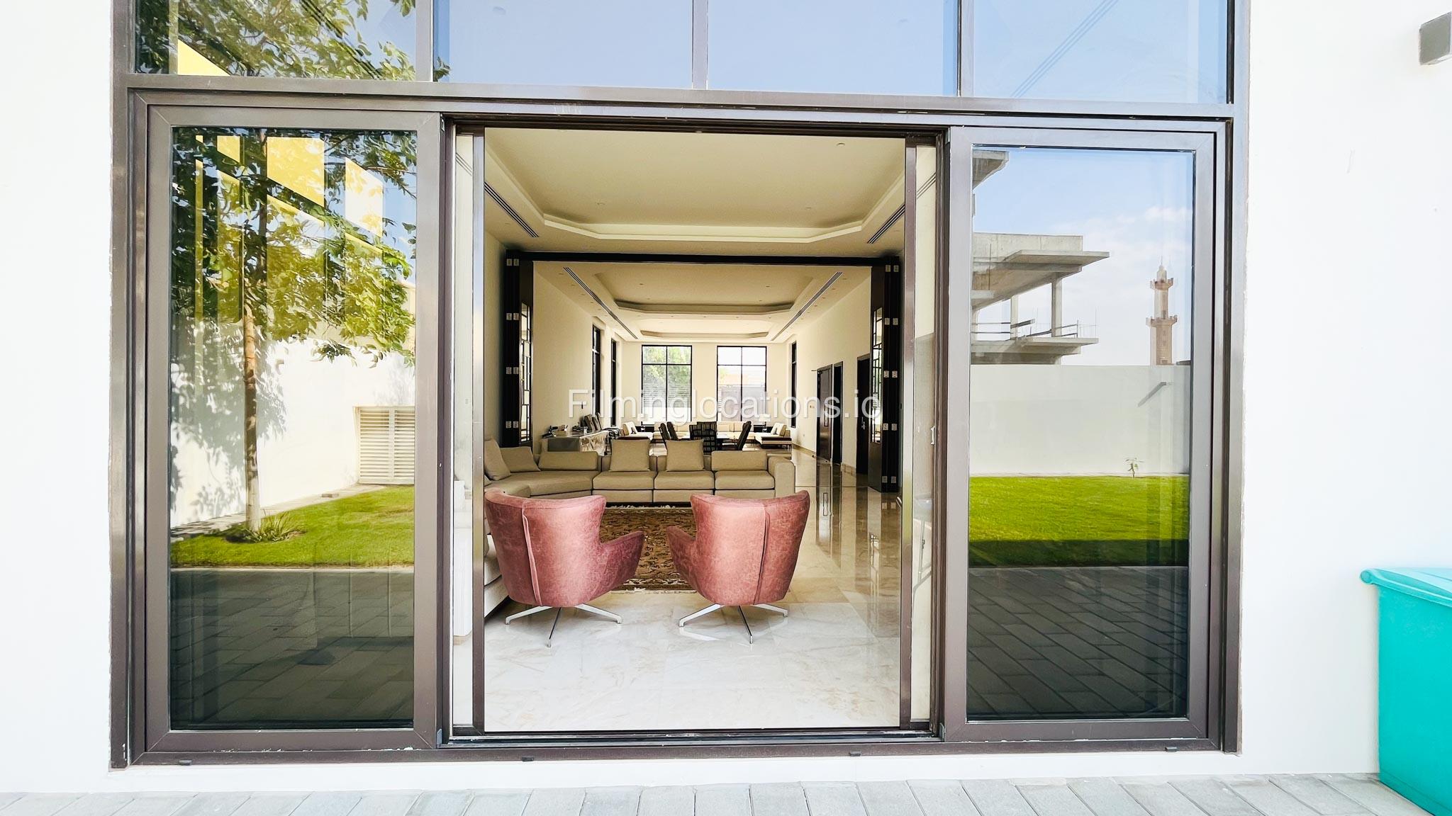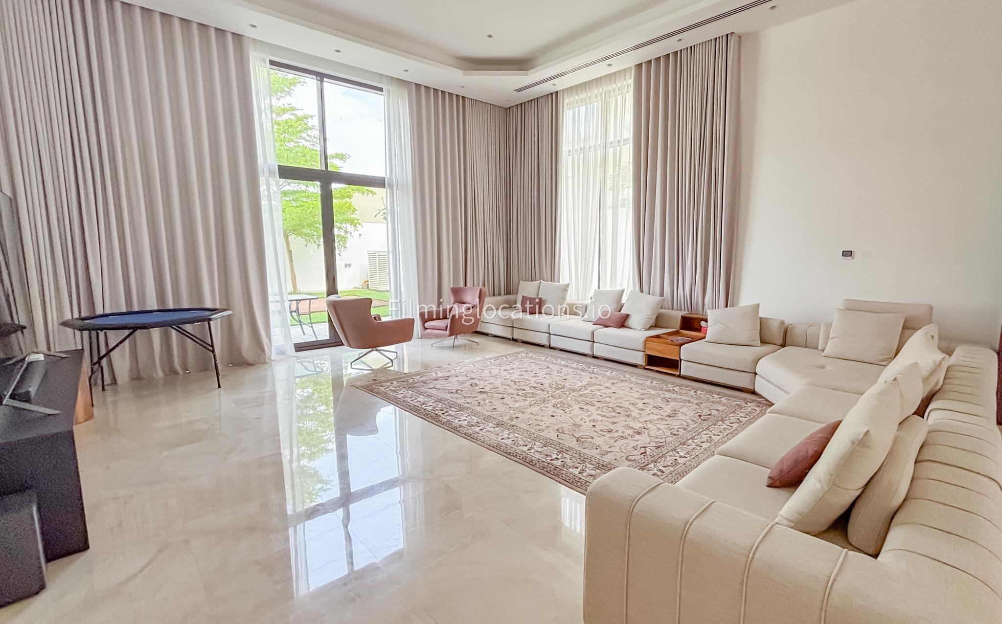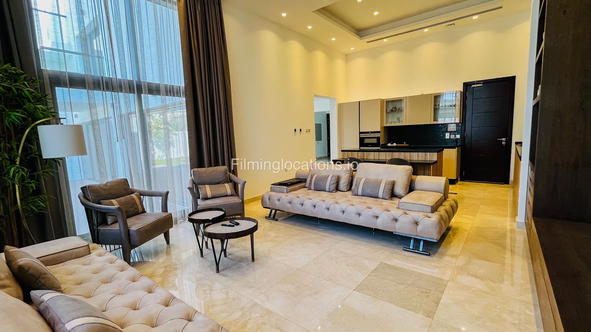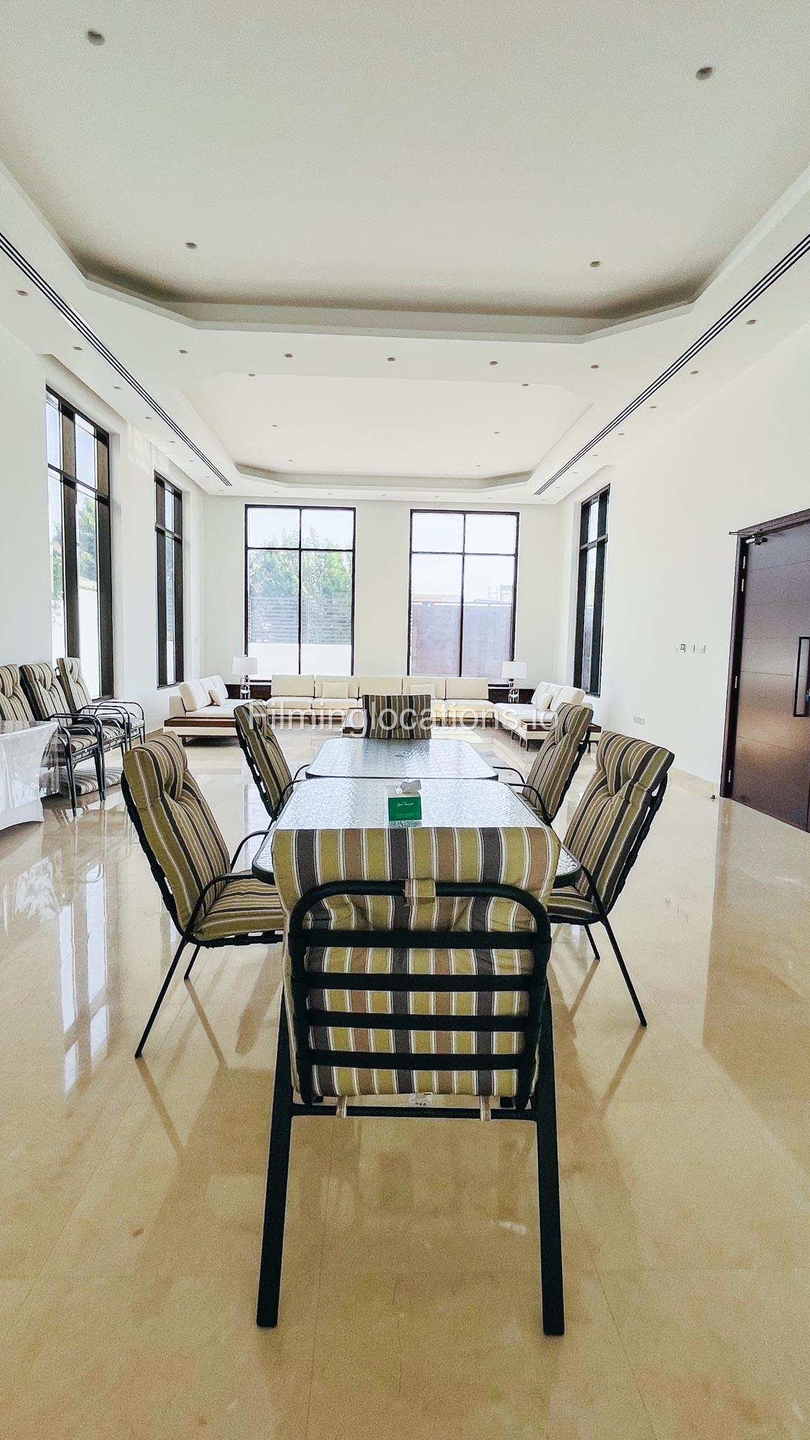 Our gorgeous villa in Barsha South is perfect for filming. Villa has 3 bedrooms, a huge majlis, an open kitchen, 2 living rooms, indoor fountain, and access to the rooftop. Villa has large floor-to-ceiling windows and a glass ceiling.