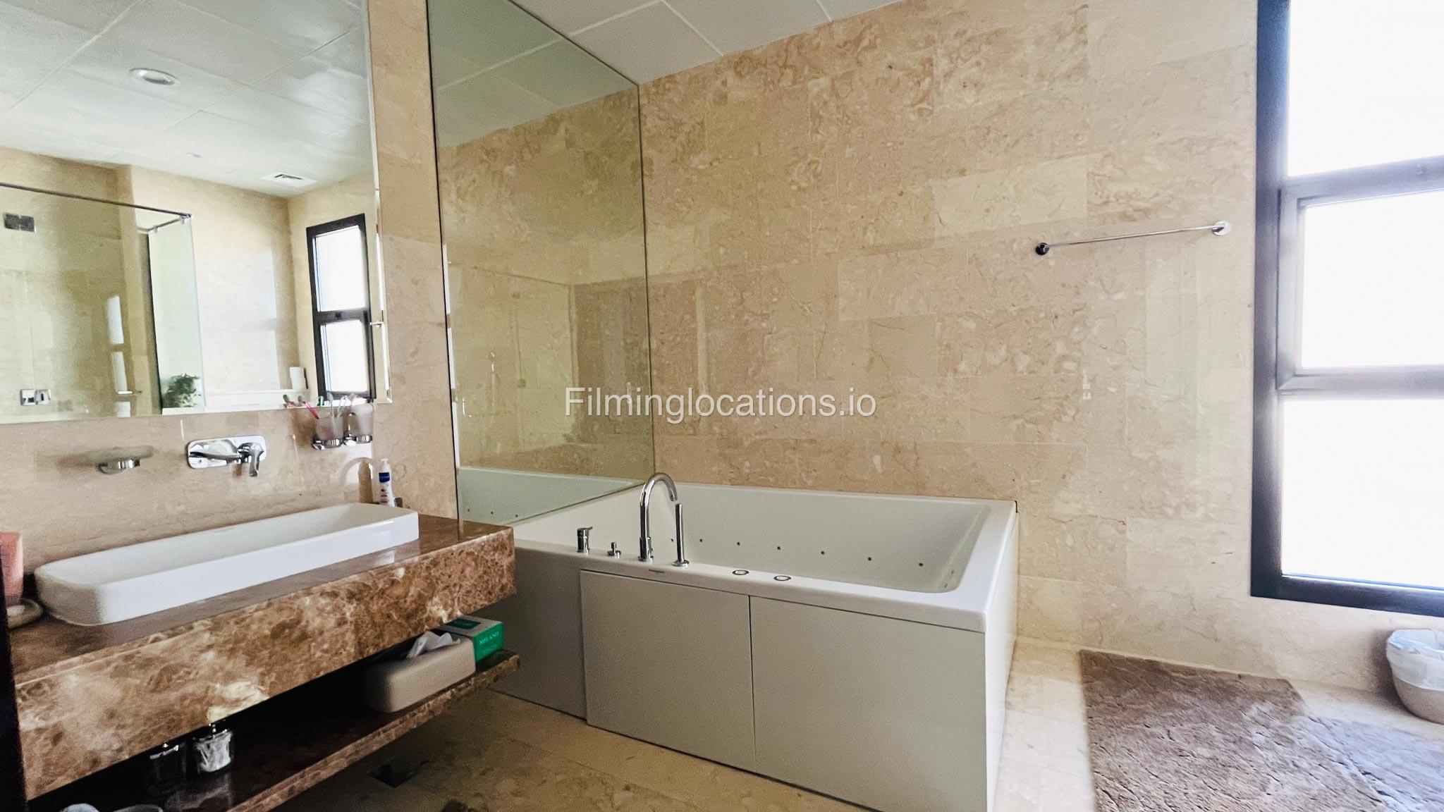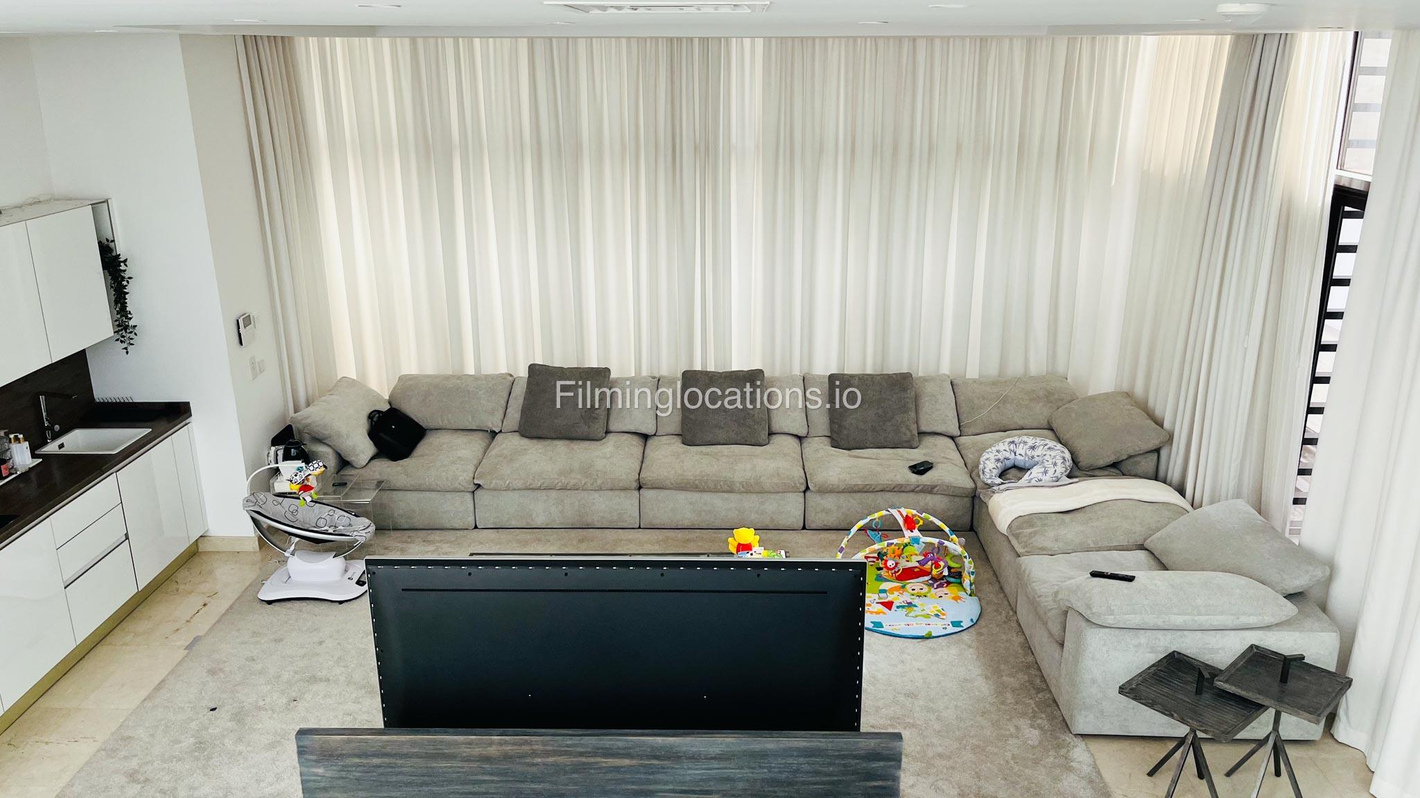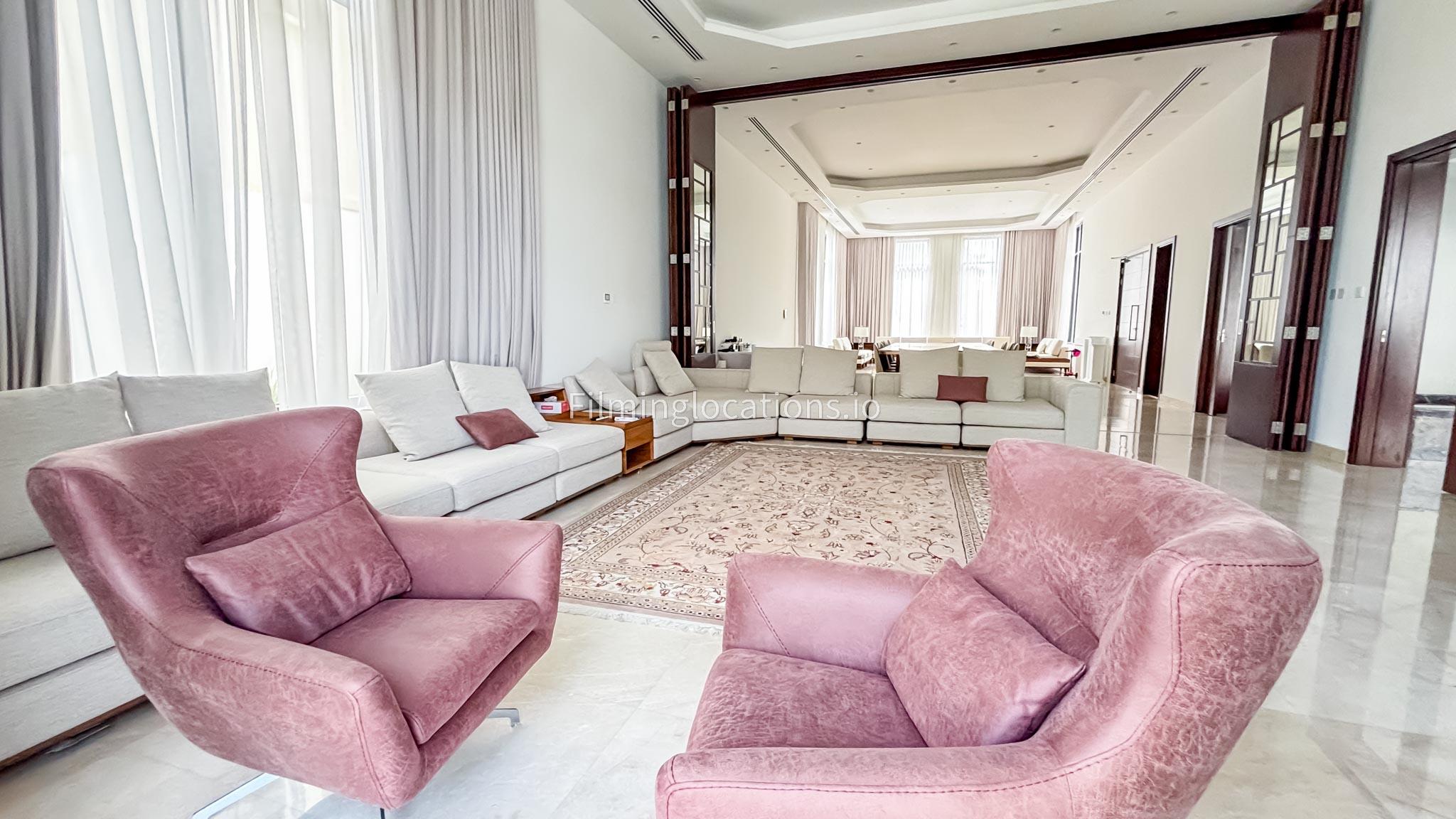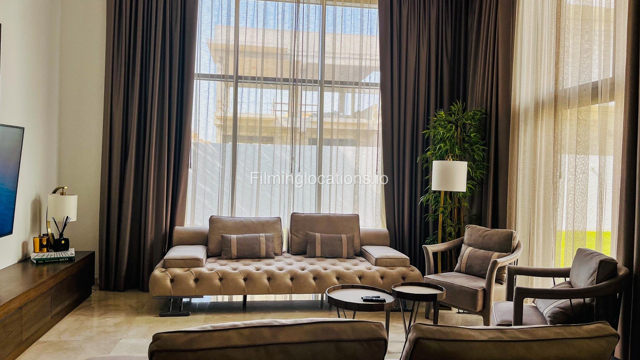 Our gorgeous villa in Barsha South is perfect for filming. Villa has 3 bedrooms, a huge majlis, an open kitchen, 2 living rooms, indoor fountain, and access to the rooftop. Villa has large floor-to-ceiling windows and a glass ceiling.