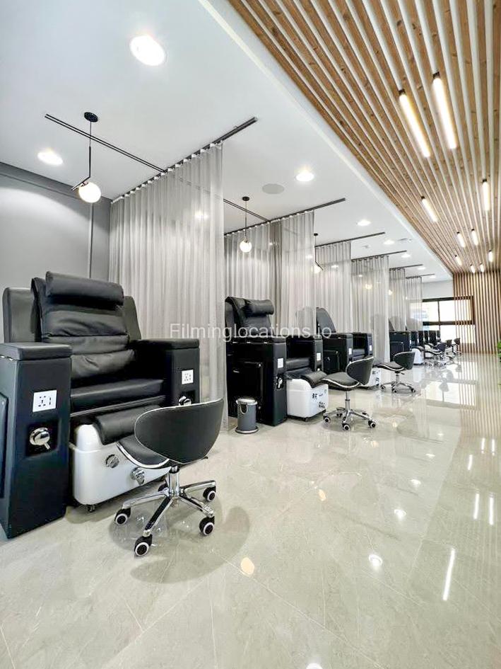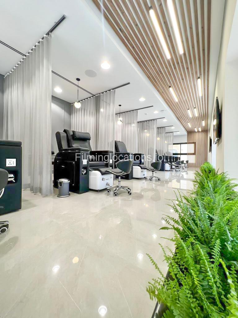 Our award winning salon is stylishly furnished and perfectly located. Starting with the reception area which is bright, modern and fully equipped. Here you can find VIP room services and it also includes private ground floor entrance, cutting/styling chairs, manicure and pedicure stations, private backwash station and private bathroom.