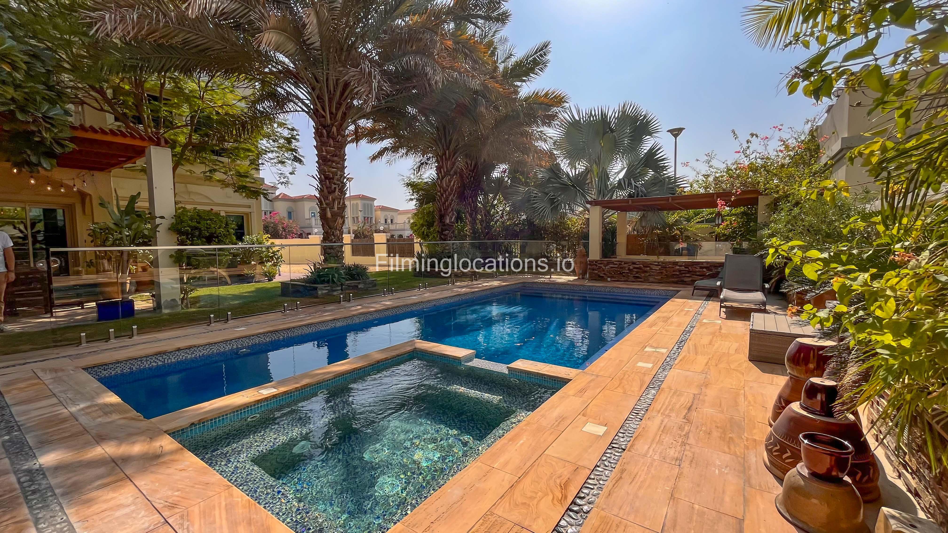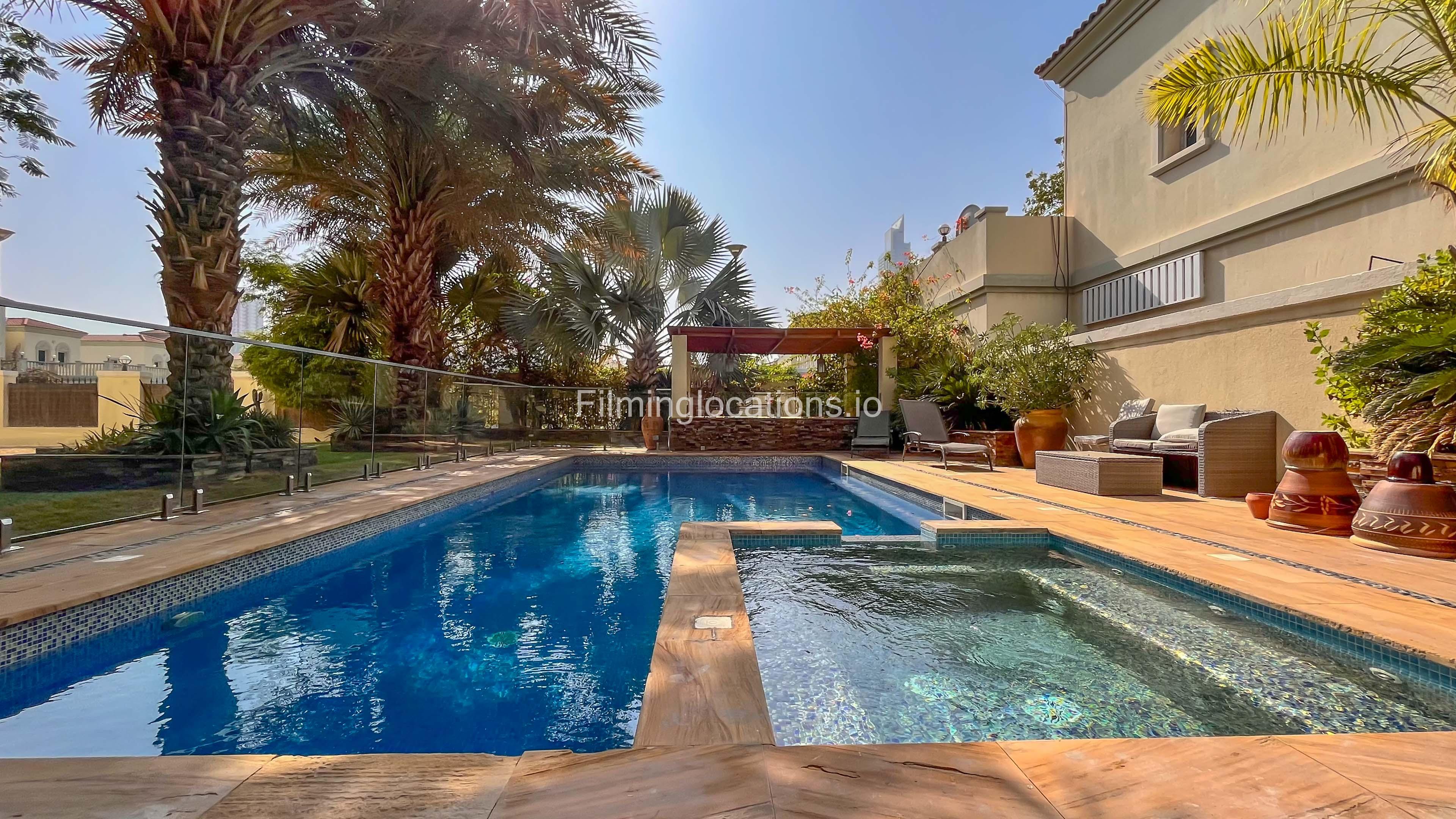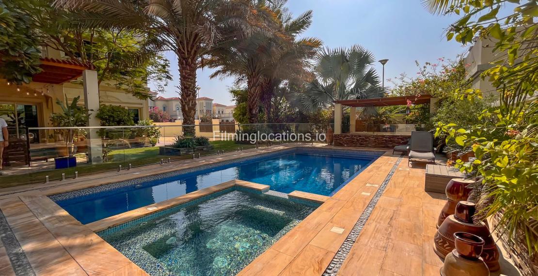 A beautiful 2 bedroom villa with a garden, a swimming pool & jacuzzi, BBQ, majilis and a large outdoor terrace, ready for your next shoot.