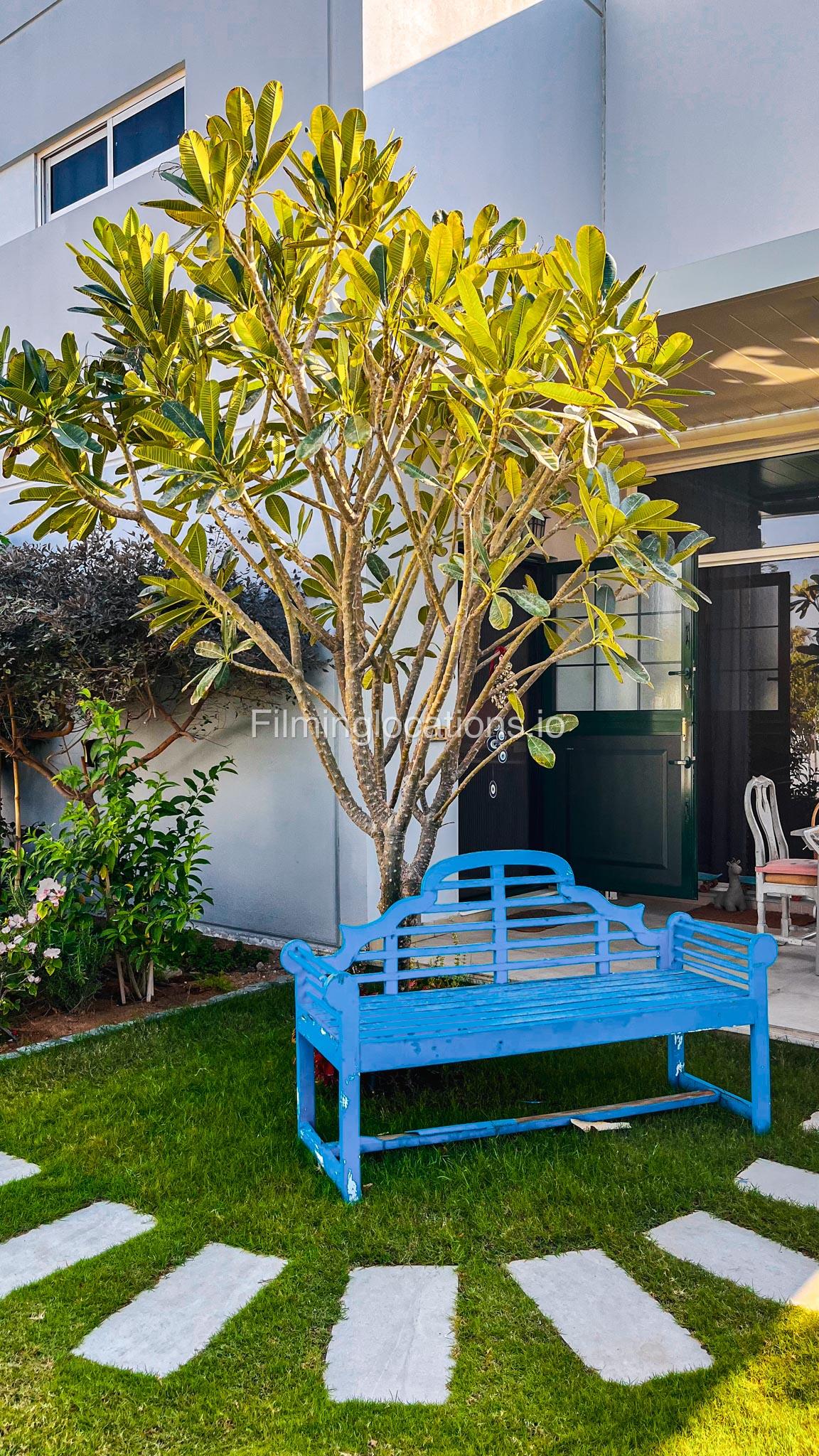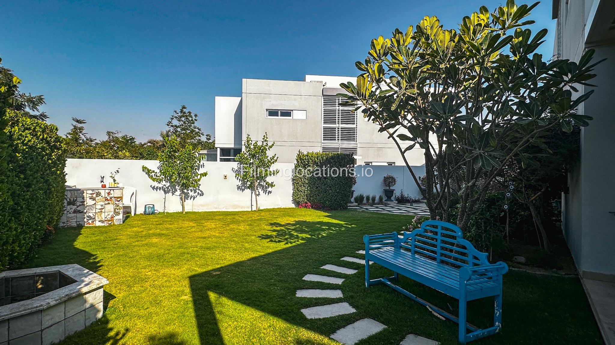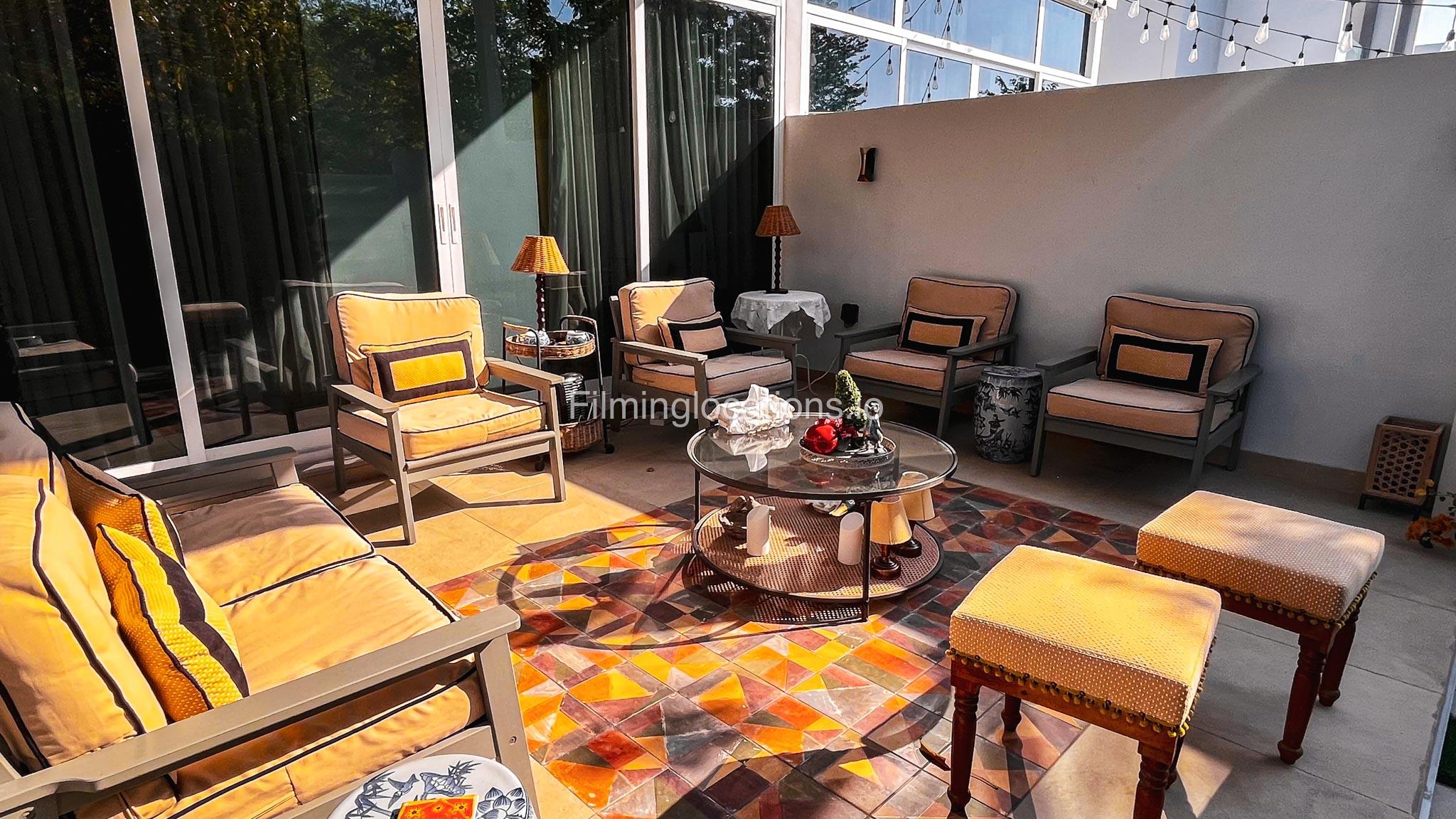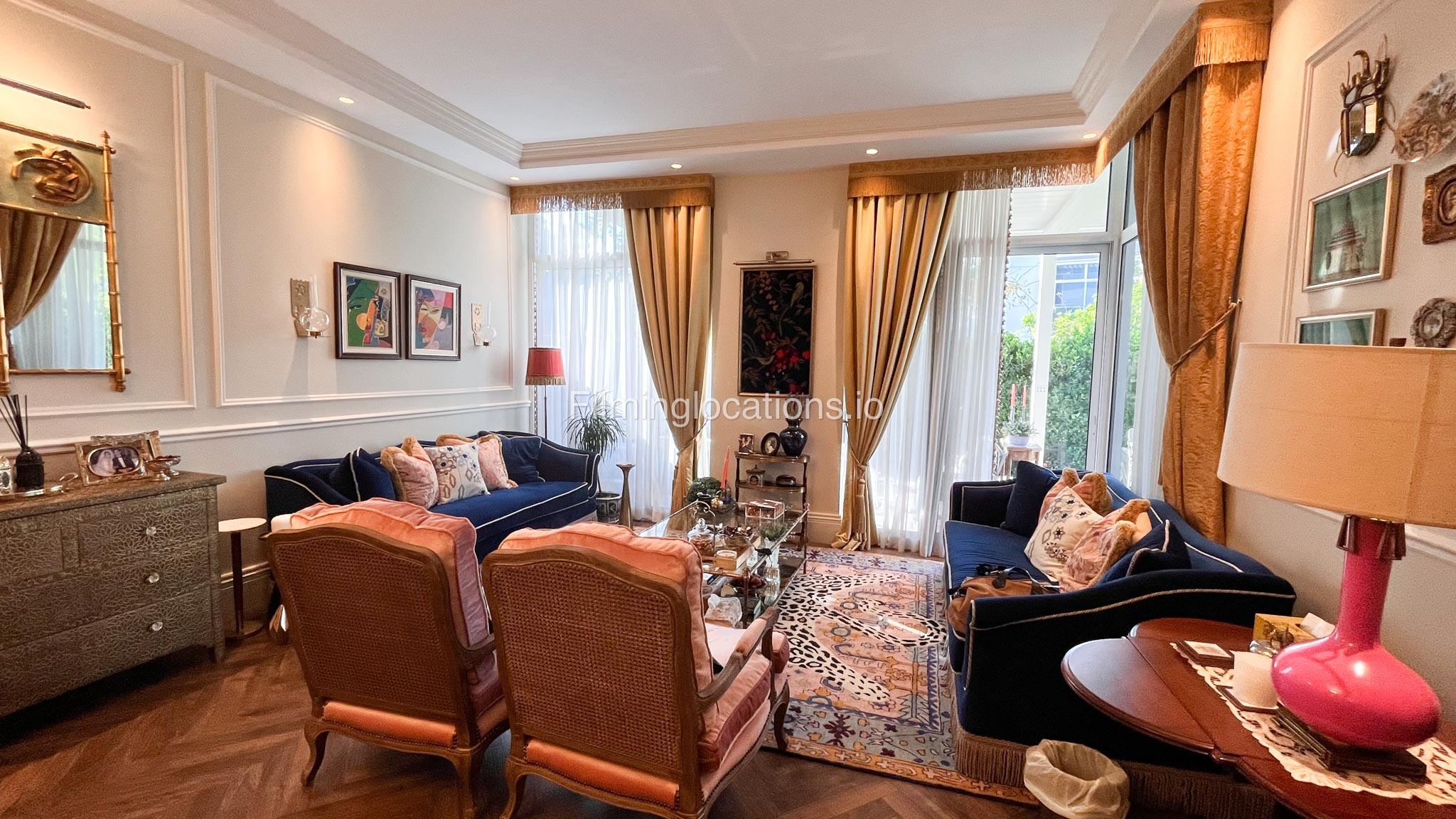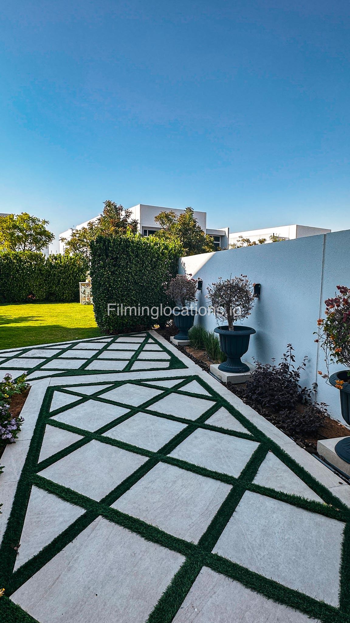 The colorful living room seamlessly integrates a stylish dining area, creating a welcoming space for any type of production. Villa has sleek and modern kitchen with straight access to the garden which can be perfect for filmmakers. The grand foyer welcomes you with its exquisite decor, and elegant lighting, setting the tone for the rest of the home. This cozy and well-appointed guest bedroom features a comfortable bed, and a spacious wardrobe. The chic powder room boasts sleek finishes and stylish space for guests.