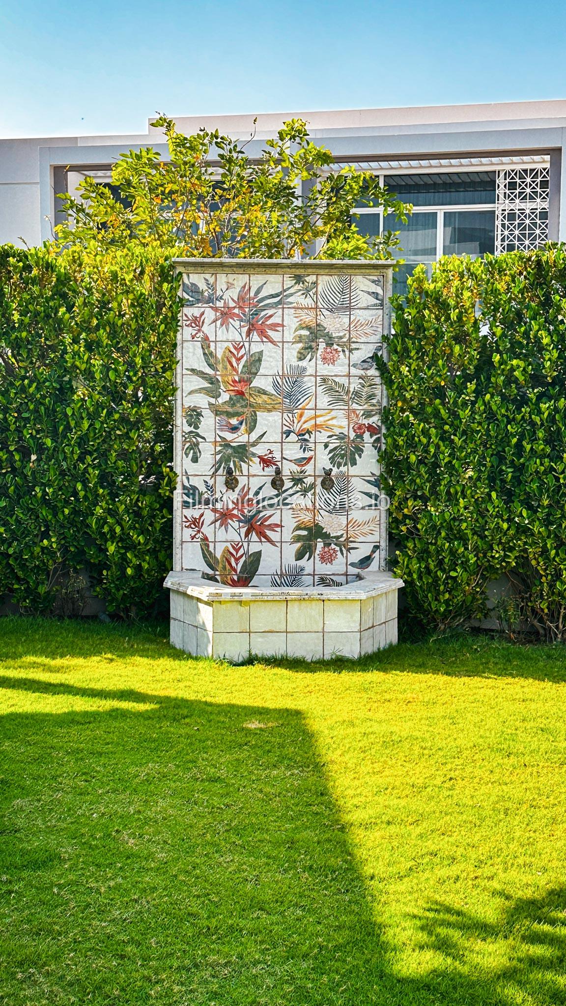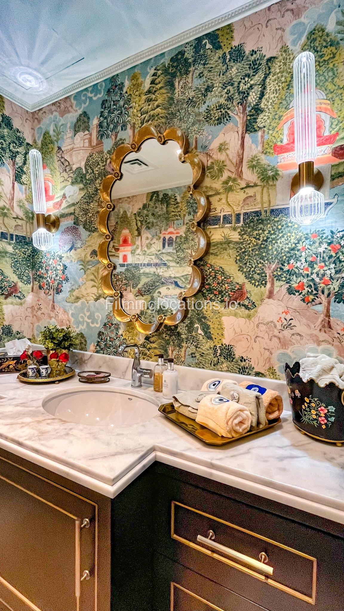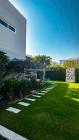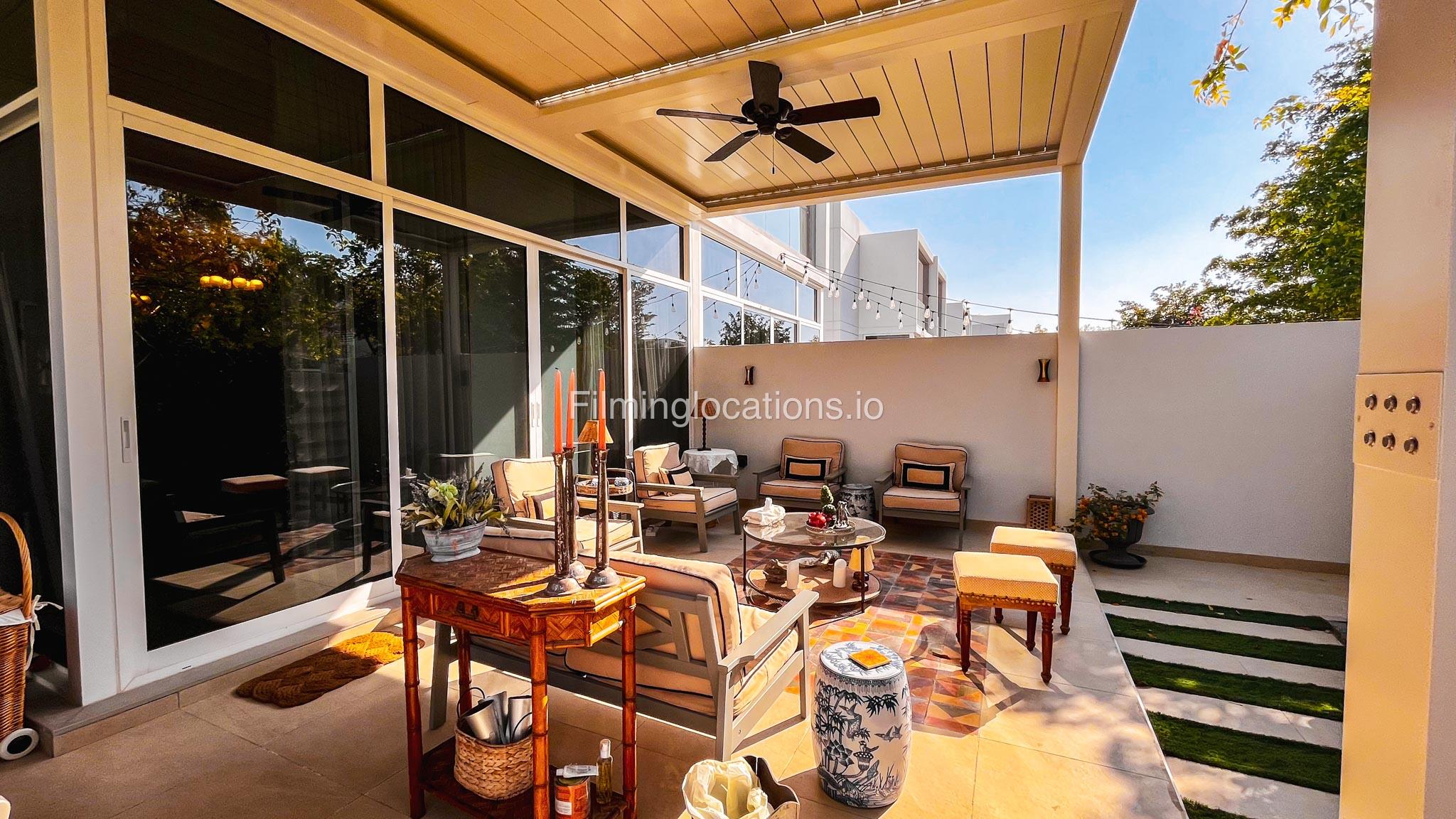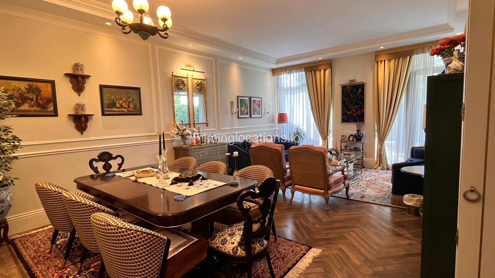 The colorful living room seamlessly integrates a stylish dining area, creating a welcoming space for any type of production. Villa has sleek and modern kitchen with straight access to the garden which can be perfect for filmmakers. The grand foyer welcomes you with its exquisite decor, and elegant lighting, setting the tone for the rest of the home. This cozy and well-appointed guest bedroom features a comfortable bed, and a spacious wardrobe. The chic powder room boasts sleek finishes and stylish space for guests.