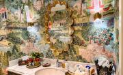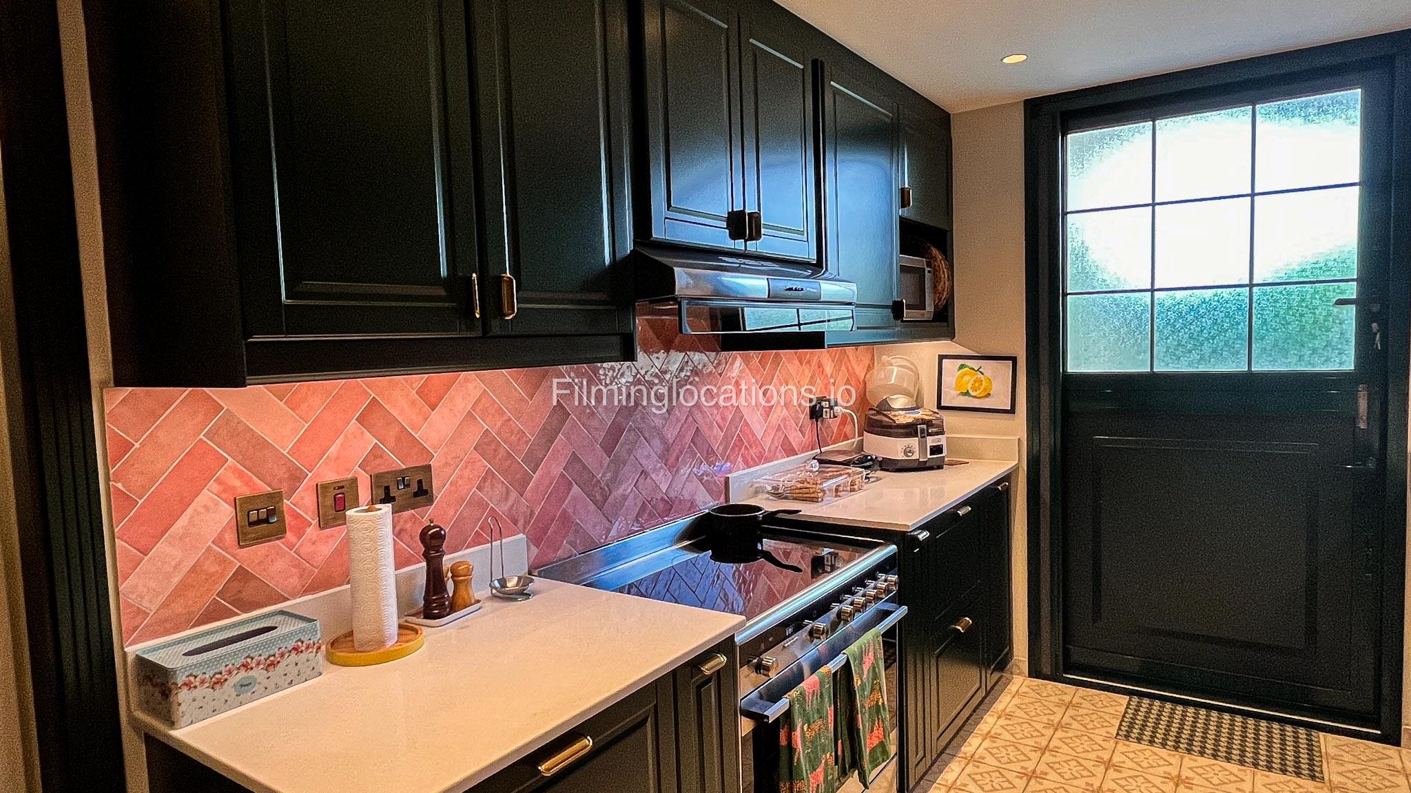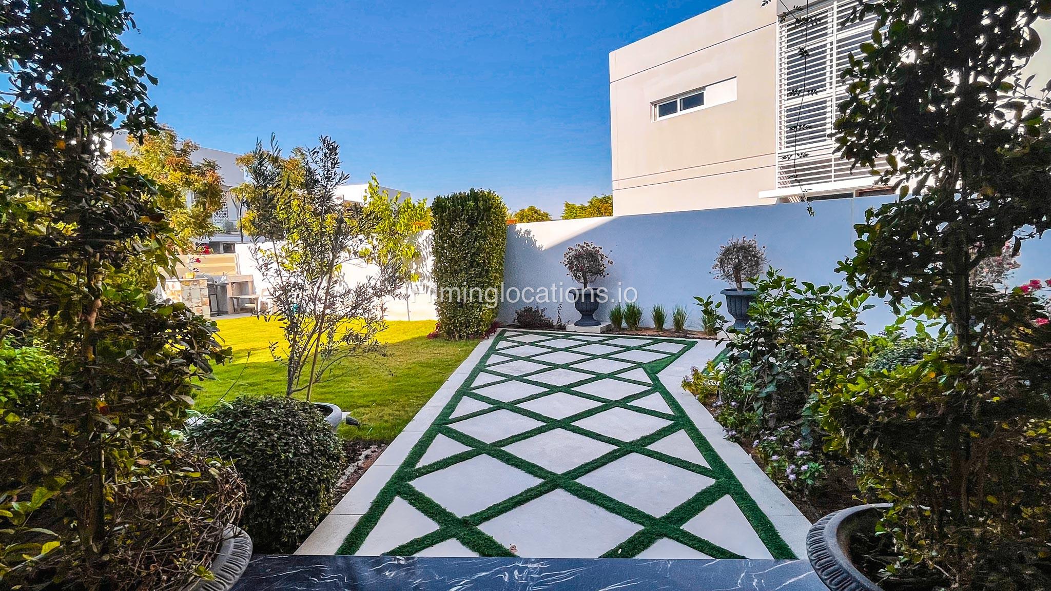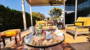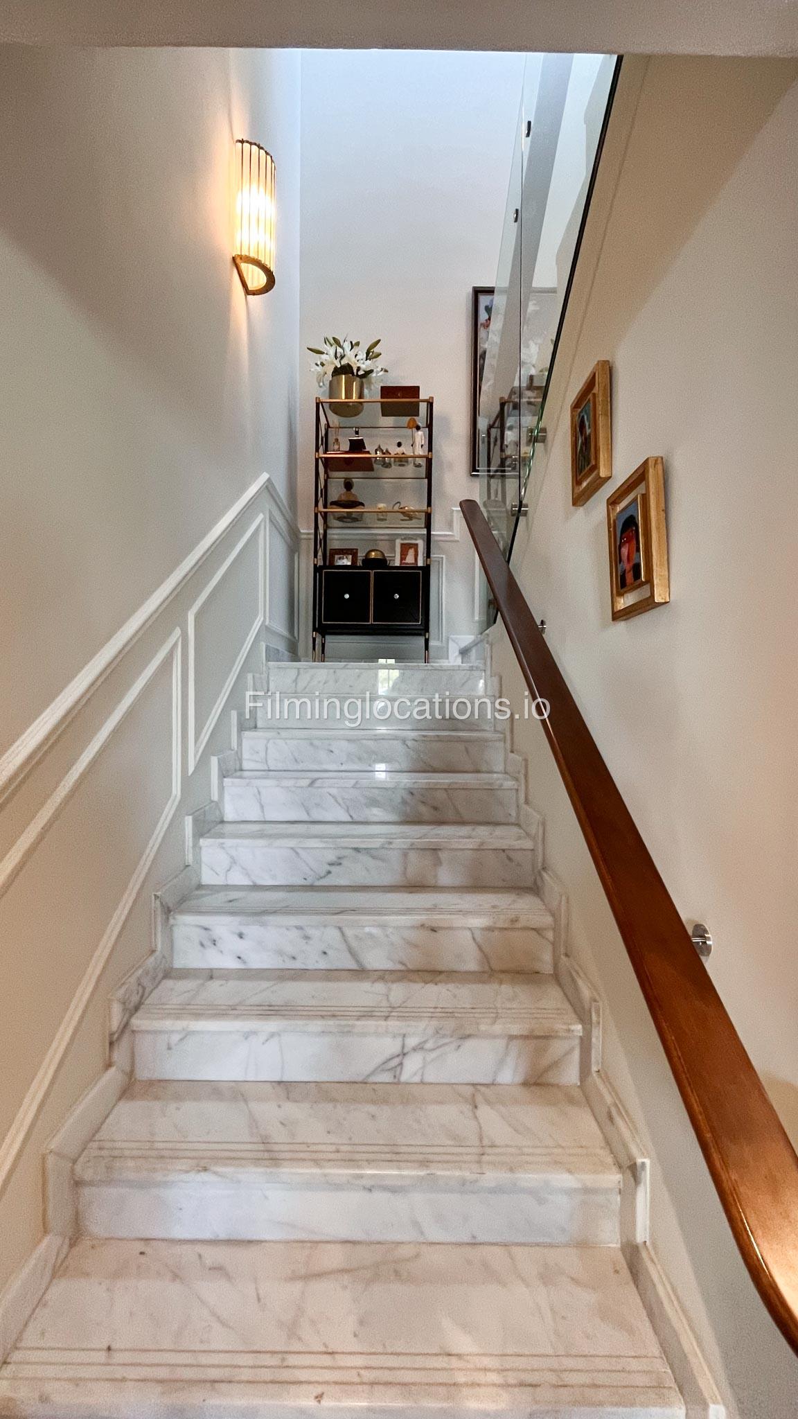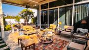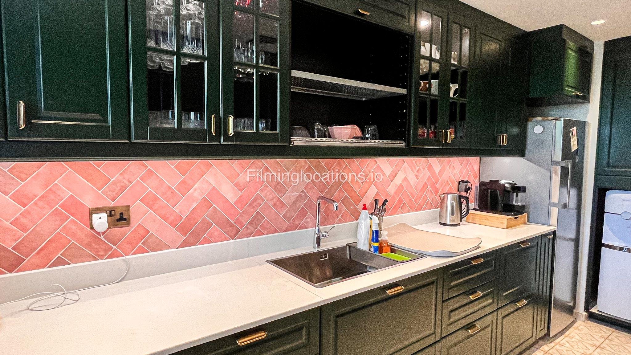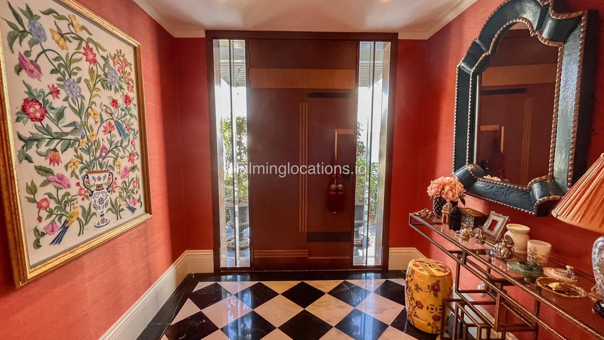 The colorful living room seamlessly integrates a stylish dining area, creating a welcoming space for any type of production. Villa has sleek and modern kitchen with straight access to the garden which can be perfect for filmmakers. The grand foyer welcomes you with its exquisite decor, and elegant lighting, setting the tone for the rest of the home. This cozy and well-appointed guest bedroom features a comfortable bed, and a spacious wardrobe. The chic powder room boasts sleek finishes and stylish space for guests.