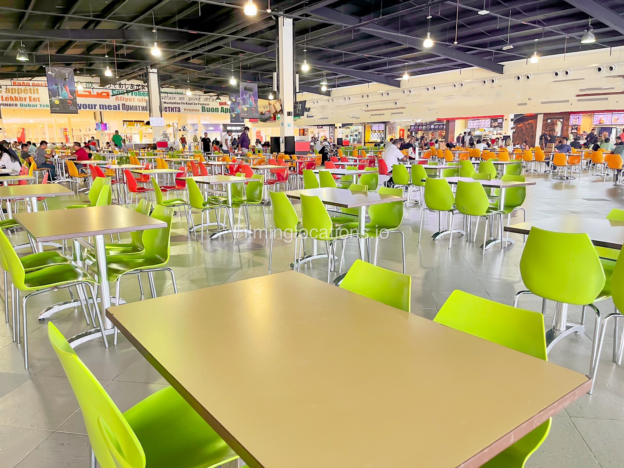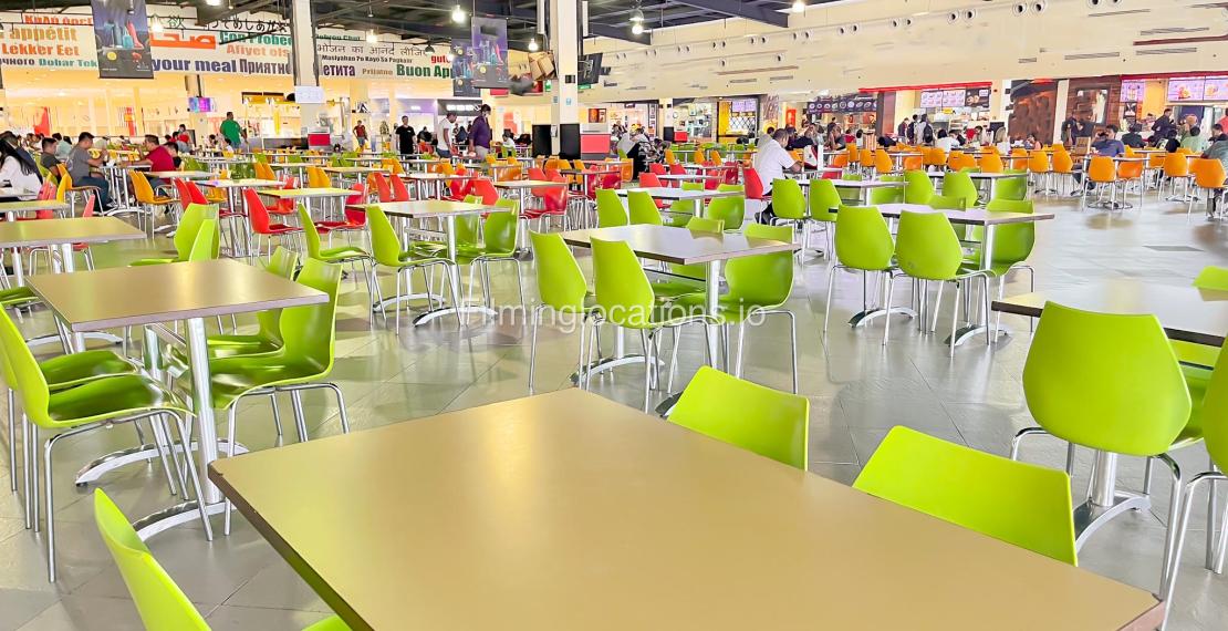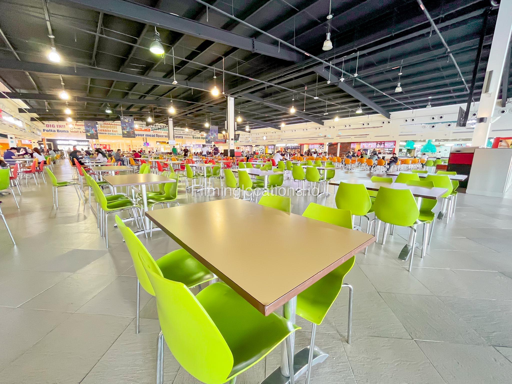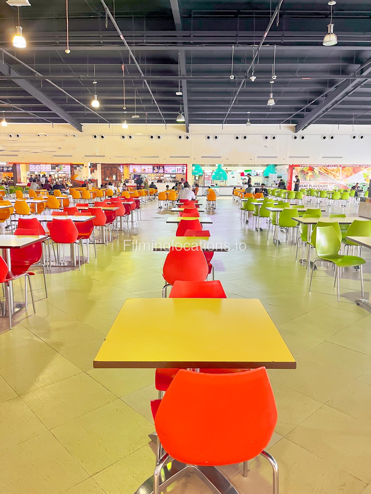 The mall boasts a bustling food court with a wide range of cuisines and seating areas. This space provides an opportunity for scenes involving meals, gatherings, or conversations over a quick bite to eat.