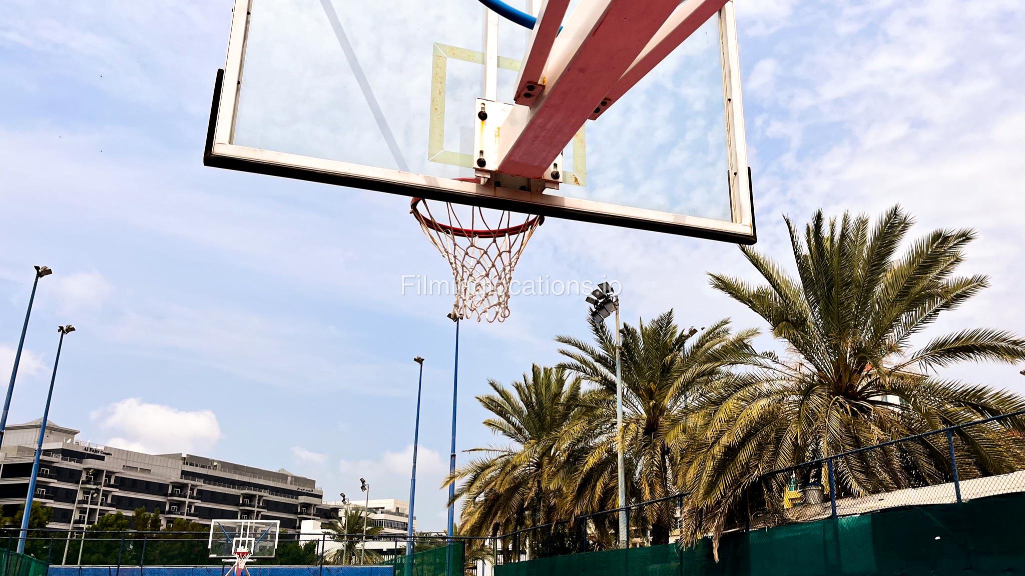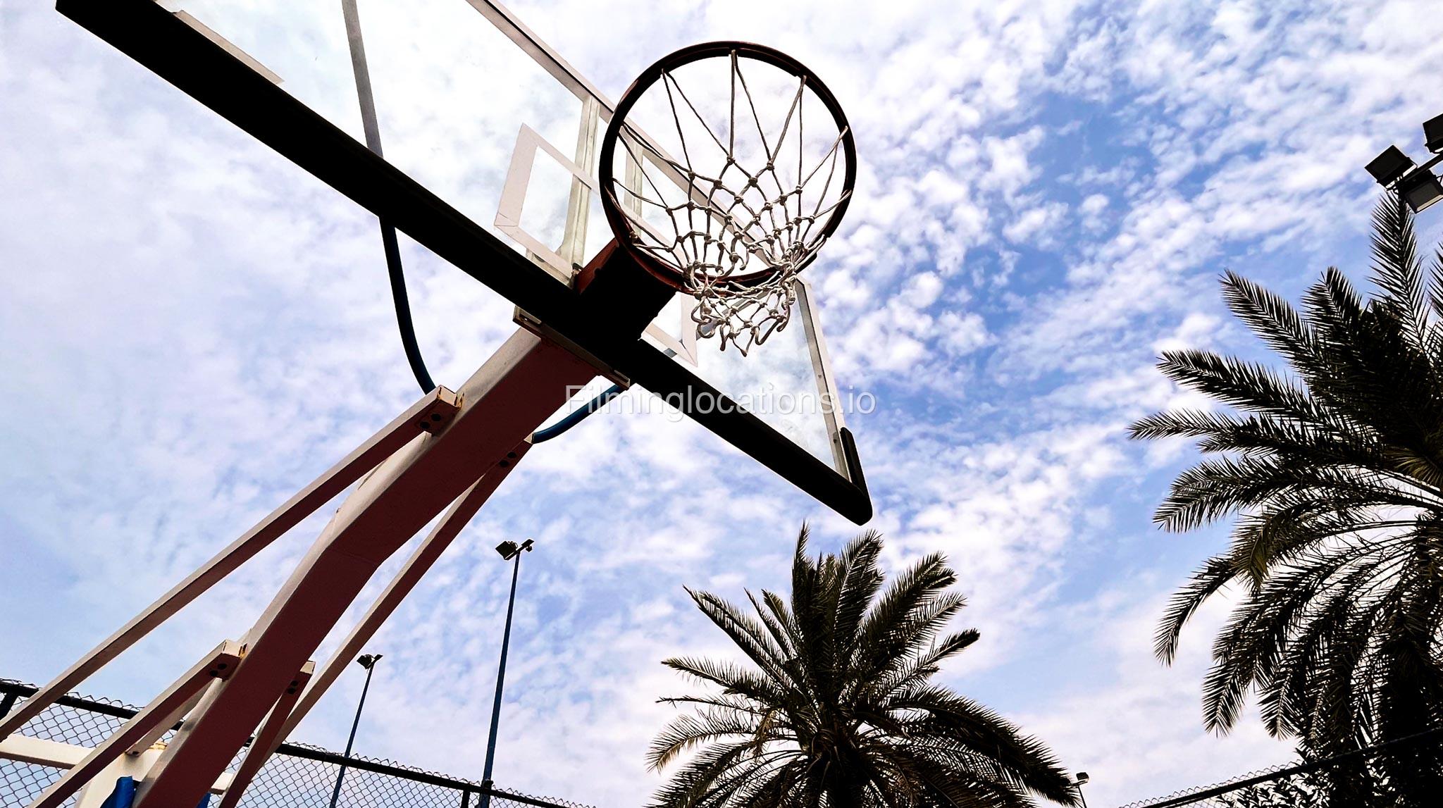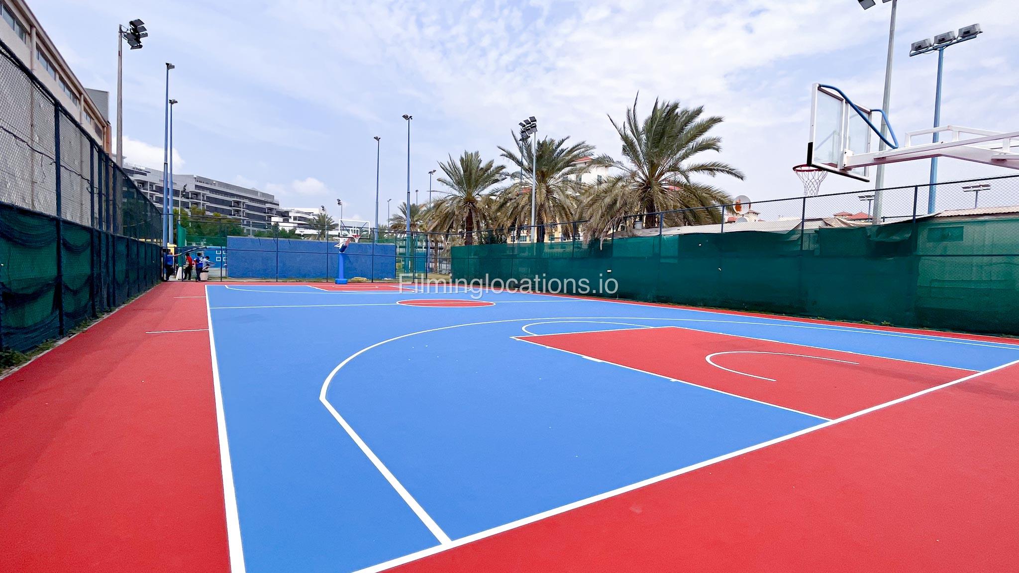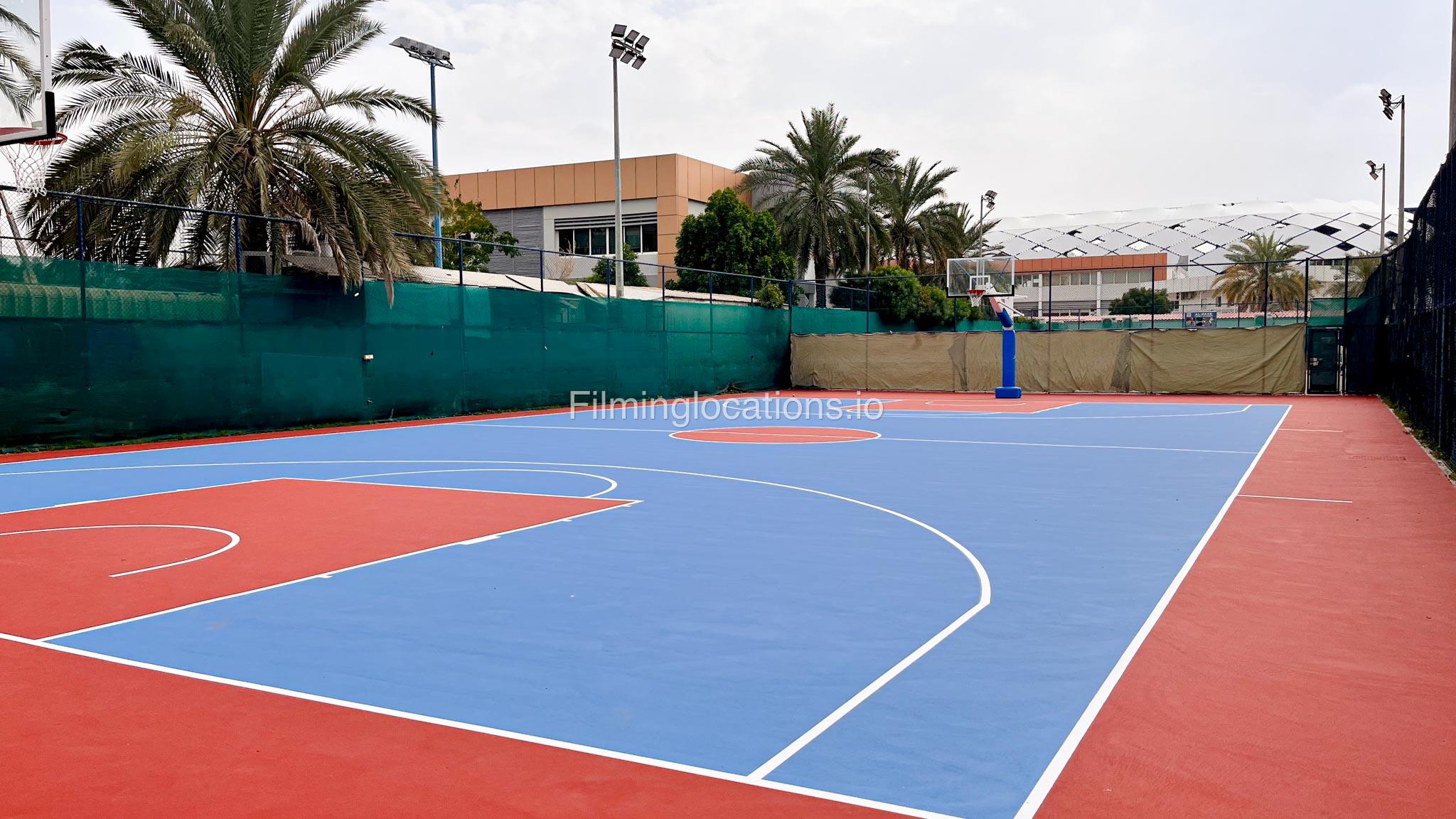 A vast basketball court offers wide space that can accommodate a significant number of people, making it an ideal location for filming.