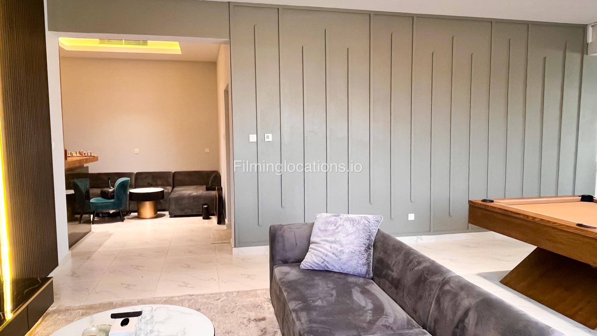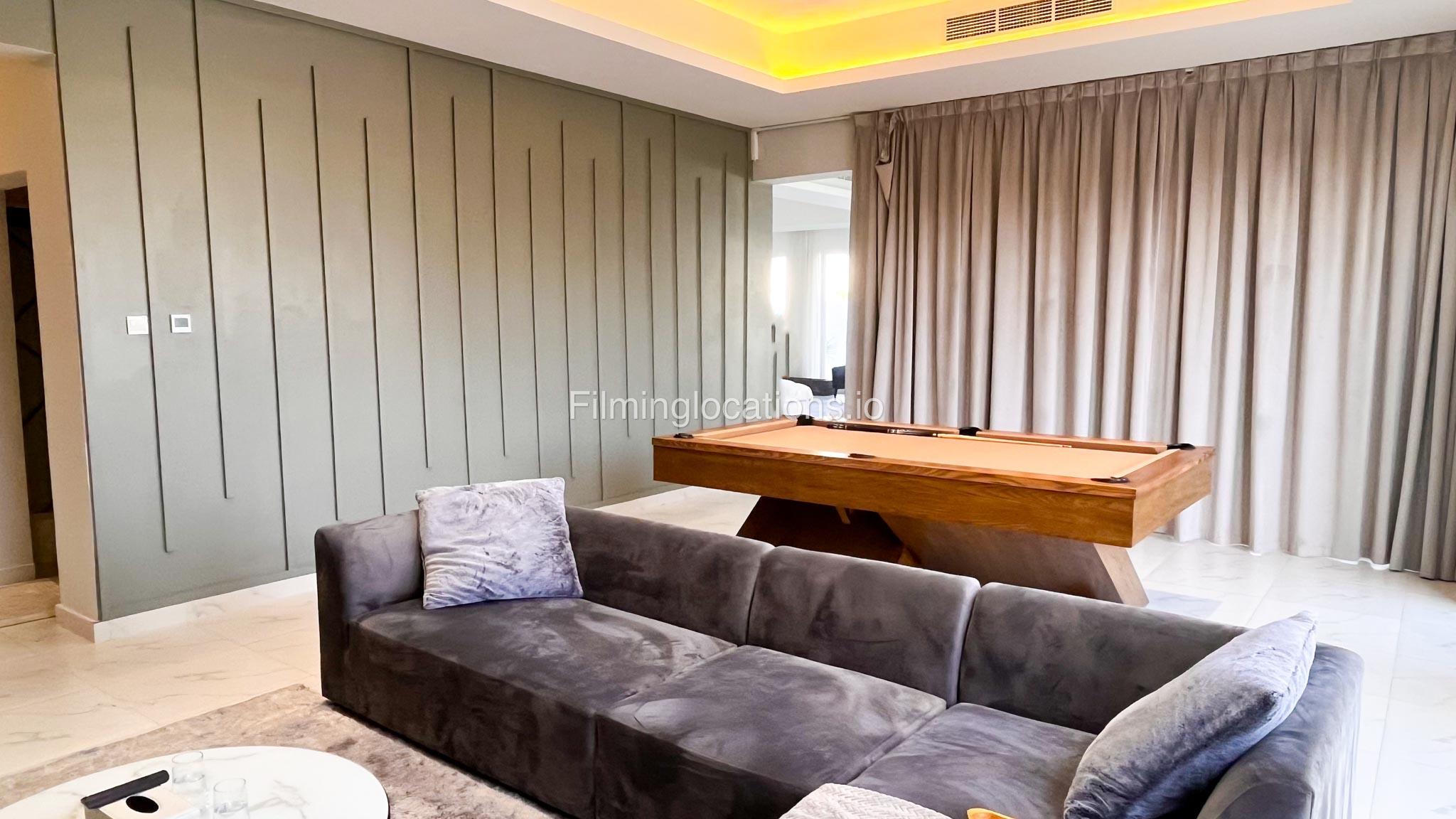 Situated in a serene neighborhood, our villa offers 2 bedrooms, a spacious walking closet with a makeup room and the gym. a ground floor featuring two living room with a pool table. An upstairs sitting area adorned with unique décor elements and a pool table. With convenient car access and a delightful outdoor fireplace, it provides a cozy atmosphere for shoots.