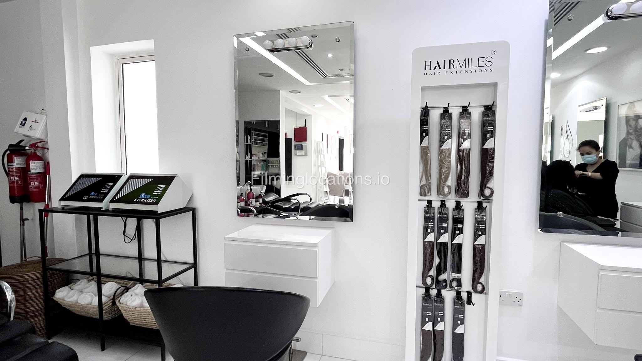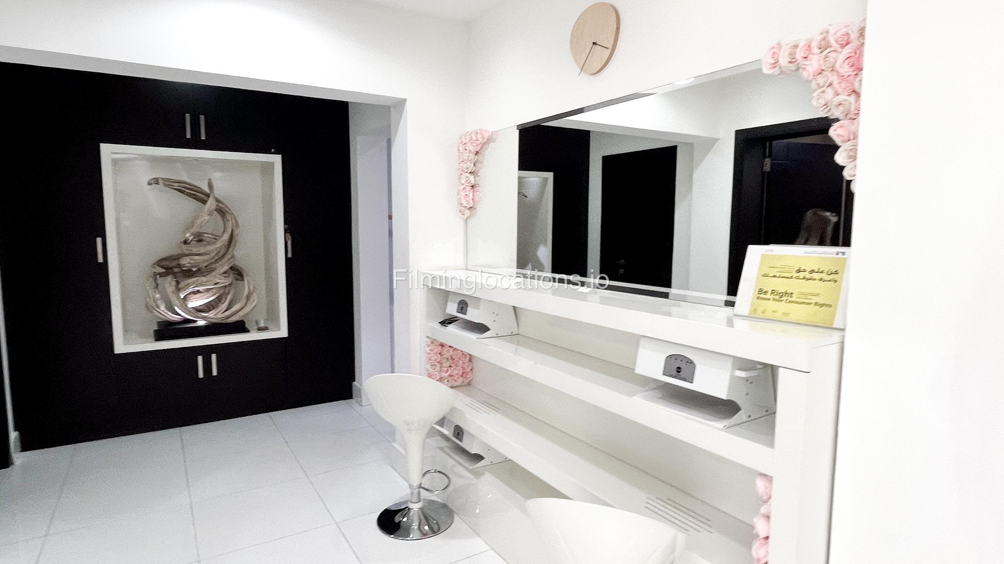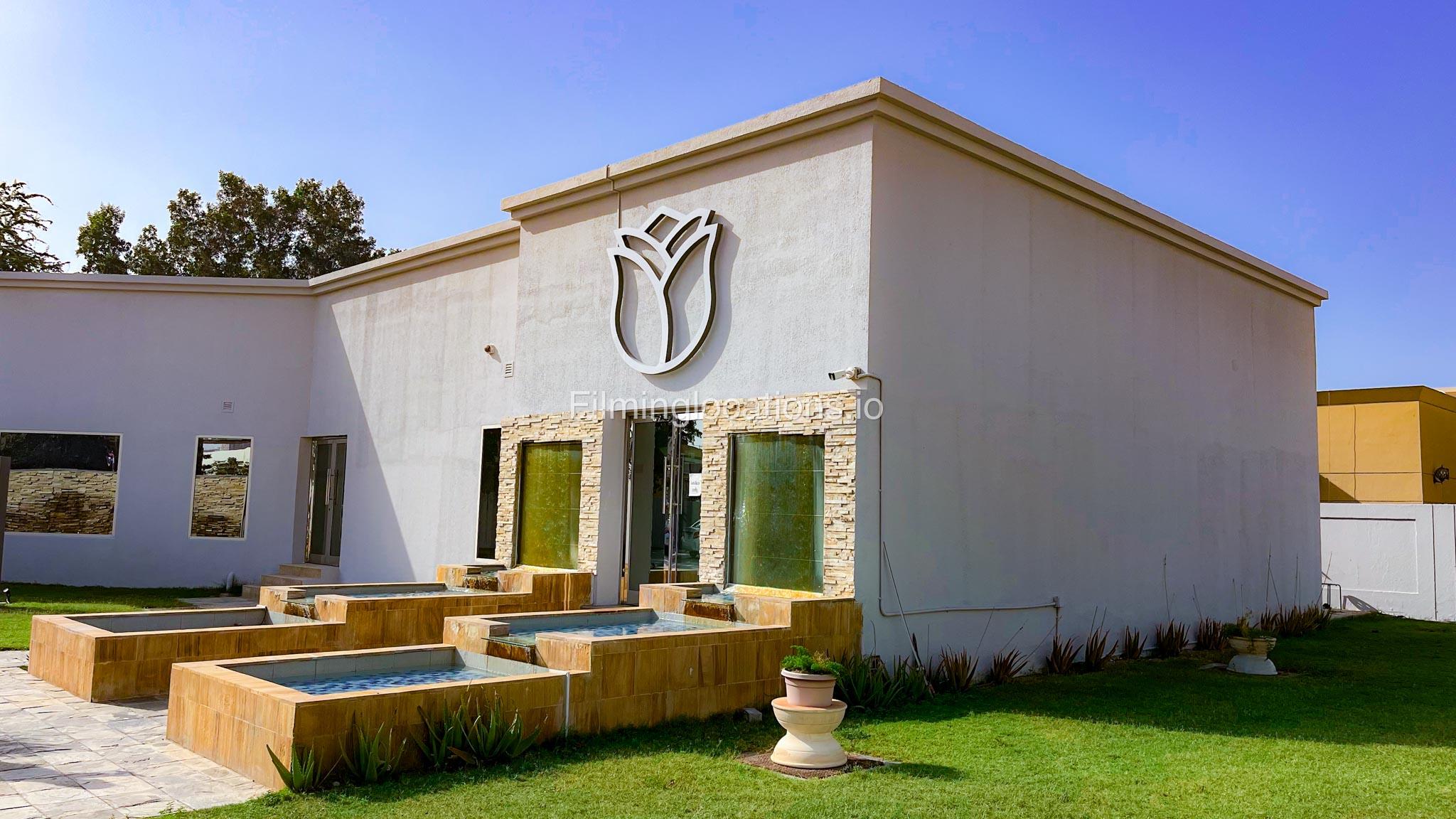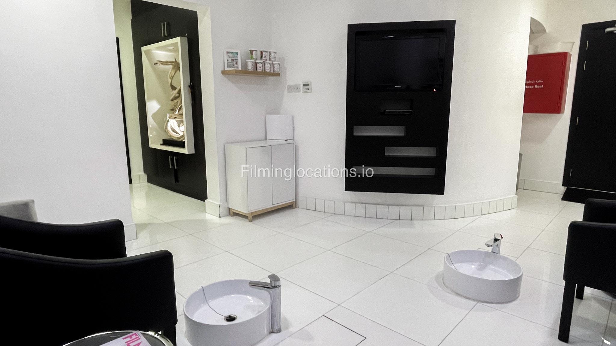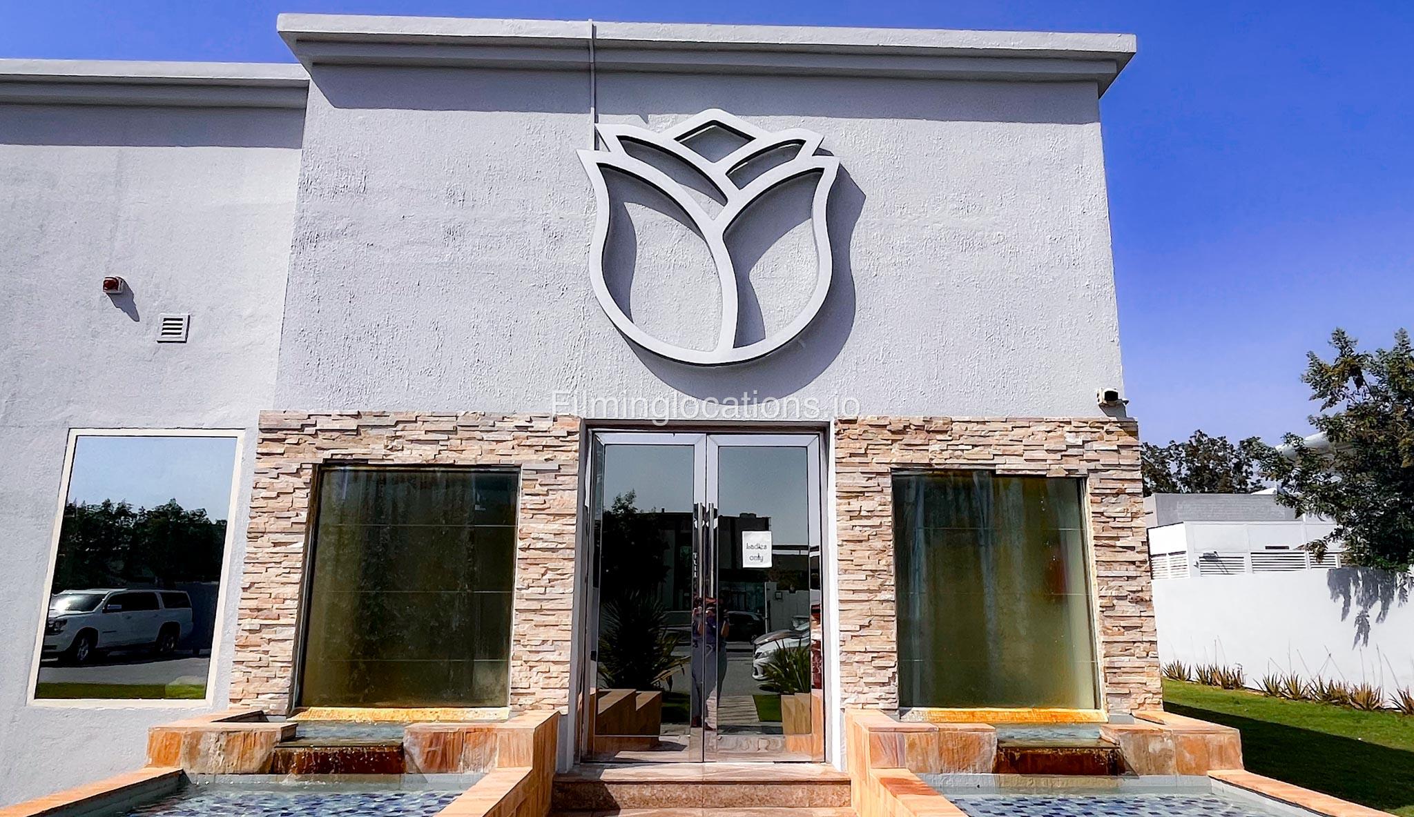 Presenting an exceptional filming location—a splendid beauty salon boasting a magnificent reception area that sets the tone for elegance. The salon features two massage rooms, a dedicated facial room, and three waxing rooms, providing ample space for various beauty treatments. A Moroccan bath and a dedicated manicure/pedicure room are also available for pampering sessions. For bridal preparations, the salon offers a dedicated bride room hub with two makeup seats and a hairdresser section equipped with two hair wash stations and five hairdresser stations. The exterior of the salon provides many parking spaces and a beautifully manicured garden adorned with enchanting fountains. This location is perfect for capturing captivating scenes in the world of beauty and glamour.