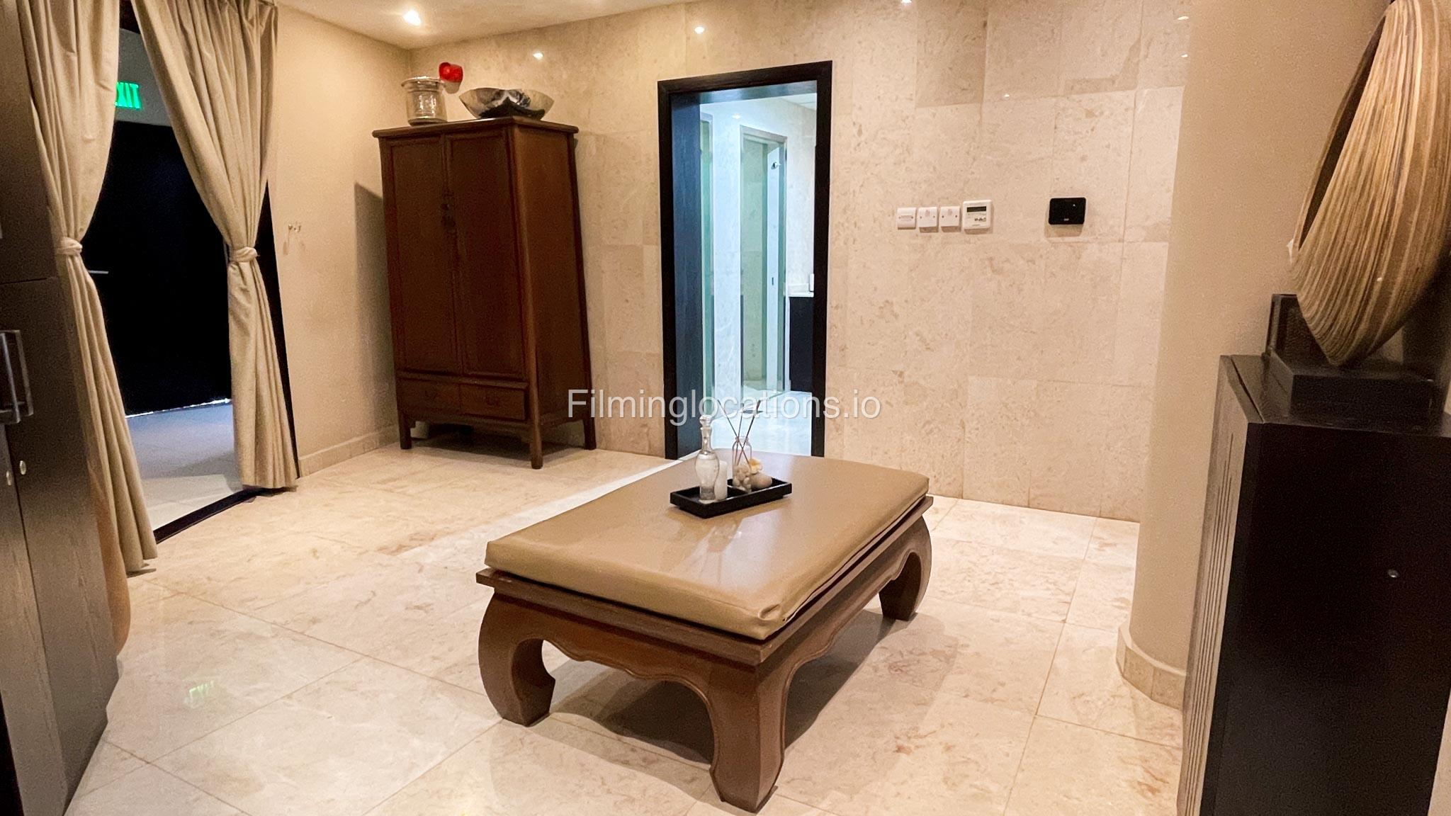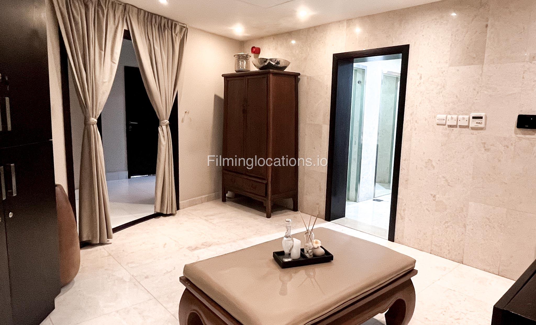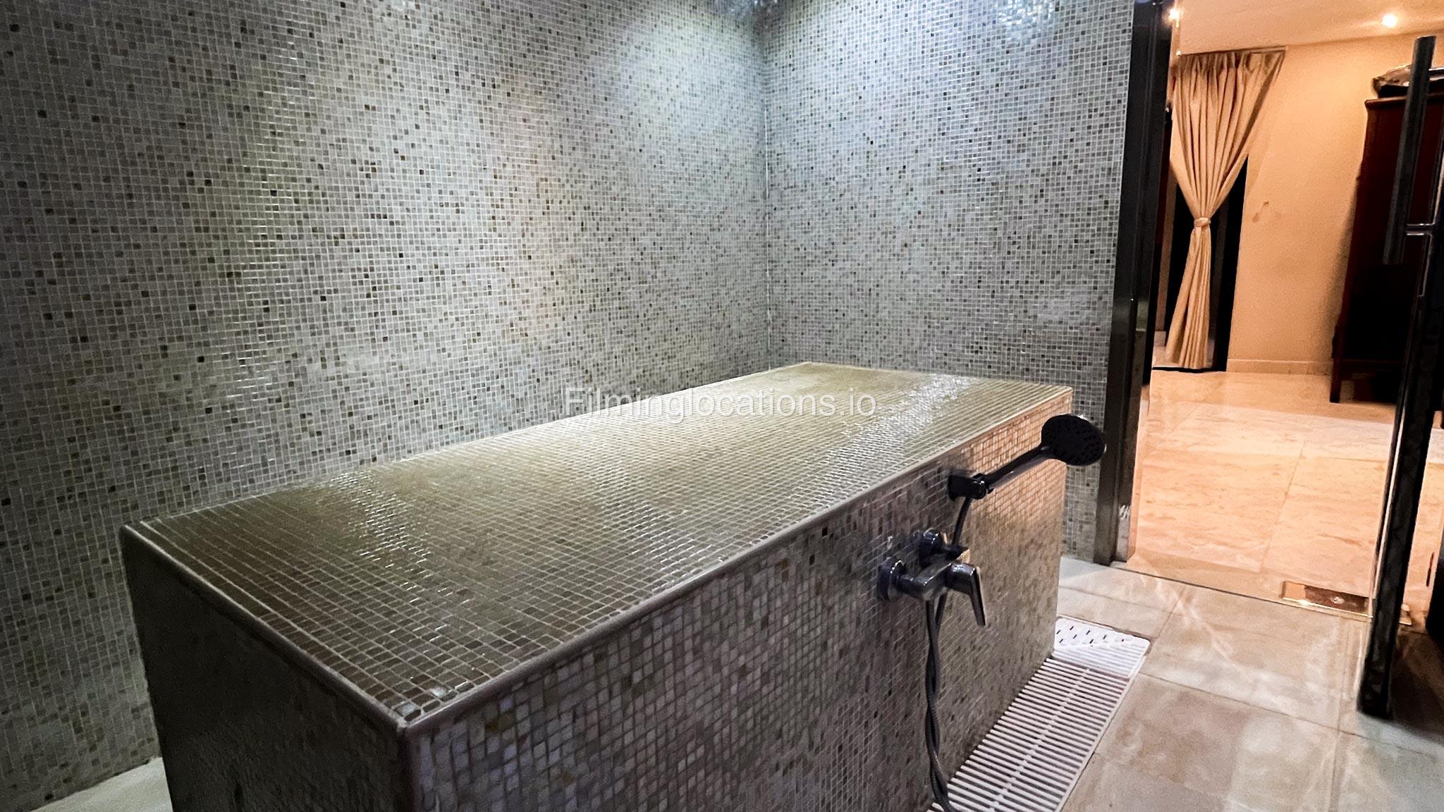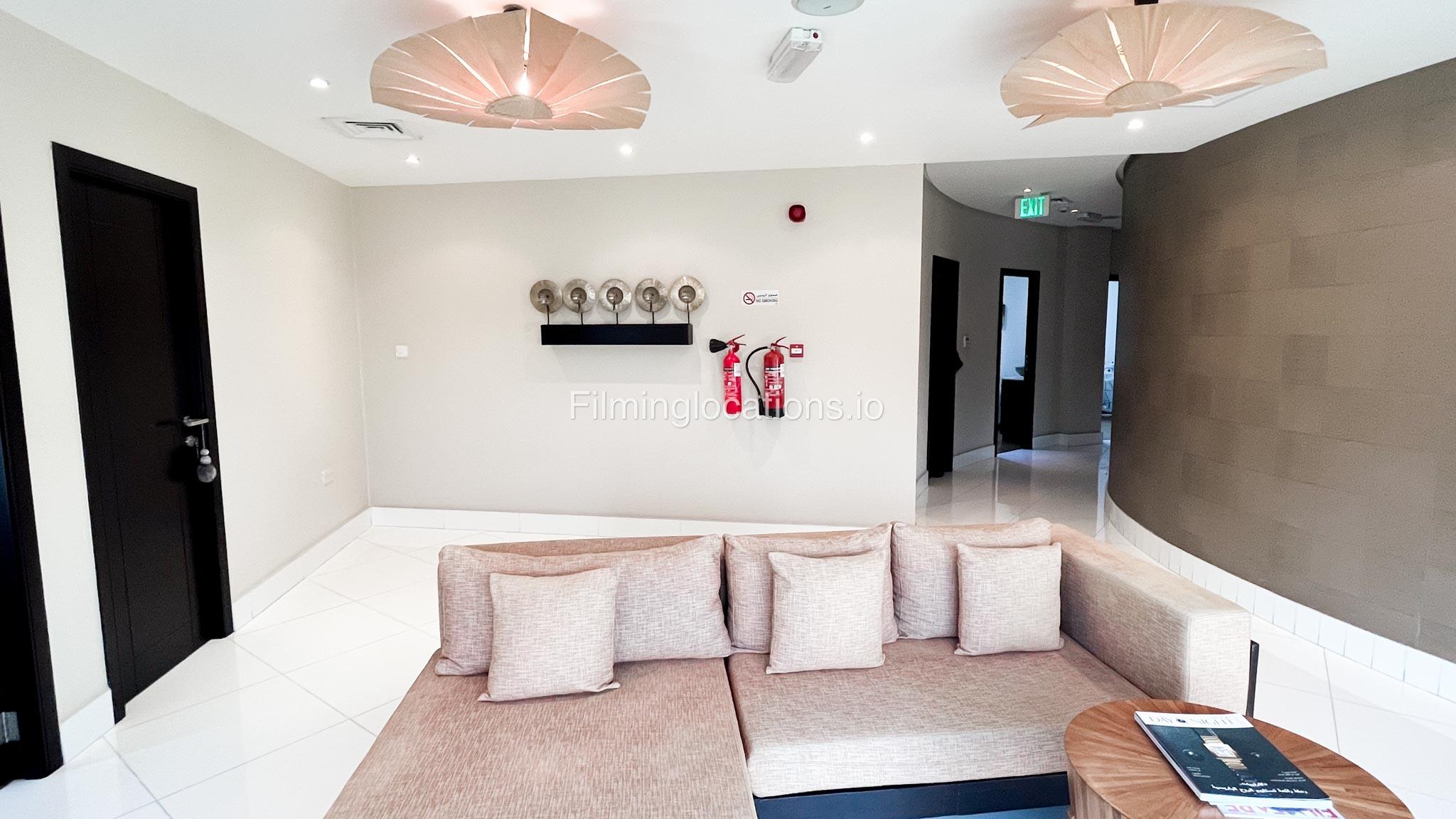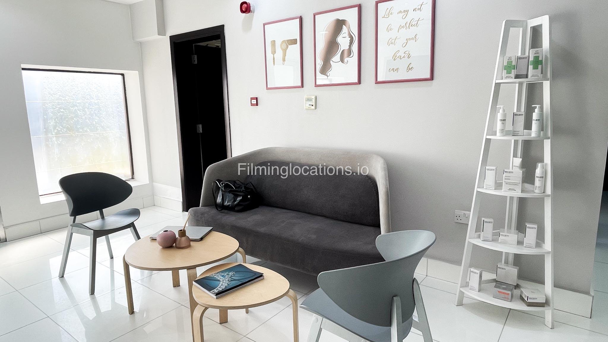 Presenting an exceptional filming location—a splendid beauty salon boasting a magnificent reception area that sets the tone for elegance. The salon features two massage rooms, a dedicated facial room, and three waxing rooms, providing ample space for various beauty treatments. A Moroccan bath and a dedicated manicure/pedicure room are also available for pampering sessions. For bridal preparations, the salon offers a dedicated bride room hub with two makeup seats and a hairdresser section equipped with two hair wash stations and five hairdresser stations. The exterior of the salon provides many parking spaces and a beautifully manicured garden adorned with enchanting fountains. This location is perfect for capturing captivating scenes in the world of beauty and glamour.