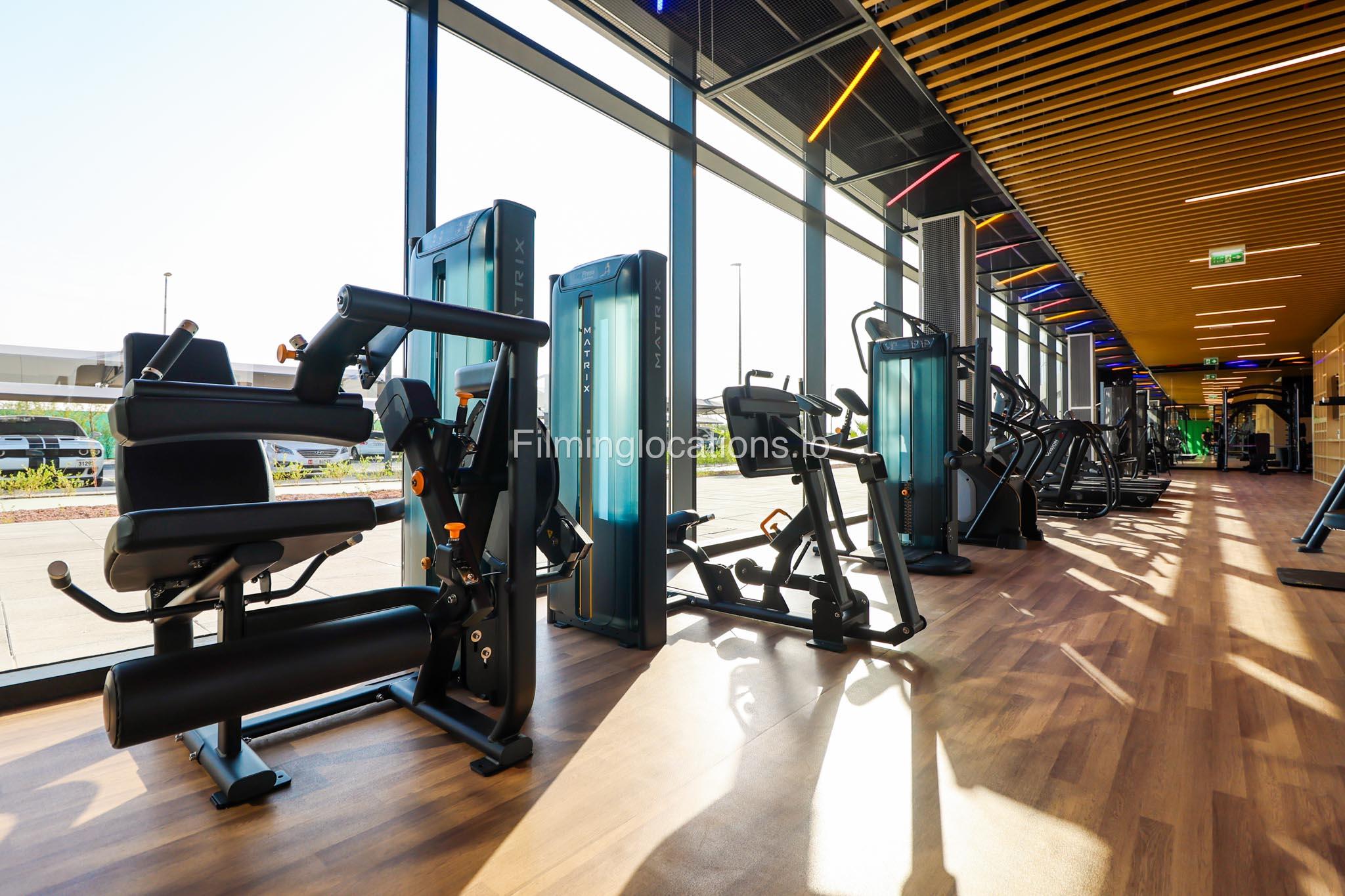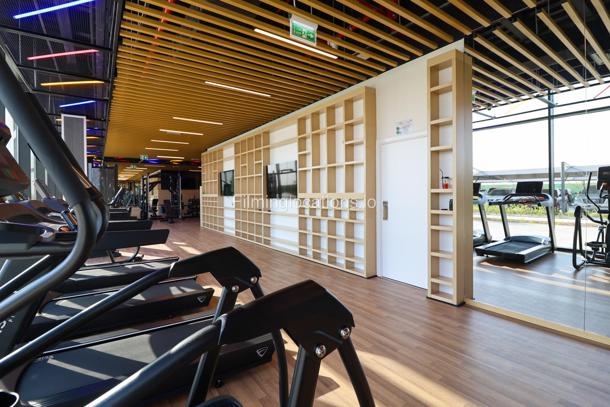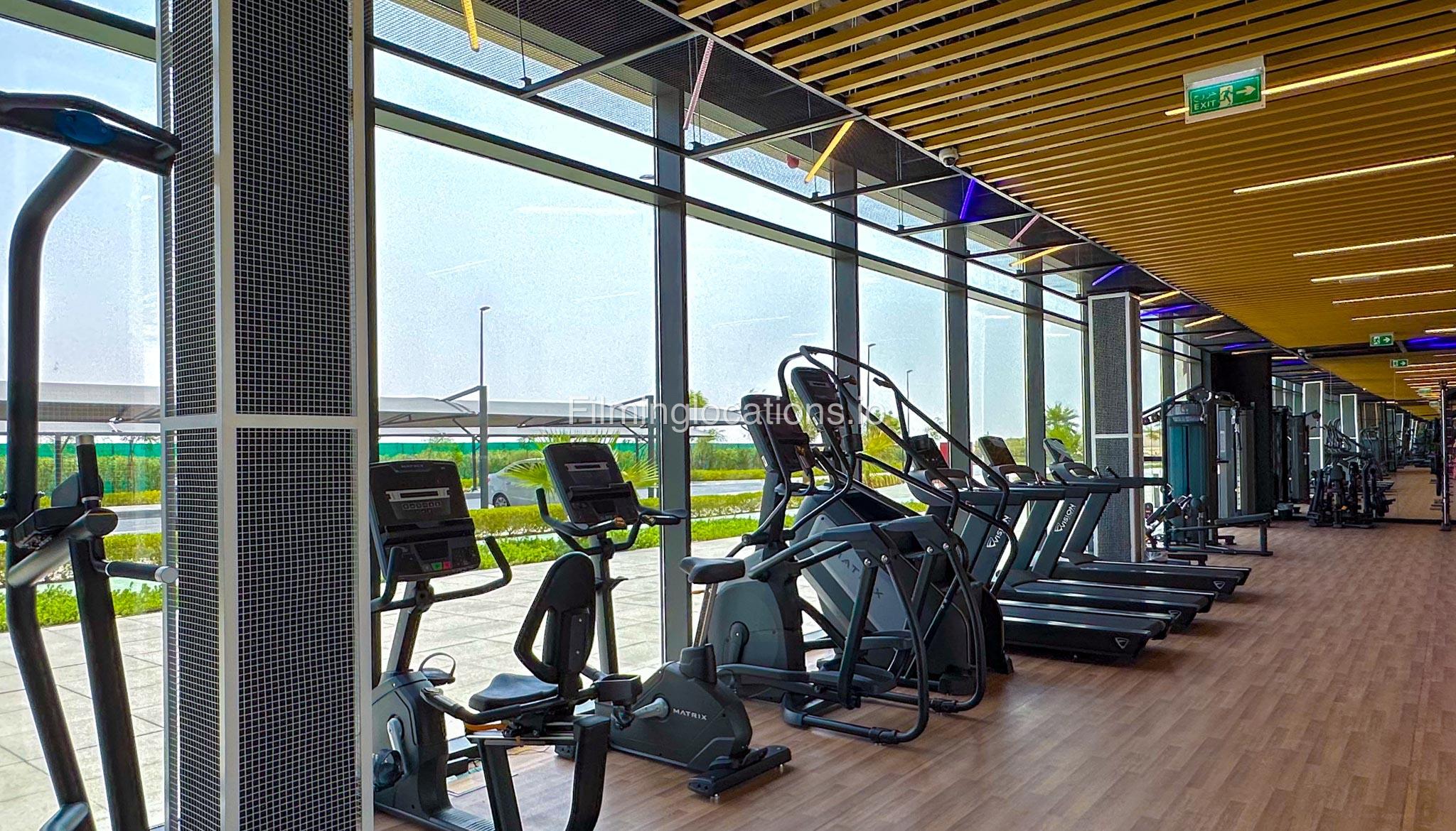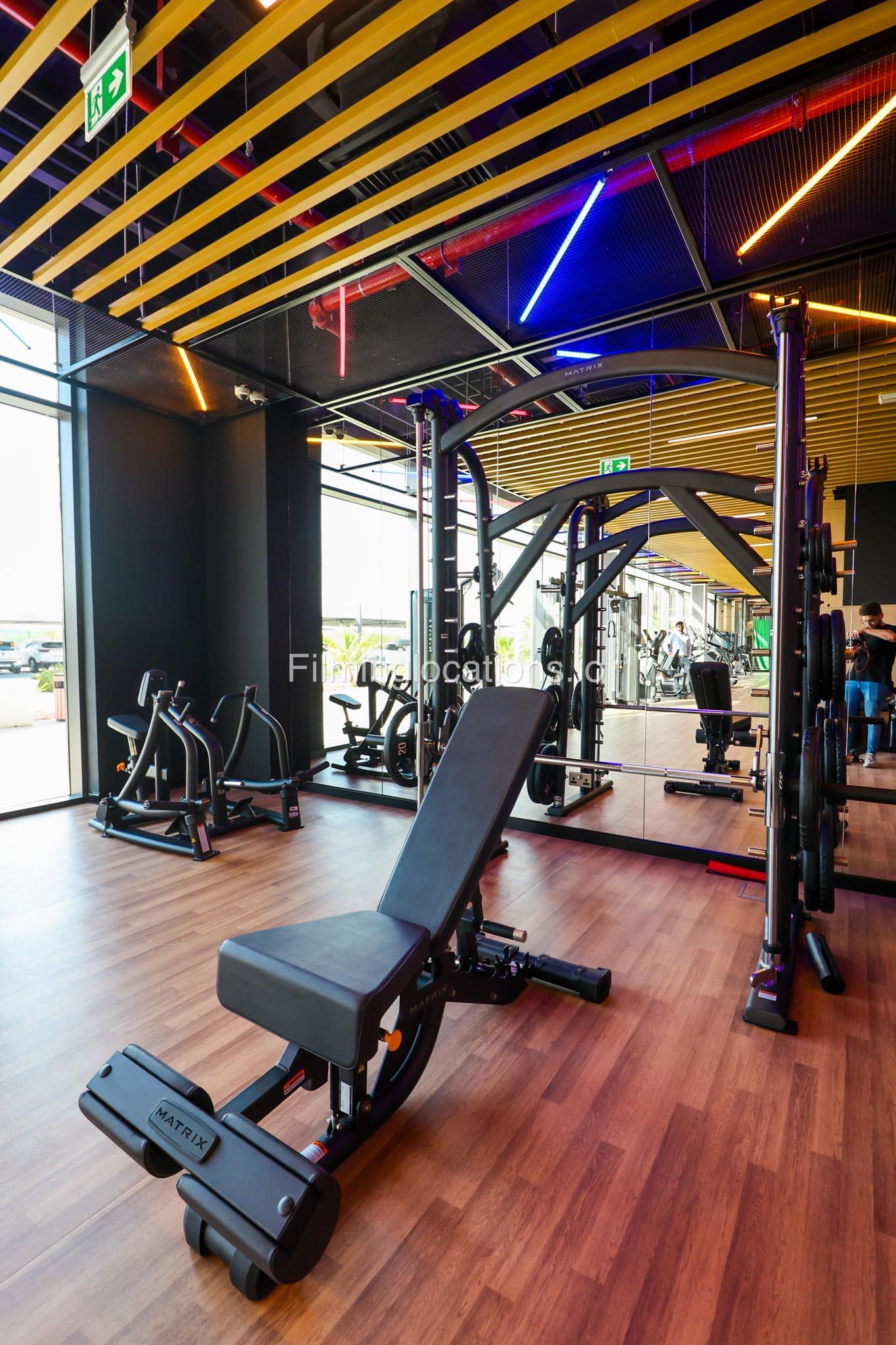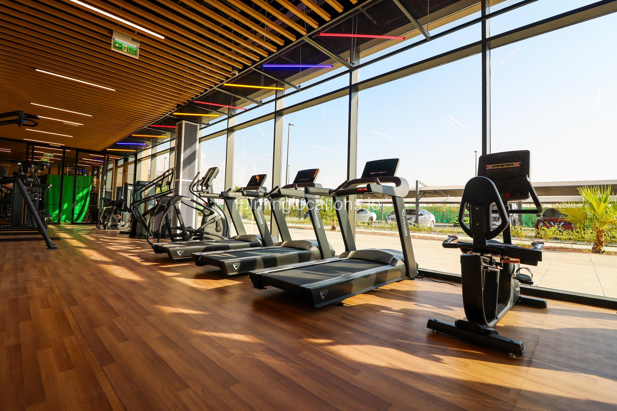 Our spacious Gym with Reception area is located in Sharjah. Spanning 185 sq.m., our facility offers an outdoor sitting area, shower cabins, and large fitness are fully equipment suitable for any size of production.