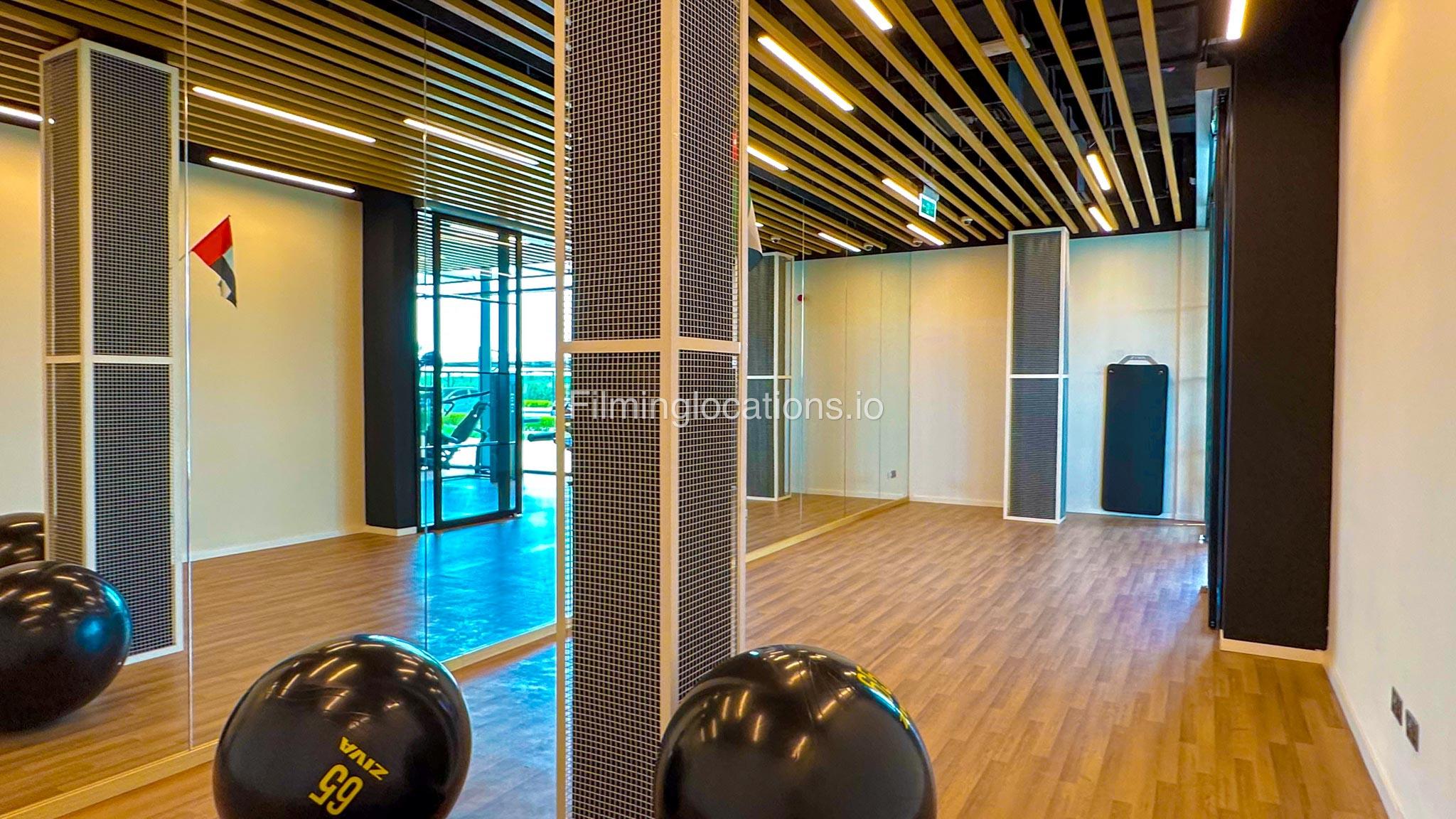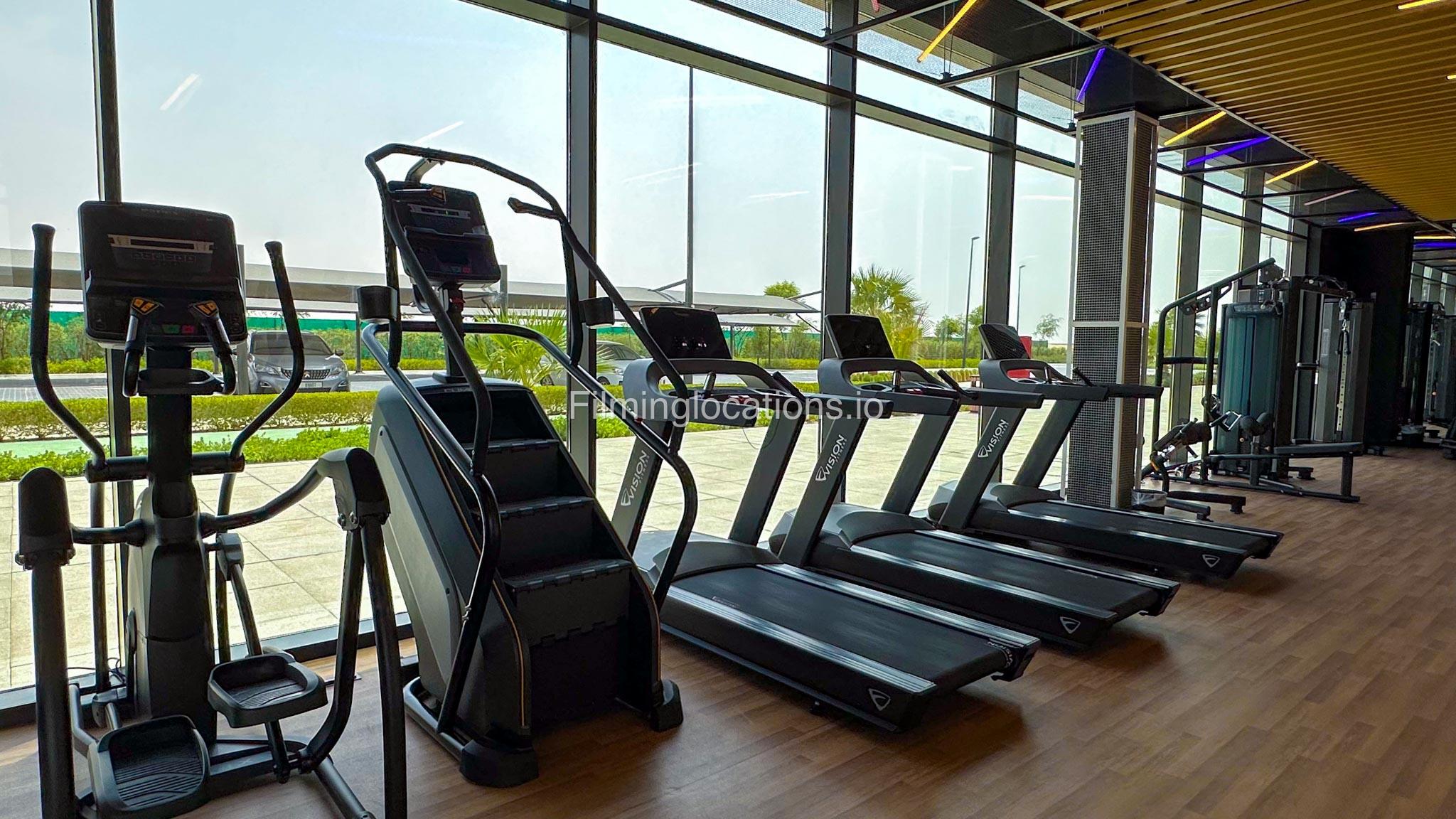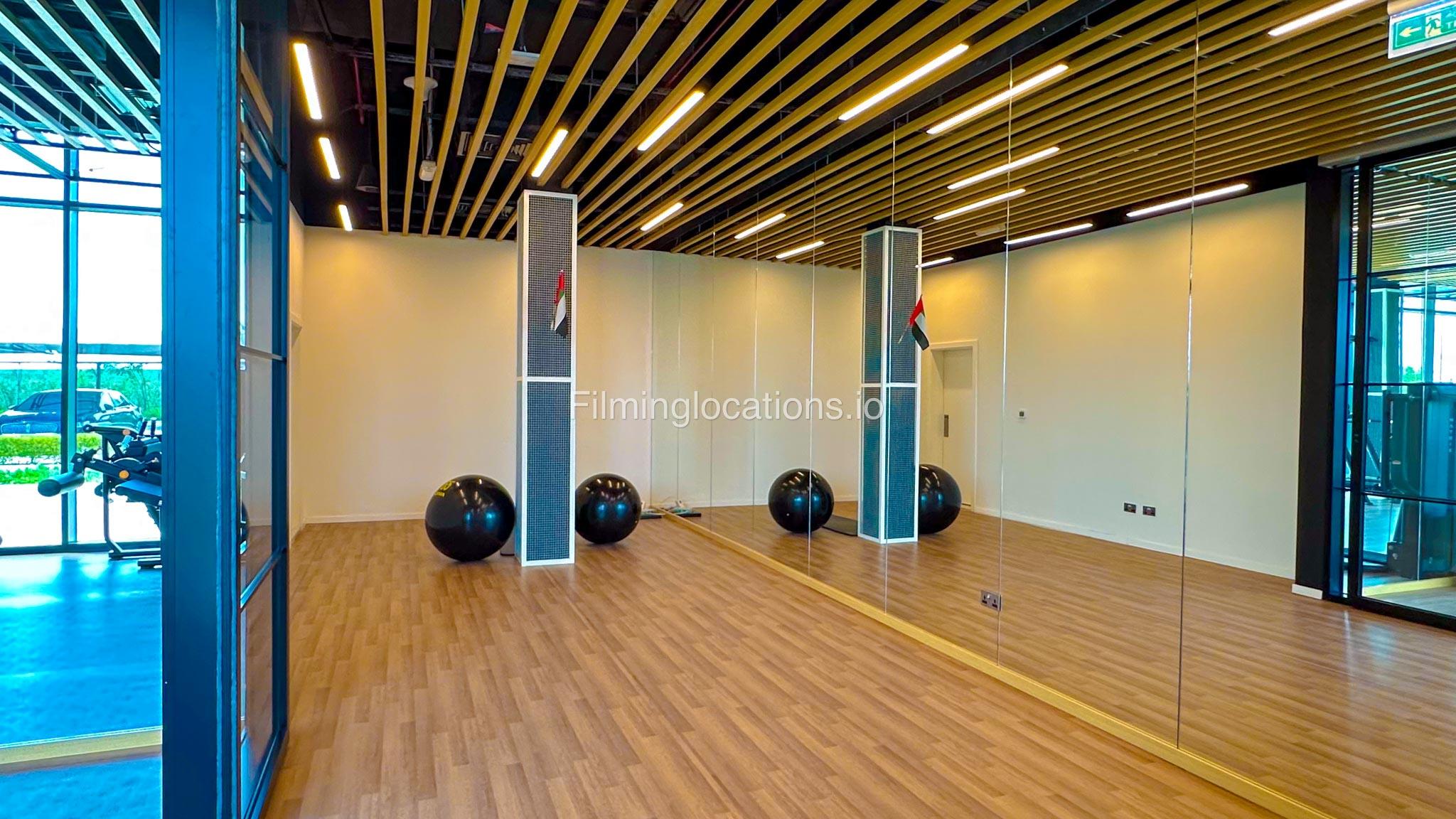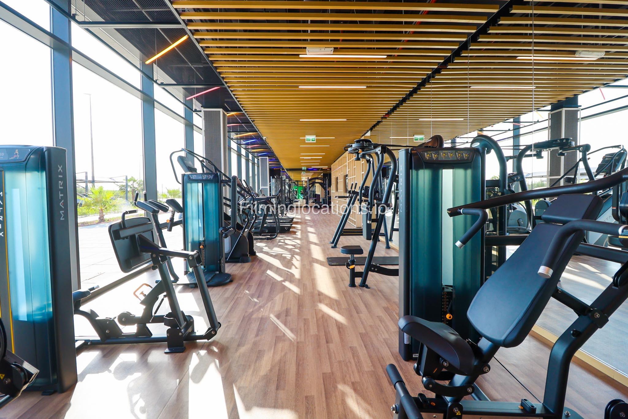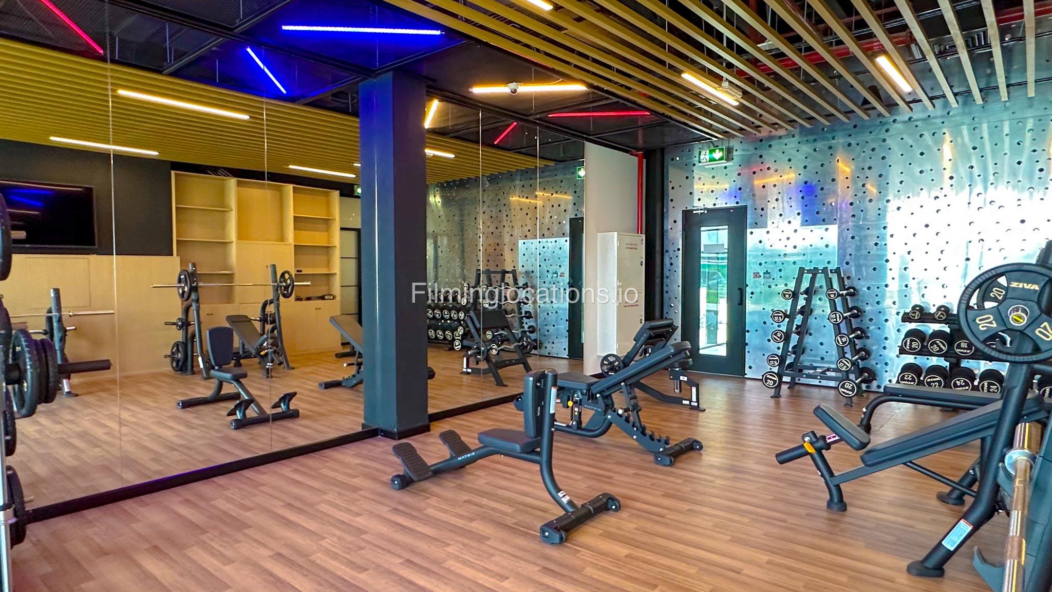 Our spacious Gym with Reception area is located in Sharjah. Spanning 185 sq.m., our facility offers an outdoor sitting area, shower cabins, and large fitness are fully equipment suitable for any size of production.