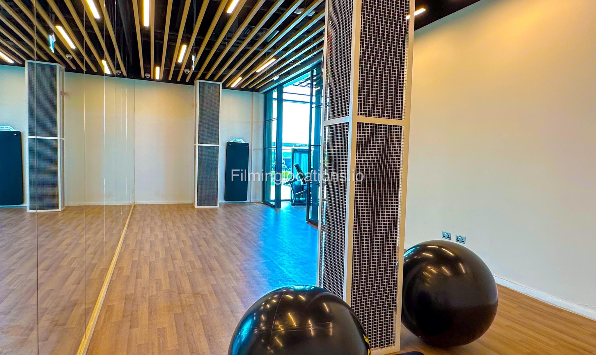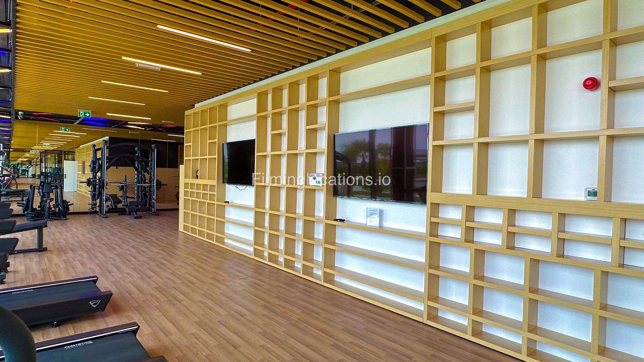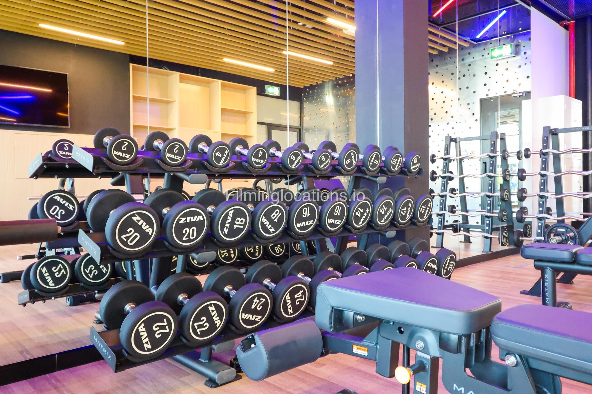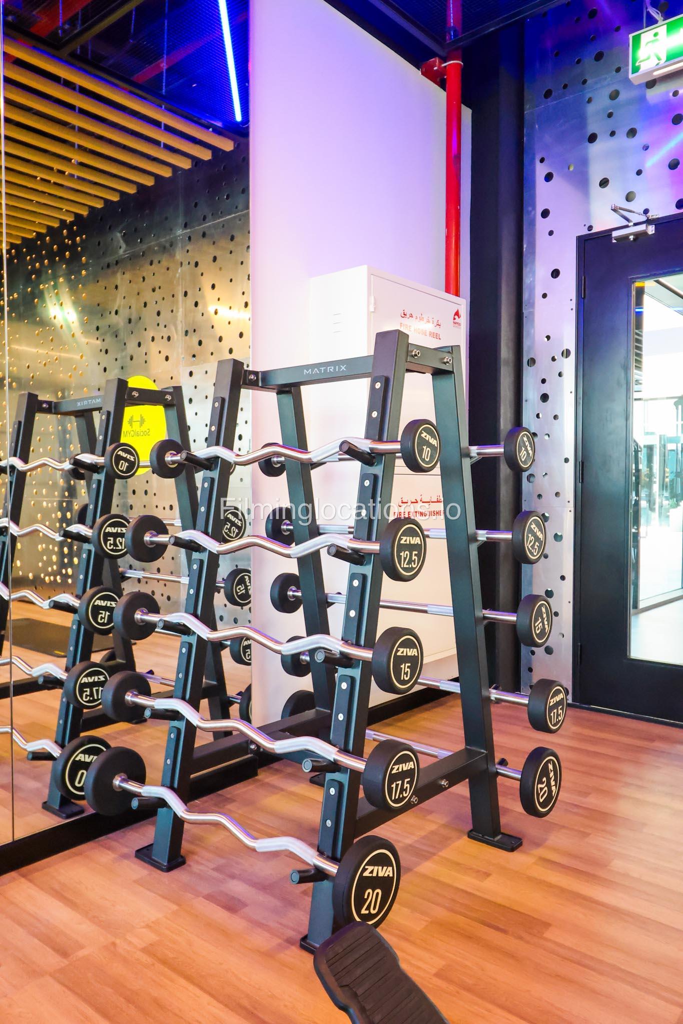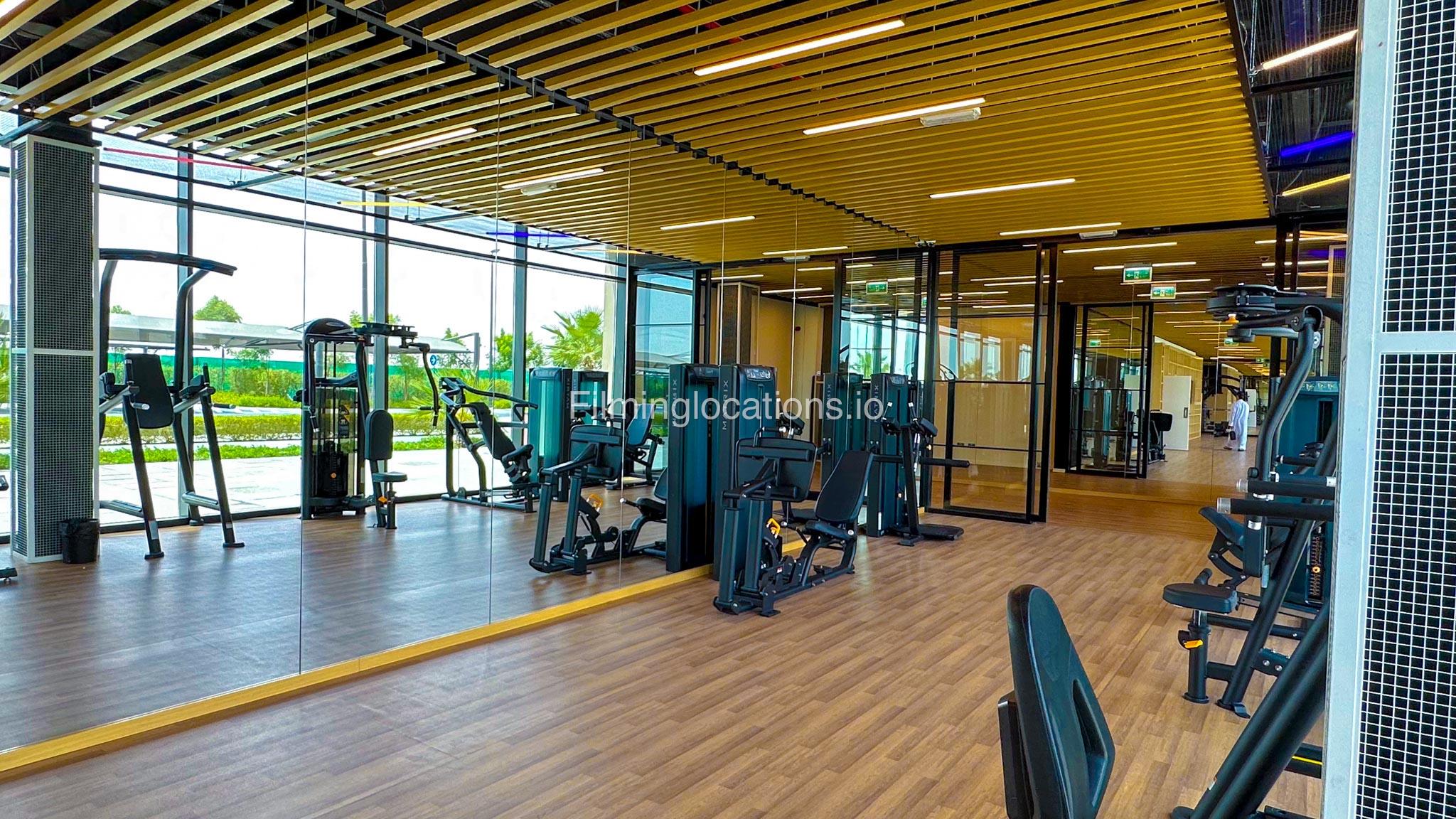 Our spacious Gym with Reception area is located in Sharjah. Spanning 185 sq.m., our facility offers an outdoor sitting area, shower cabins, and large fitness are fully equipment suitable for any size of production.