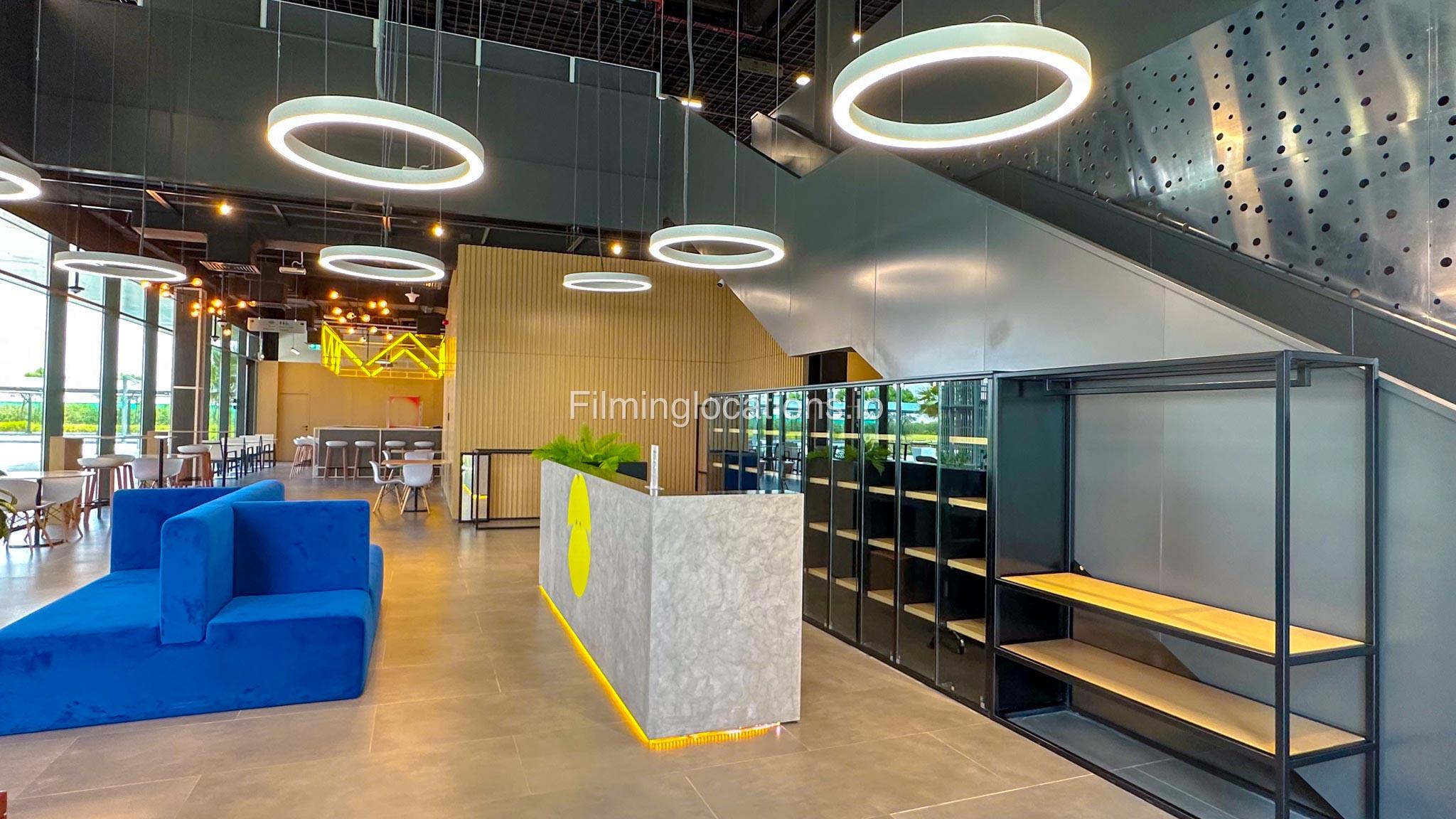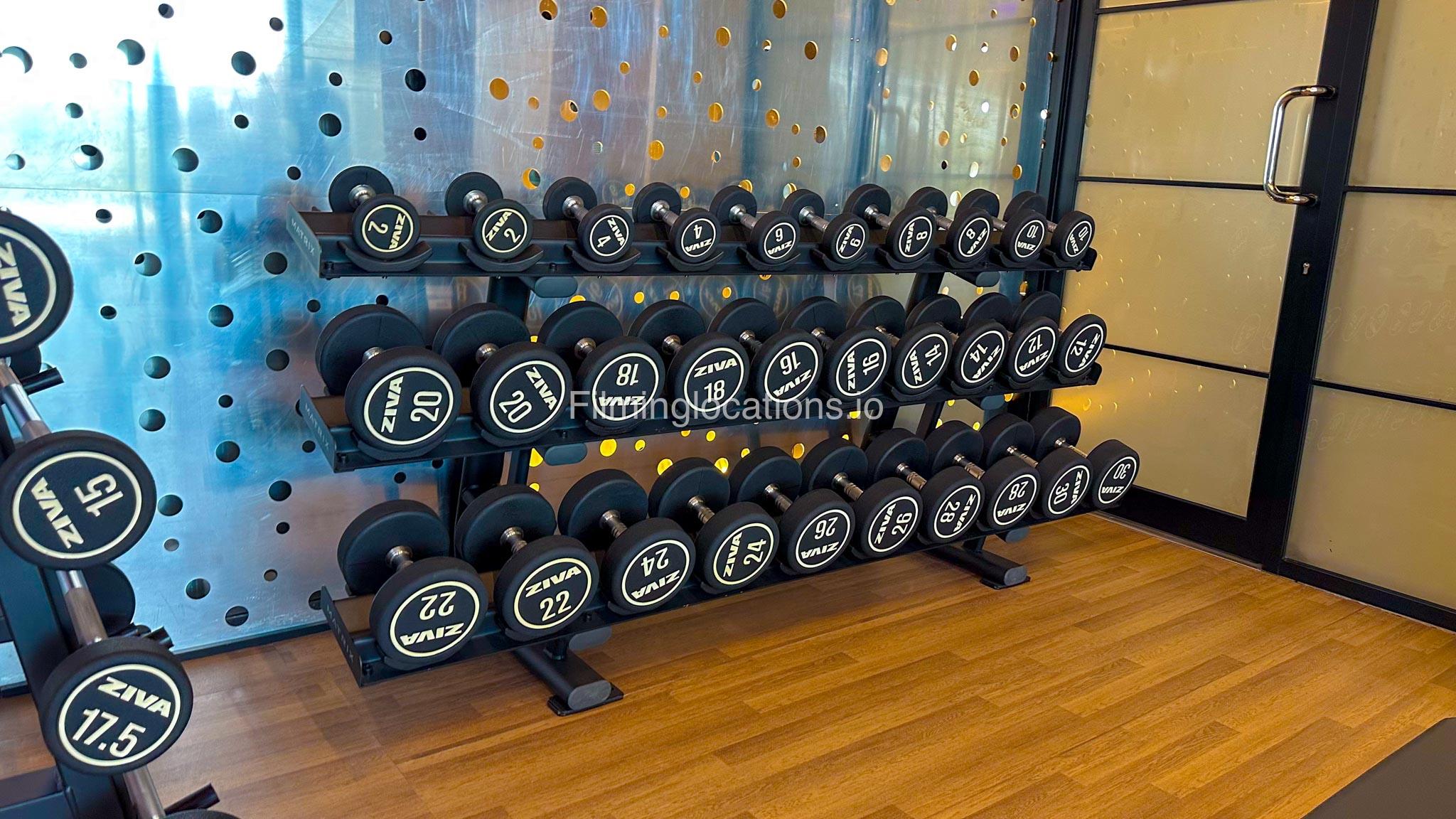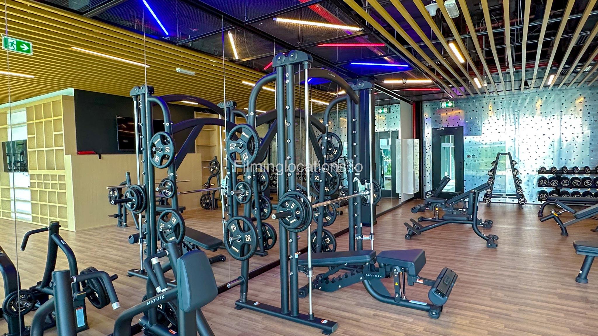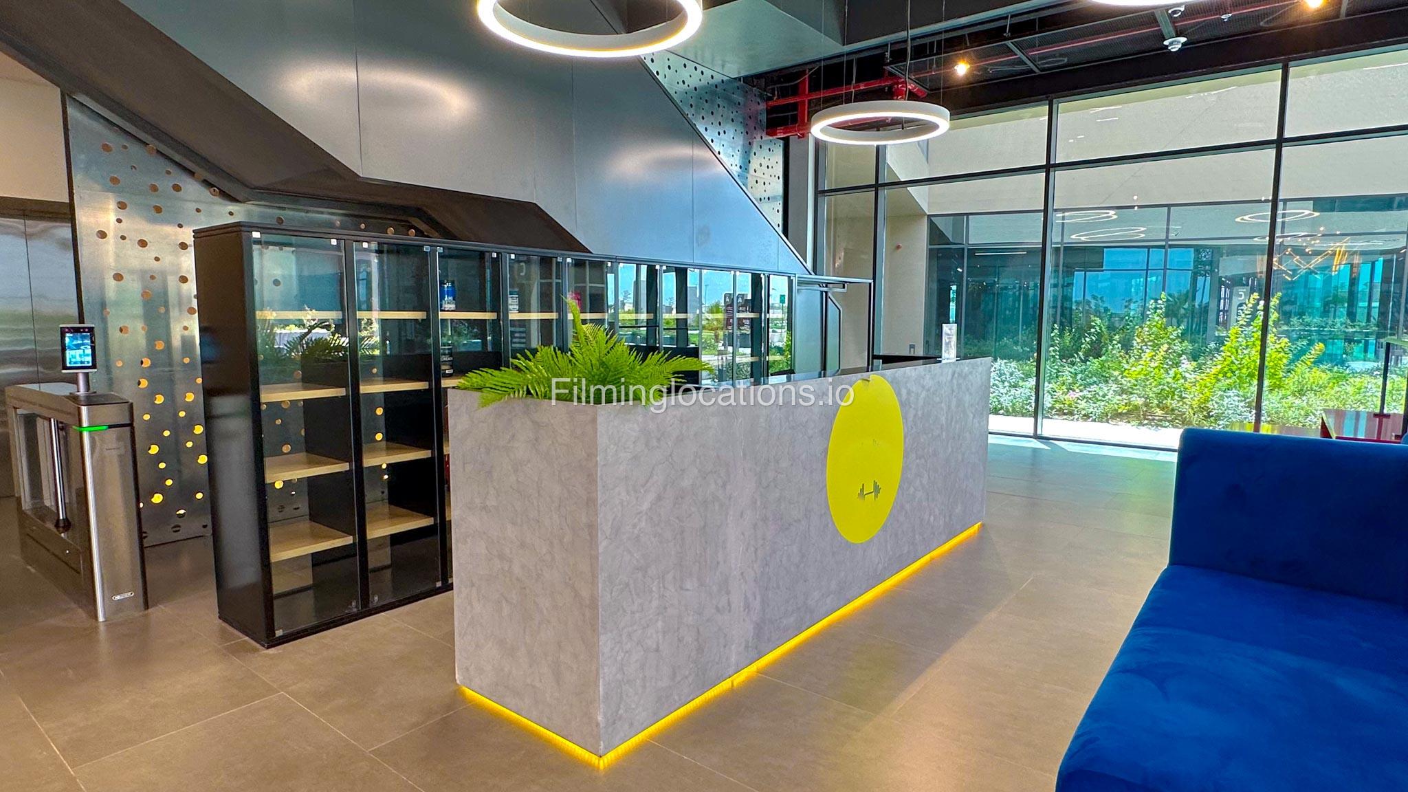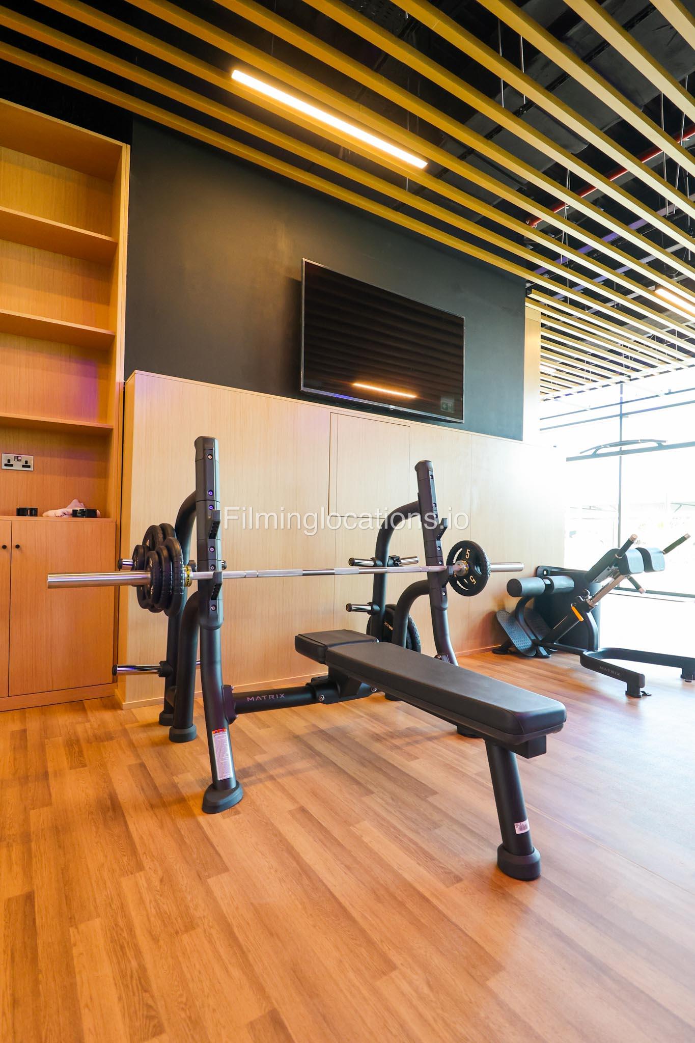 Our spacious Gym with Reception area is located in Sharjah. Spanning 185 sq.m., our facility offers an outdoor sitting area, shower cabins, and large fitness are fully equipment suitable for any size of production.