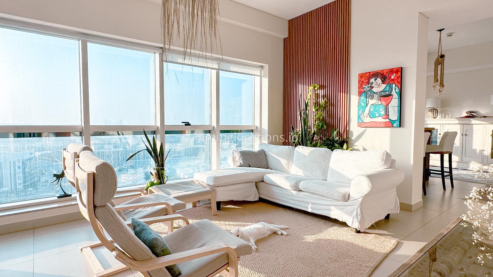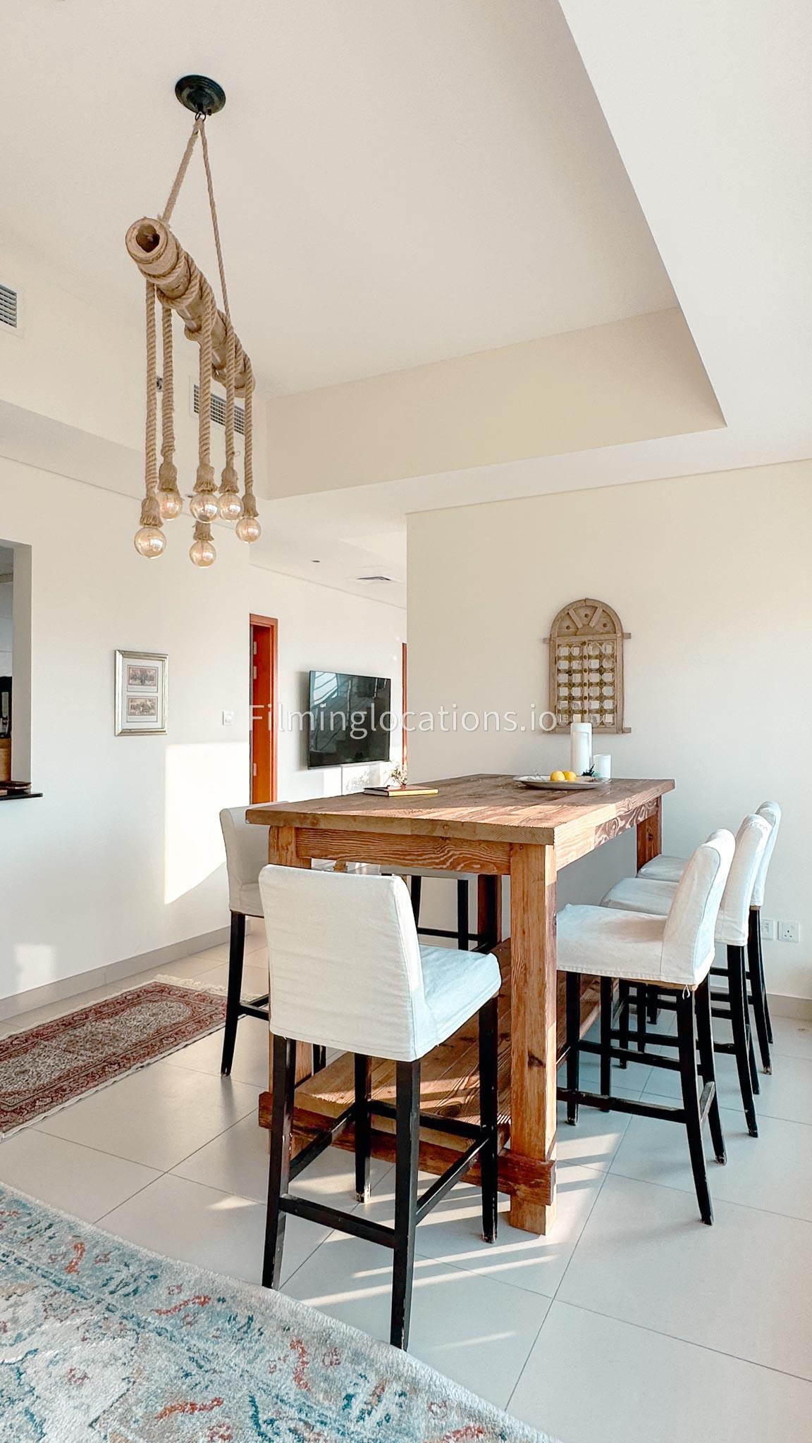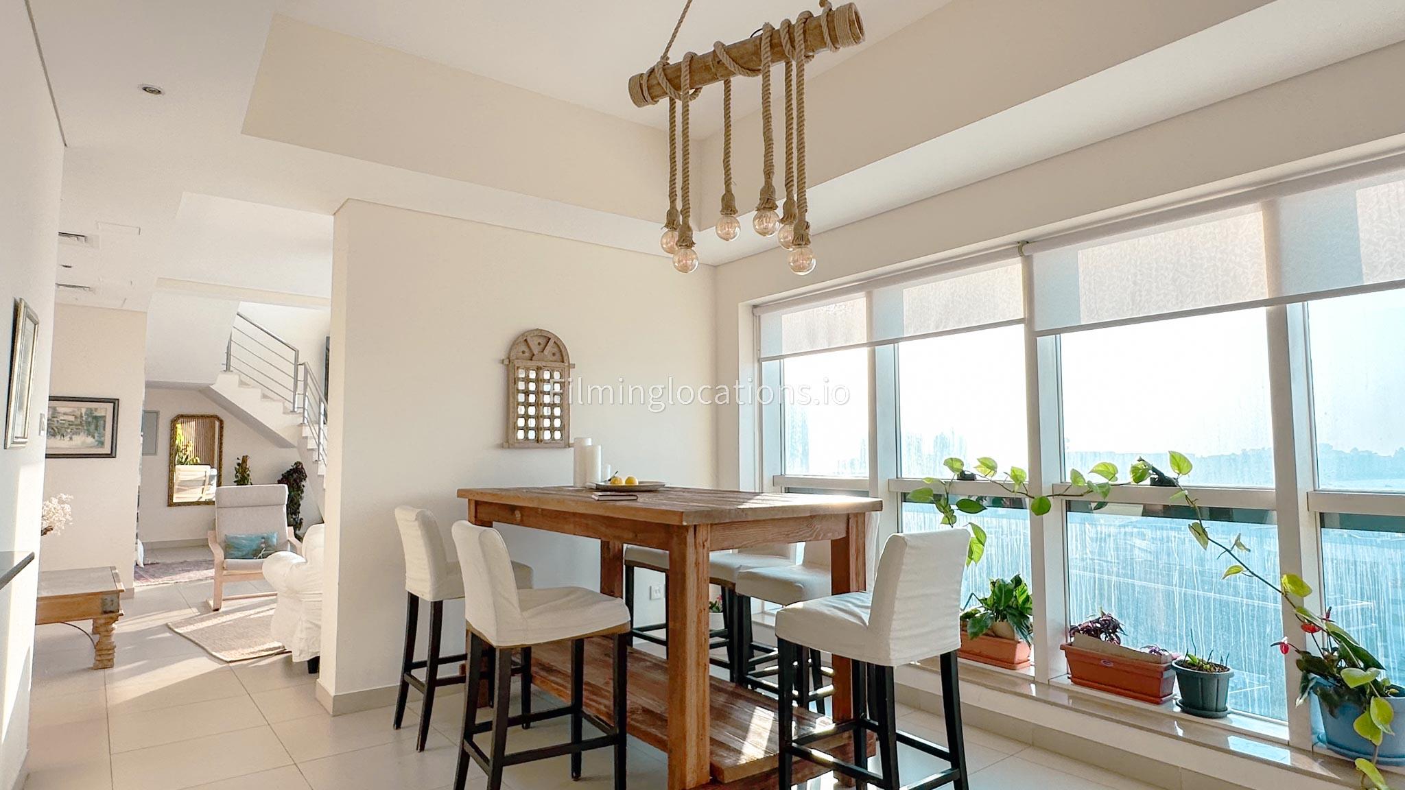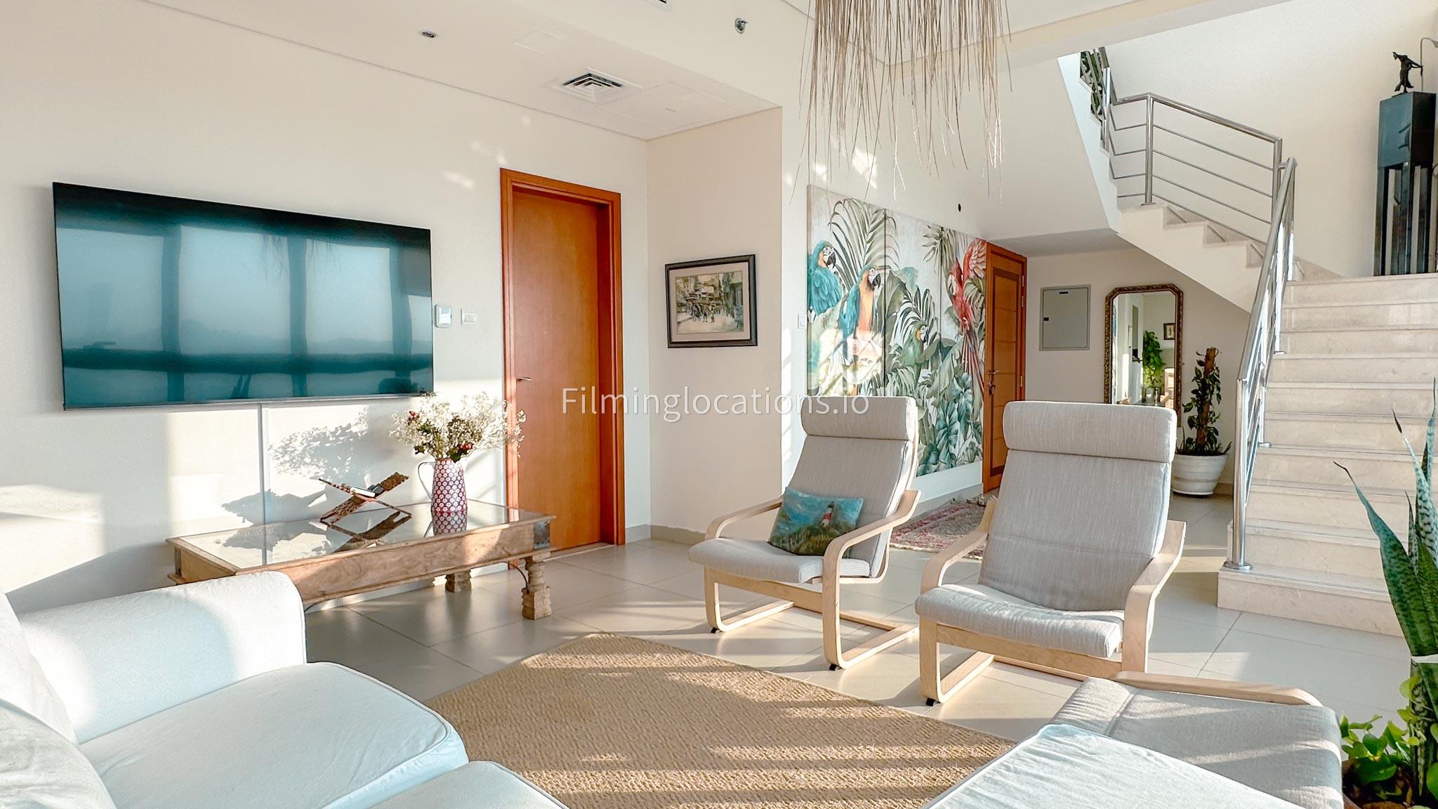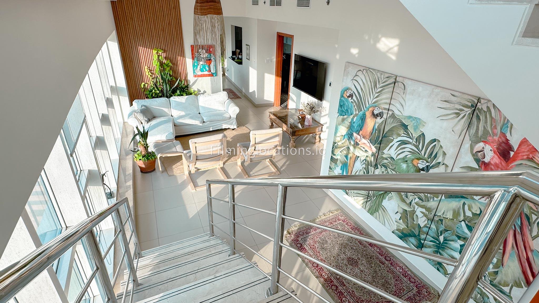 Our Apartment offers the splendor of an uninterrupted sea view overlooking the iconic Atlantis the Palm and the vibrant Marina. This property has a wide staircase, making a cinematic statement. The lounge exudes tranquility, perfect for reflective scenes. Adjacently, a dining room and kitchen offer versatile set possibilities. On the upper level, a spacious landing leads to a bedroom, each space crafted for visual allure.