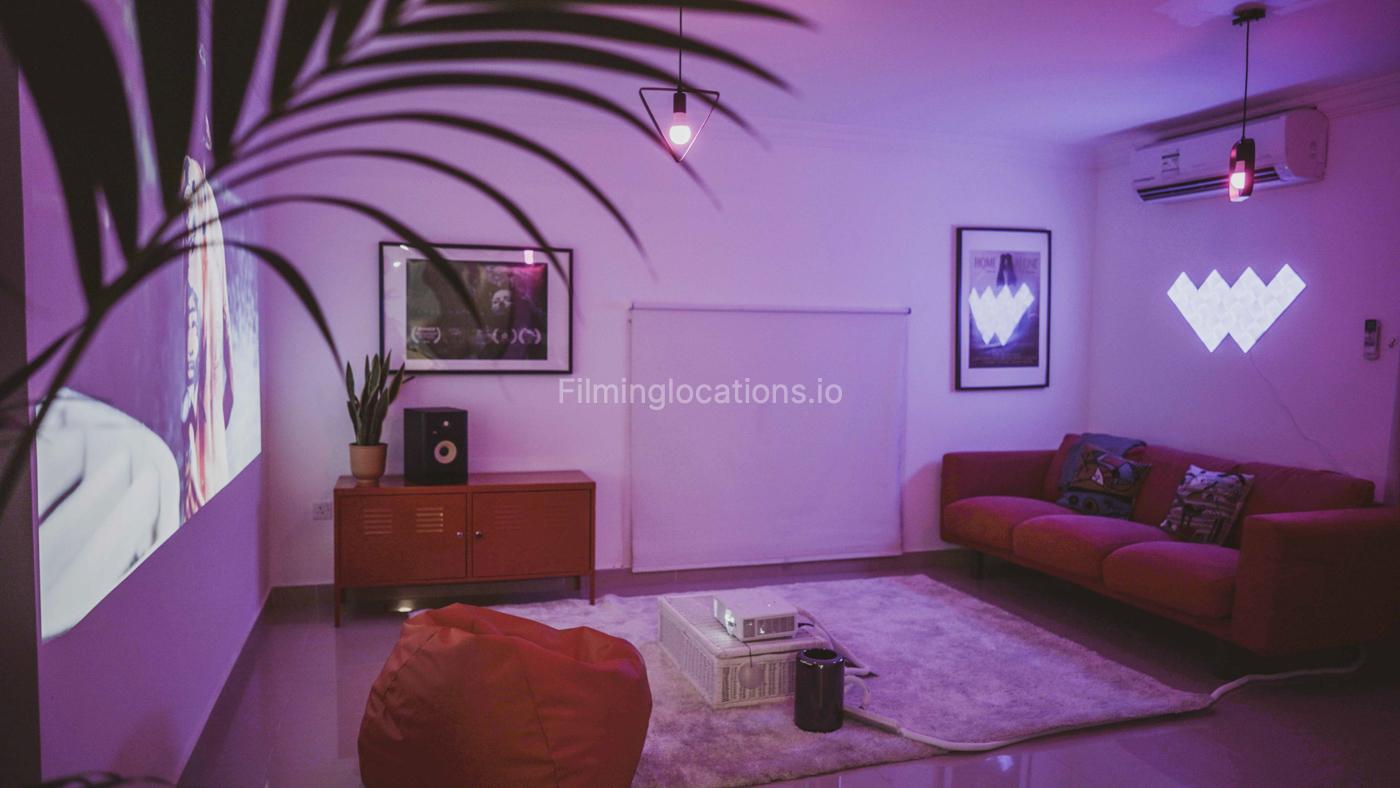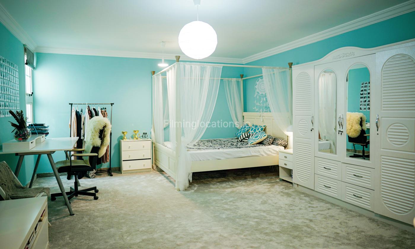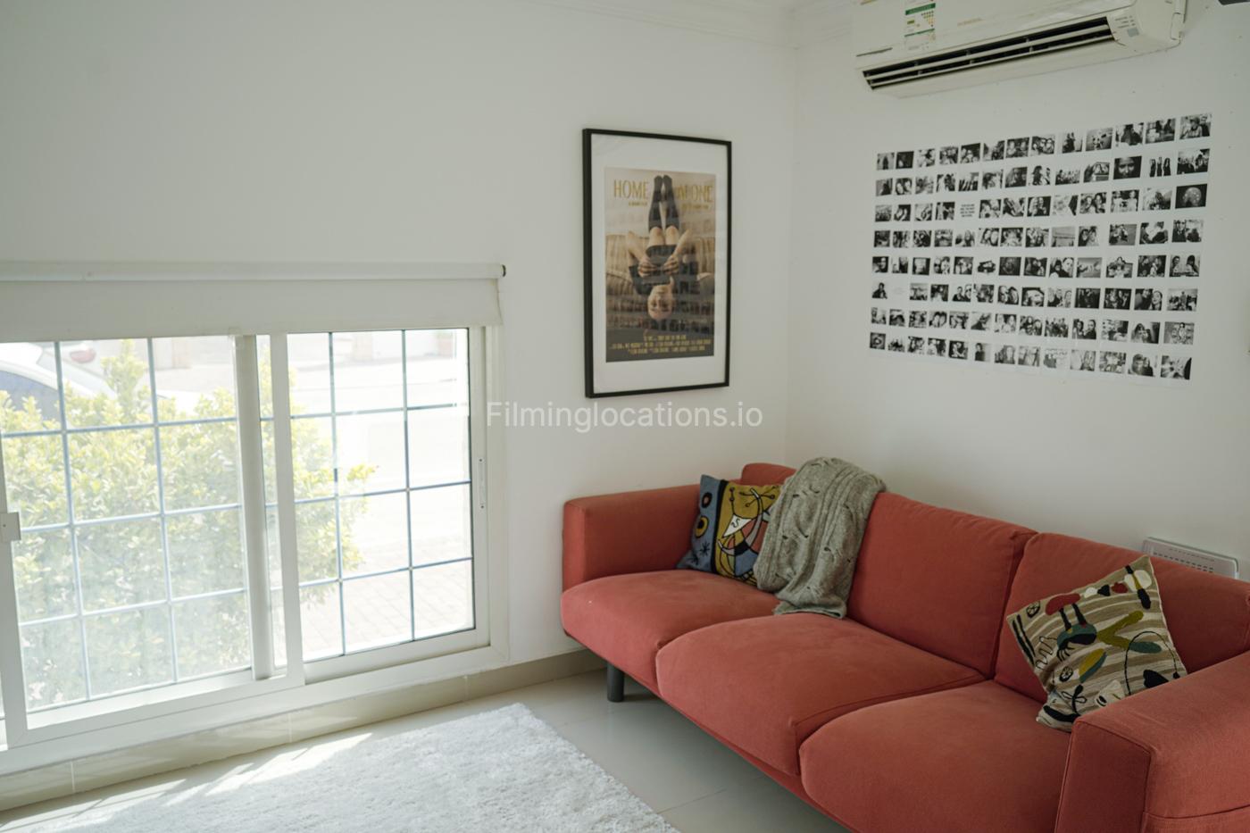 Beautiful villa in Jumeirah is perfect for a shoot with a medium or small crew. Located just a few steps from Kite Beach, the property has a small cozy garden, a living room, kitchen and 2 bedroom, all available for a shoot. There is a very small window in the big bedroom, with only little of natural light. A living room has a bright projector and a sofa. The windows situated below normal and has roller blinds.