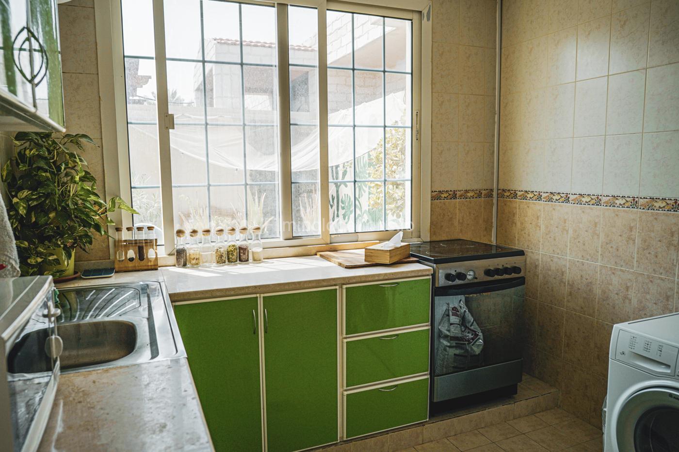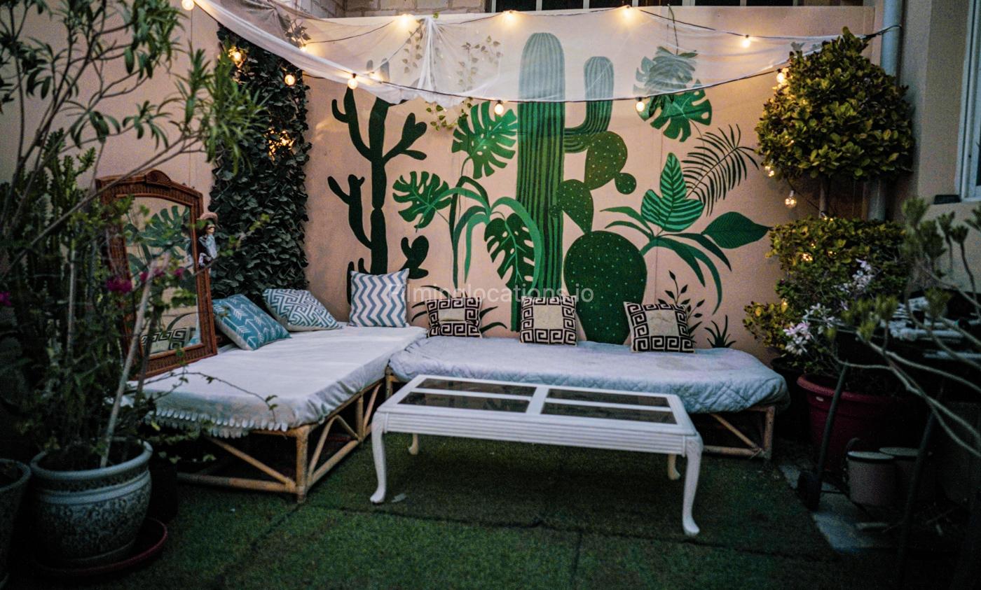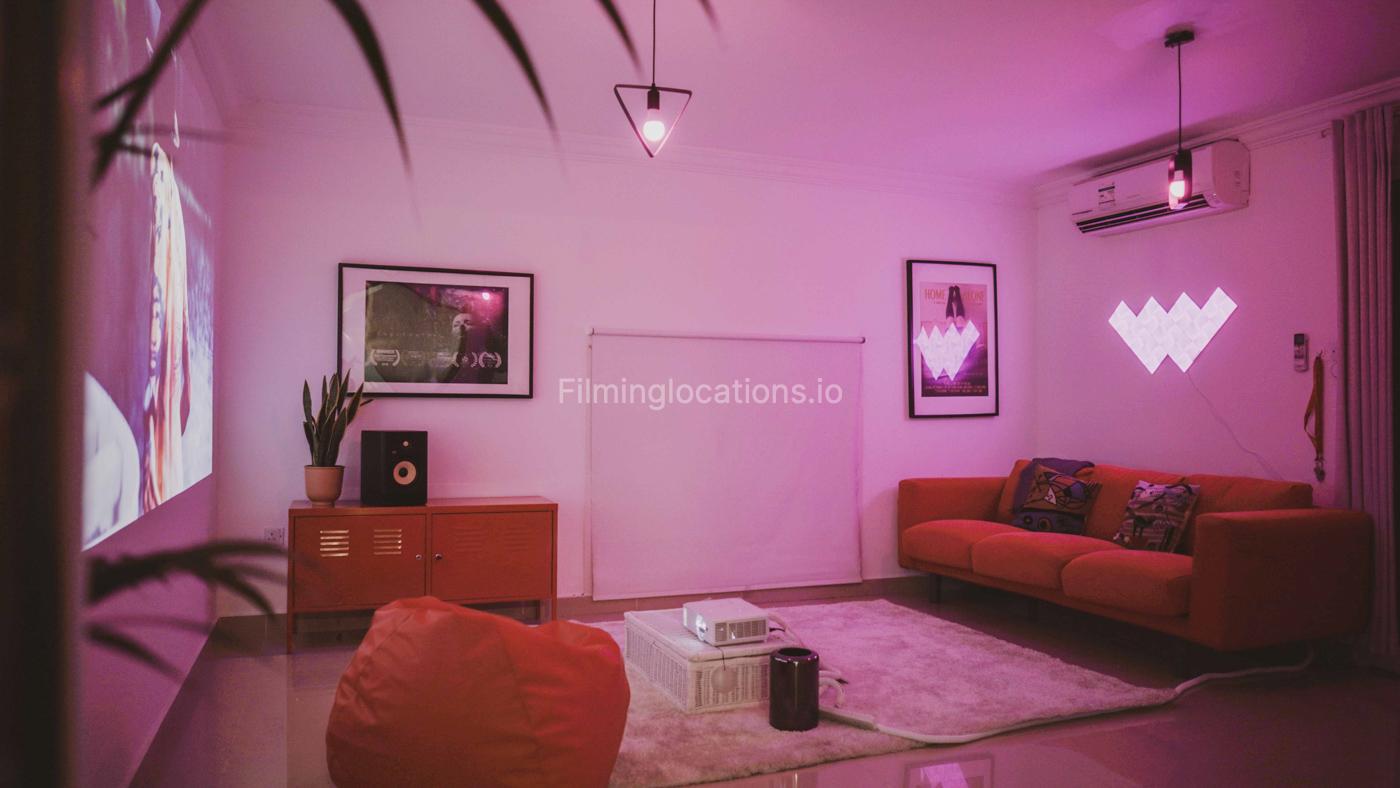 Beautiful villa in Jumeirah is perfect for a shoot with a medium or small crew. Located just a few steps from Kite Beach, the property has a small cozy garden, a living room, kitchen and 2 bedroom, all available for a shoot. There is a very small window in the big bedroom, with only little of natural light. A living room has a bright projector and a sofa. The windows situated below normal and has roller blinds.