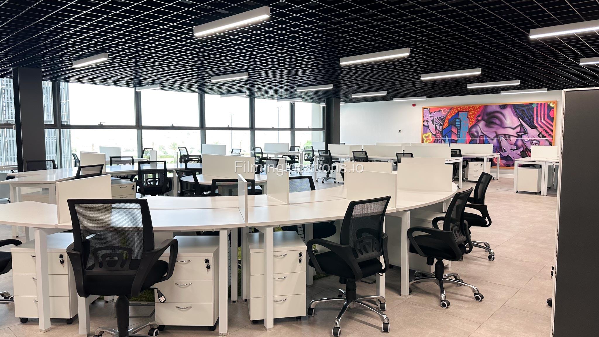 Our office has a capacious open layout encompassing cubicles, partitions, sitting areas and soundproof individual meeting pods. It offers abundant room for mobility and features various kinds of office furniture. Additionally, there are cutting-edge card/face readers around the office, if required. Furthermore, the space includes a closed balcony/bridge.