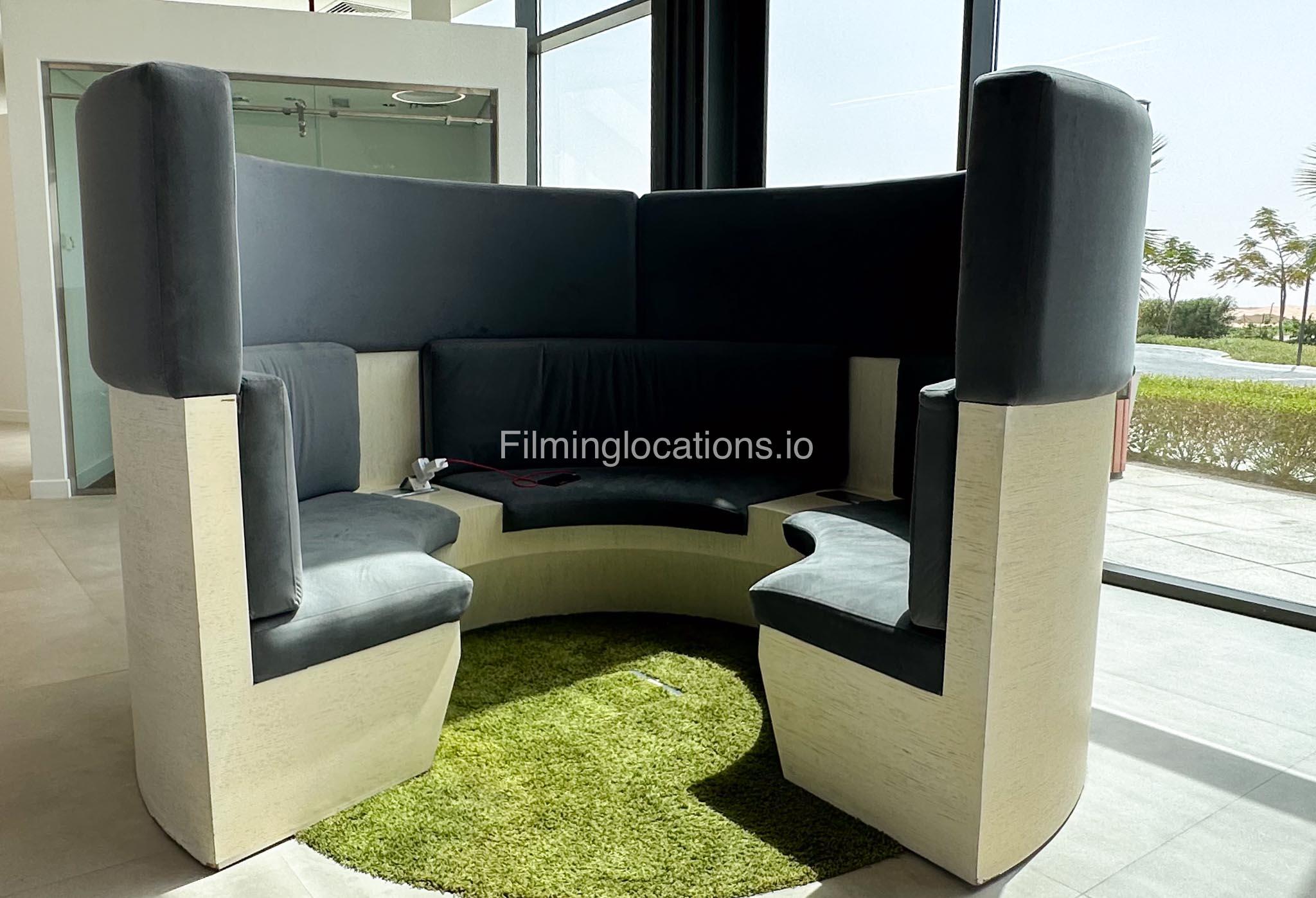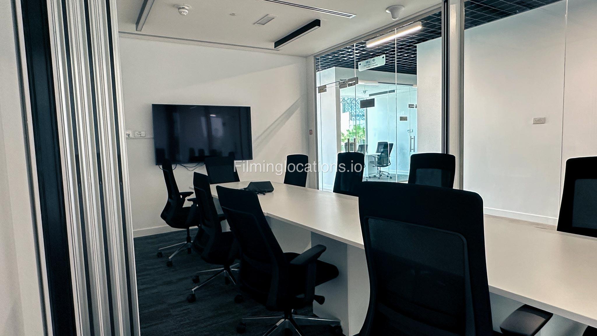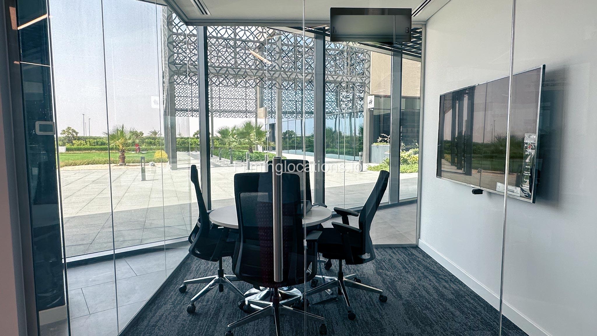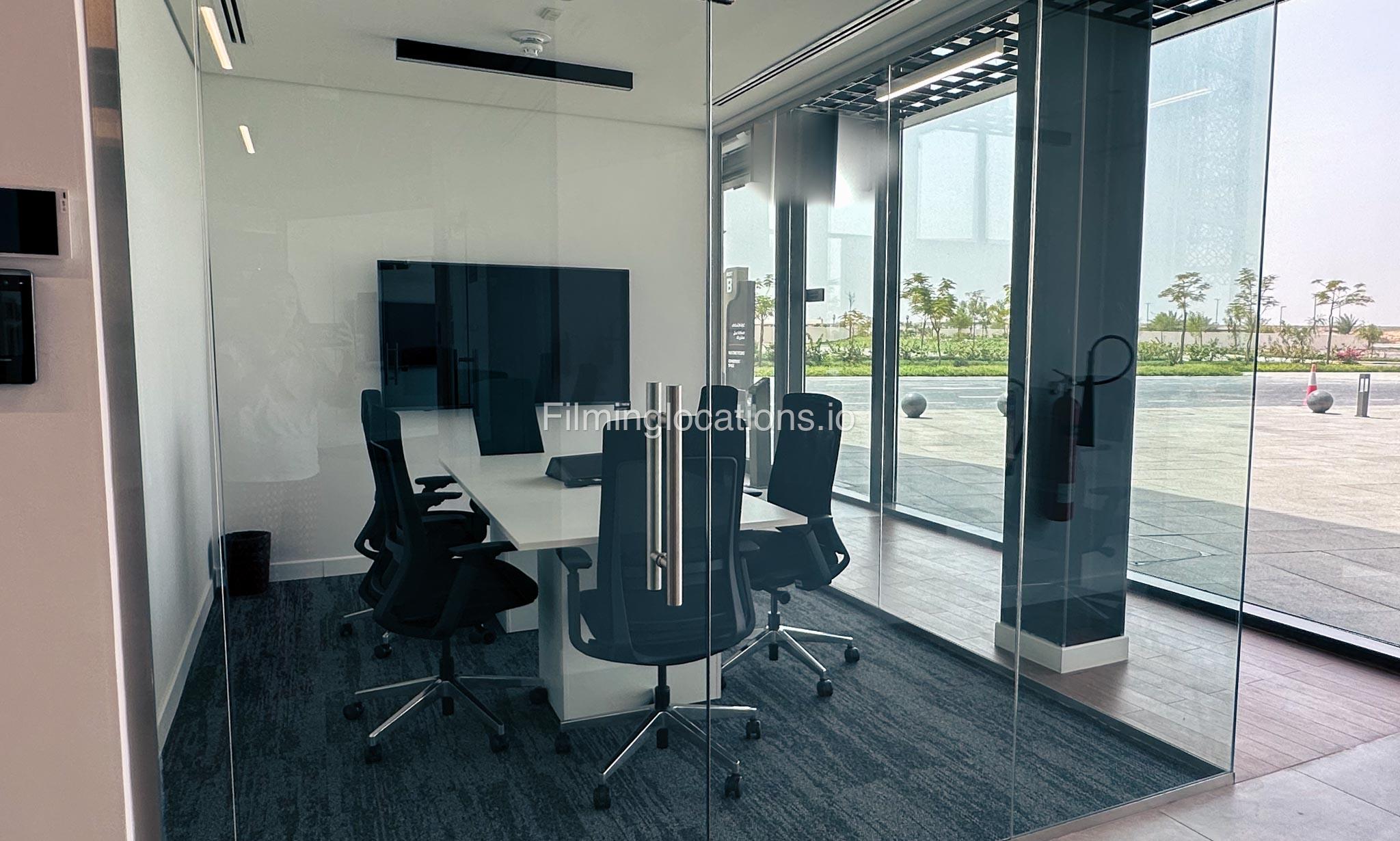 Our office has a reception, various seating areas, and meeting rooms of different sizes. Each meeting room has a table, chairs and a UHD television screen. The small meeting rooms can accommodate up to 4 people and the big meeting rooms can accommodate up to 8 people. Additionally, there are cutting-edge card/face readers around the office, if required.