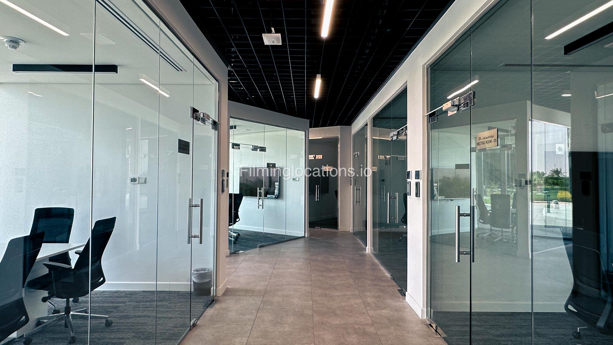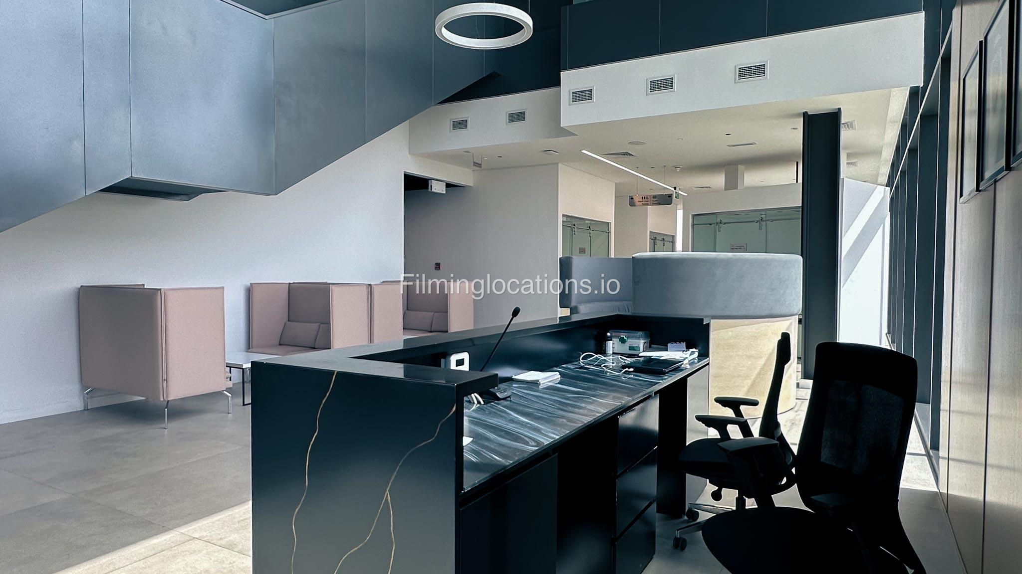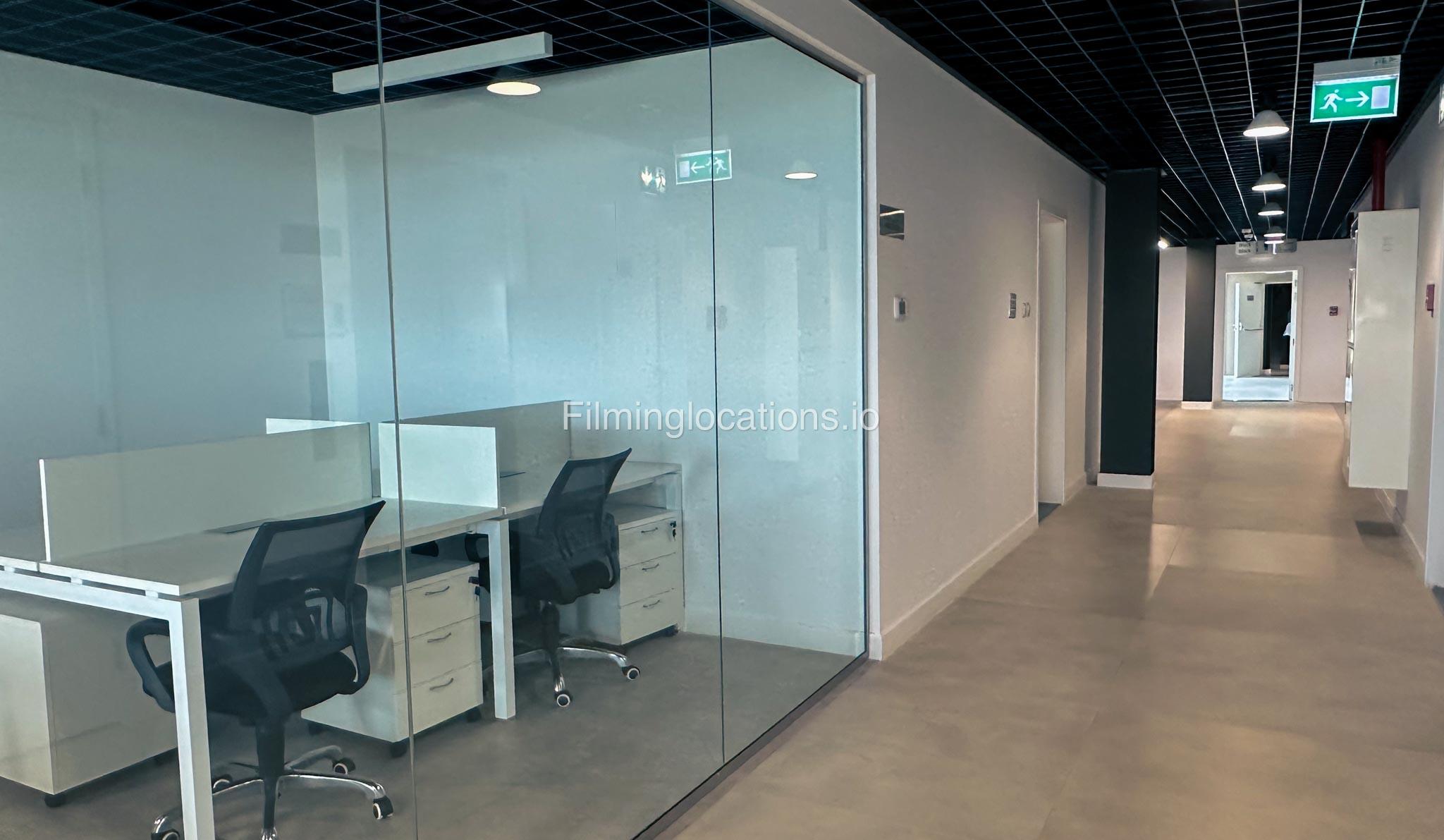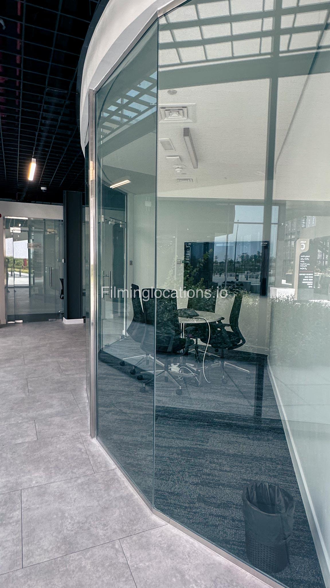 Our office has a reception, various seating areas, and meeting rooms of different sizes. Each meeting room has a table, chairs and a UHD television screen. The small meeting rooms can accommodate up to 4 people and the big meeting rooms can accommodate up to 8 people. Additionally, there are cutting-edge card/face readers around the office, if required.
