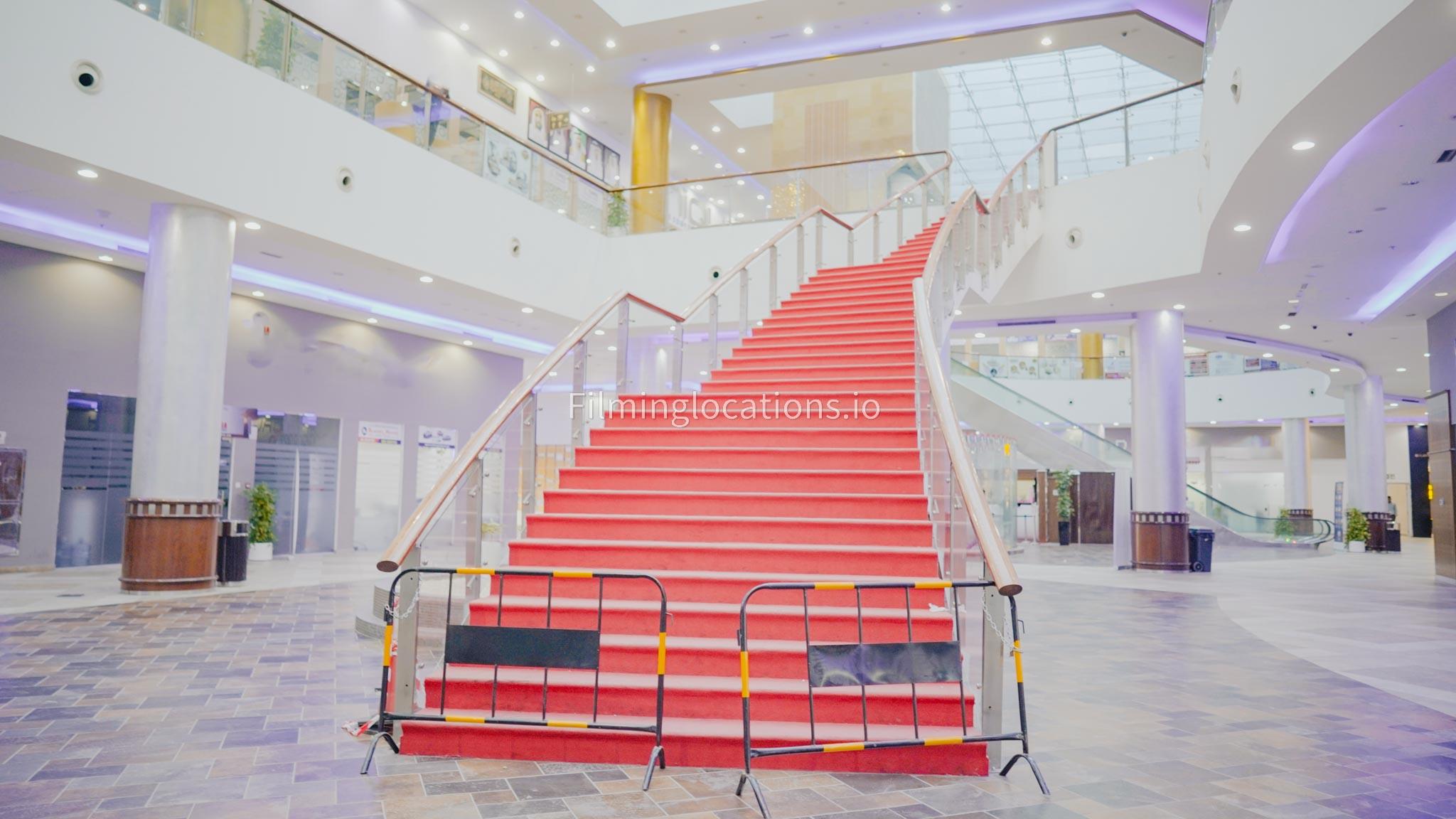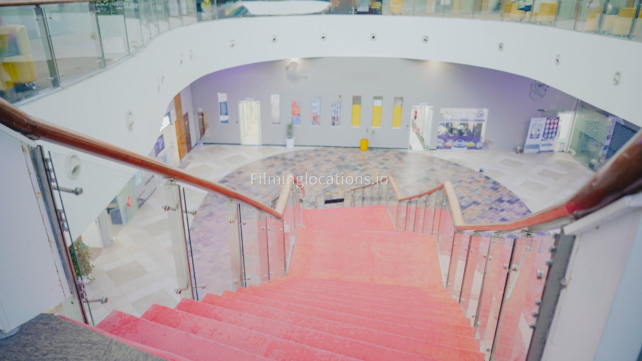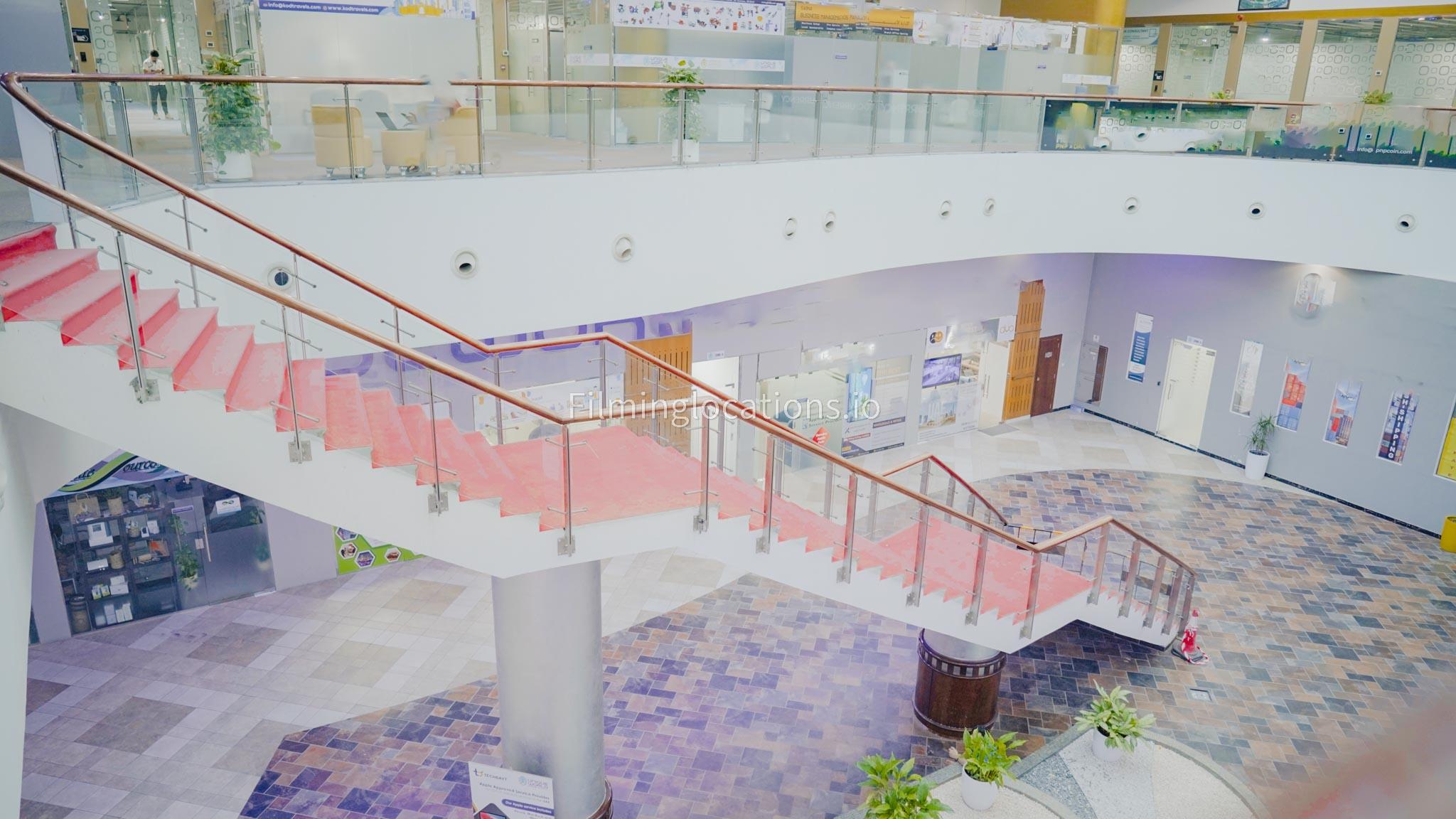 Our office reception space features a beautiful and spacious layout with a set of grand red stairs leading to the top floor, perfect for photoshoots. The space is also equipped with elevators and escalators. The top floor is naturally well lit due to the elegant skylights and we also provide a variety of sitting areas.