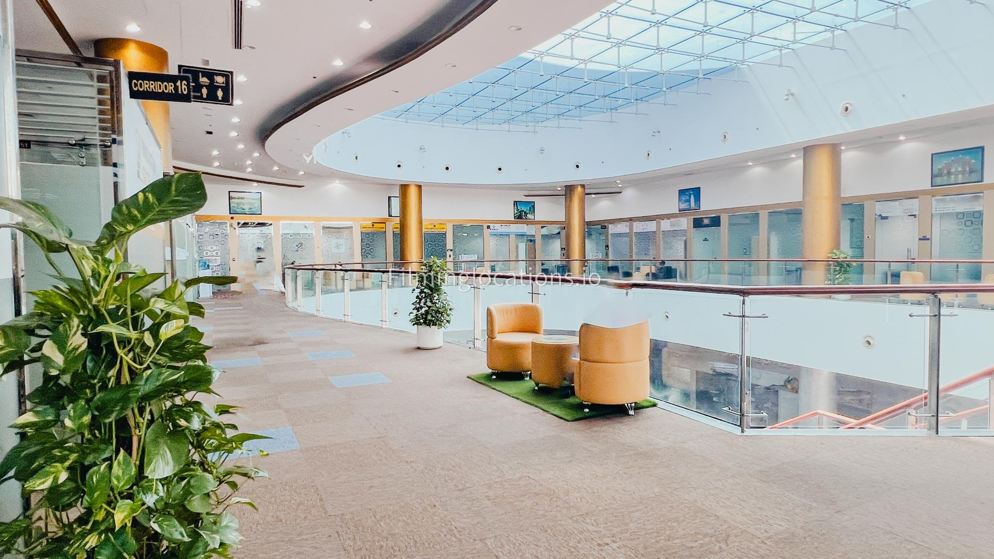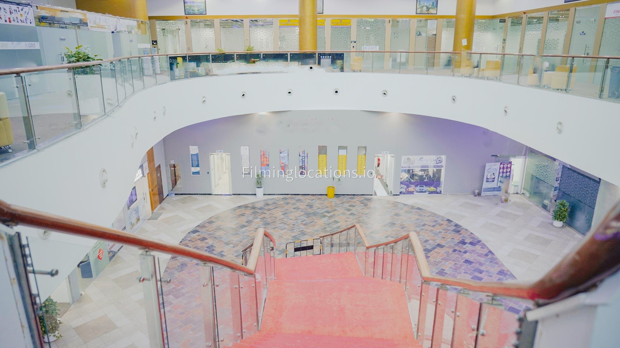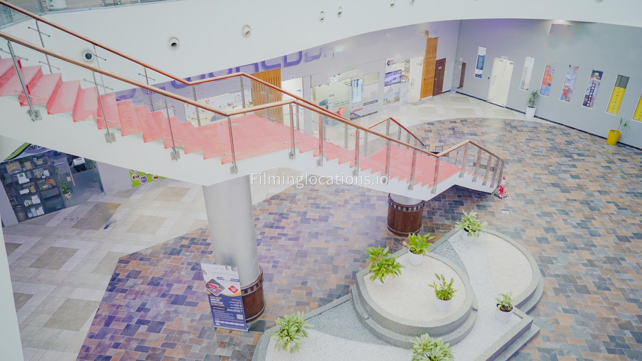 Our office reception space features a beautiful and spacious layout with a set of grand red stairs leading to the top floor, perfect for photoshoots. The space is also equipped with elevators and escalators. The top floor is naturally well lit due to the elegant skylights and we also provide a variety of sitting areas.