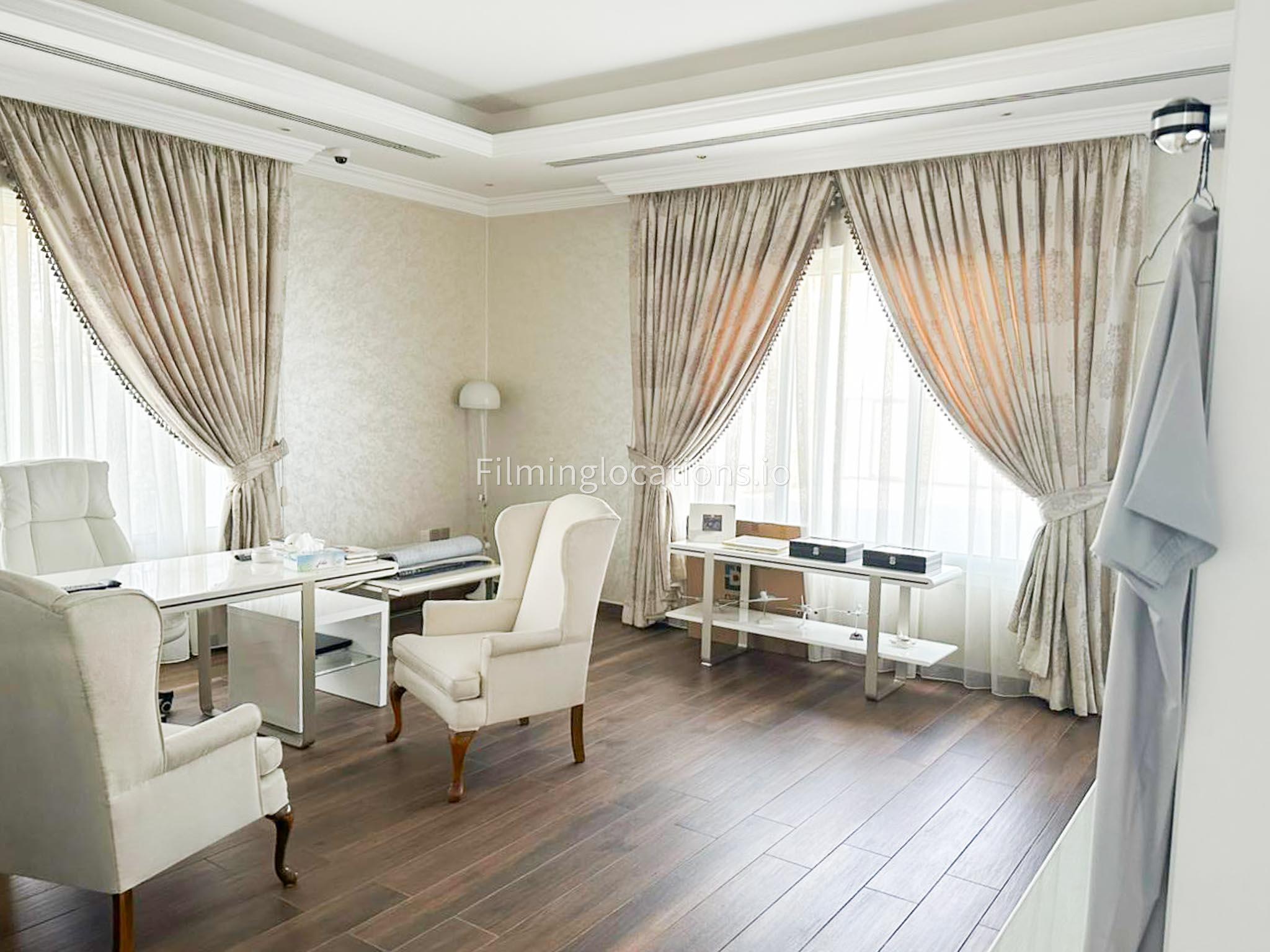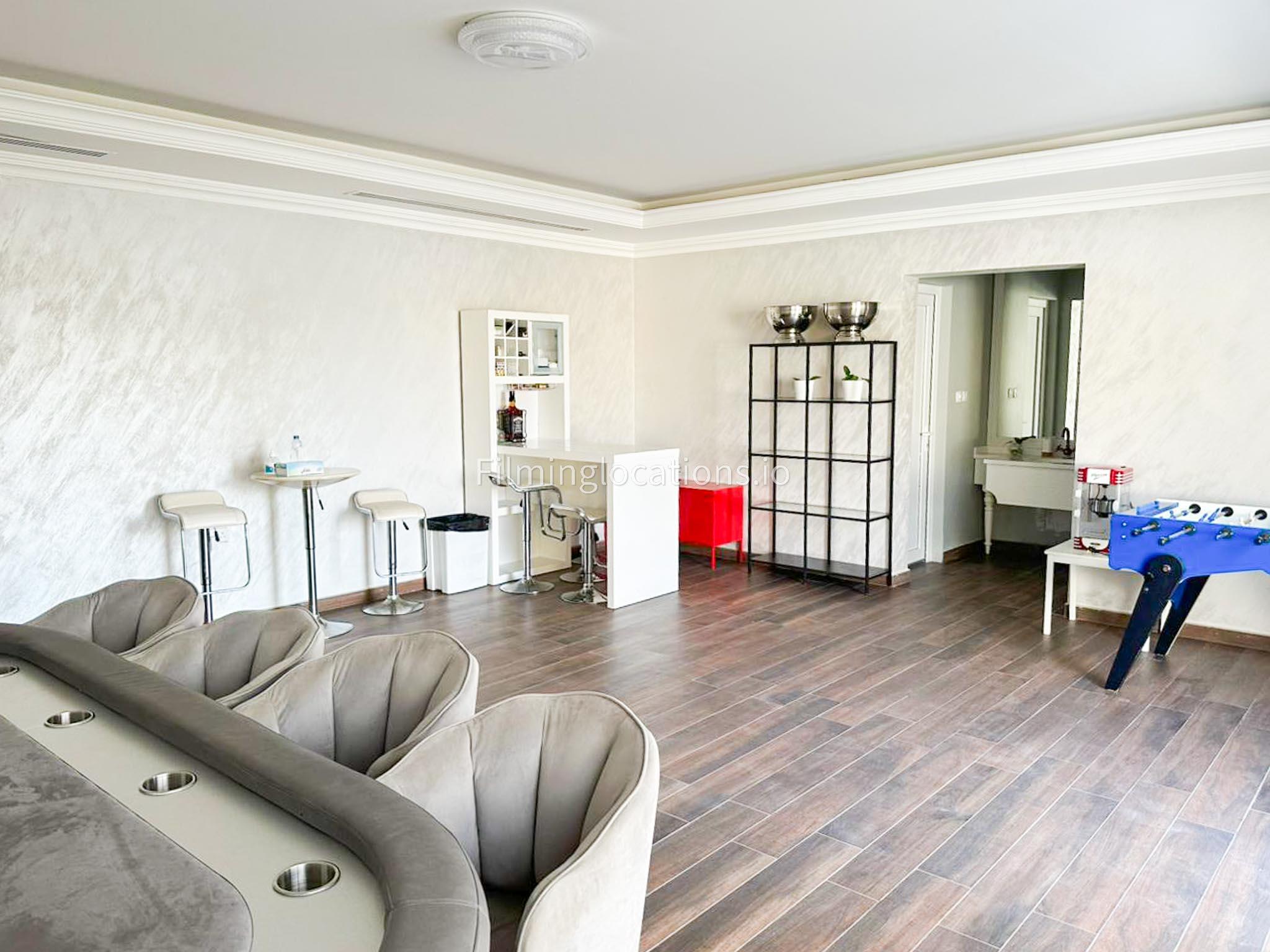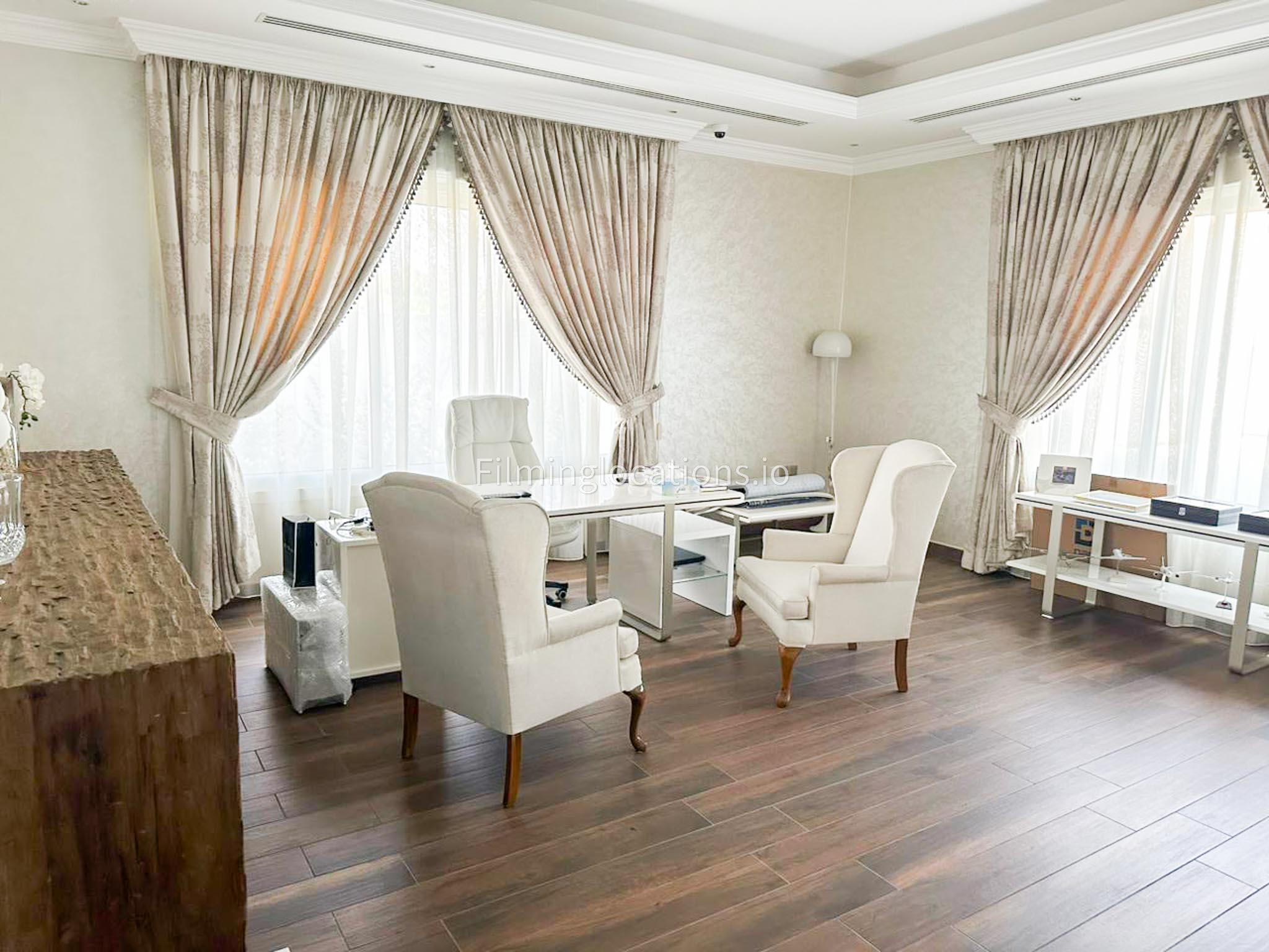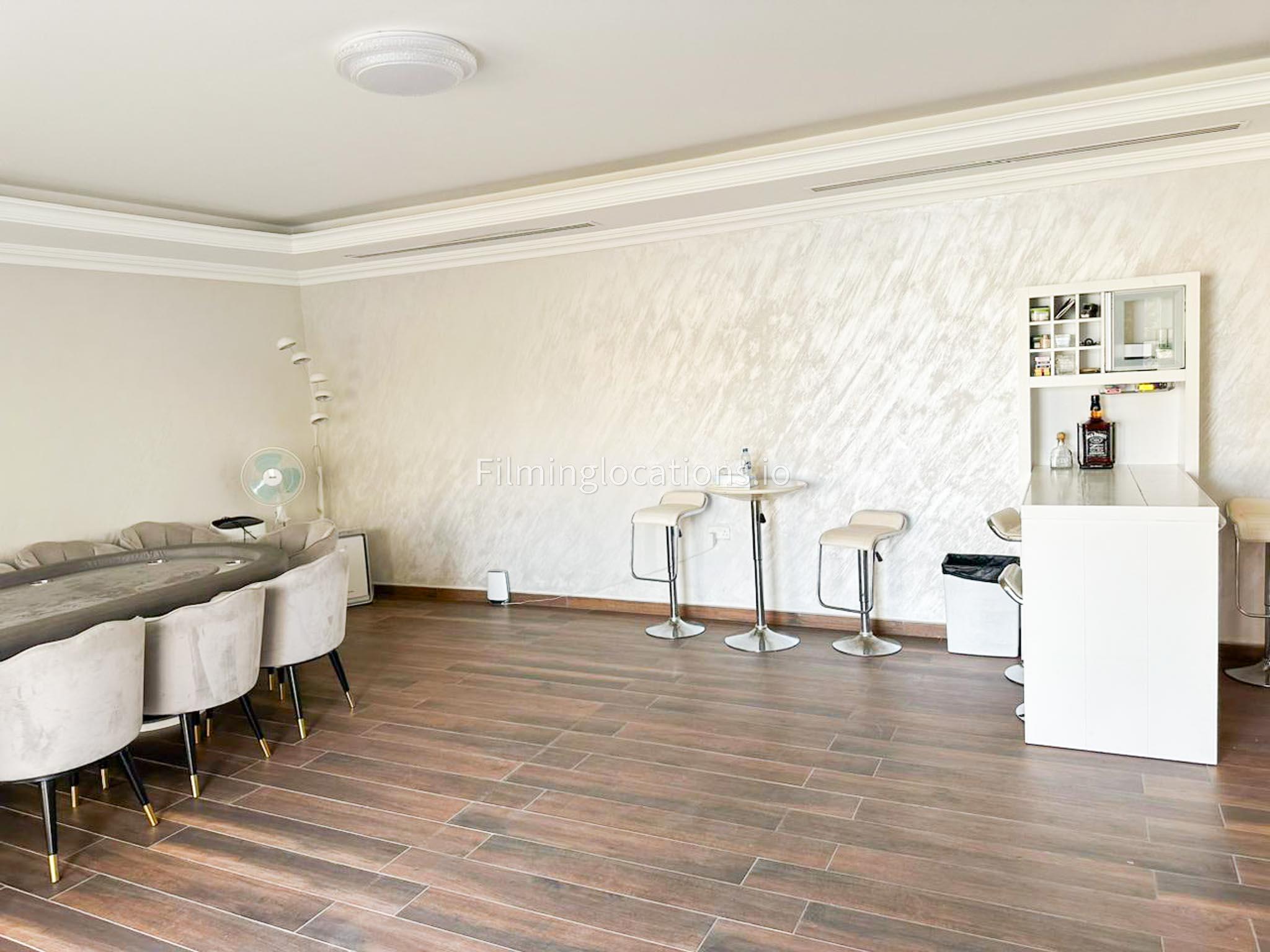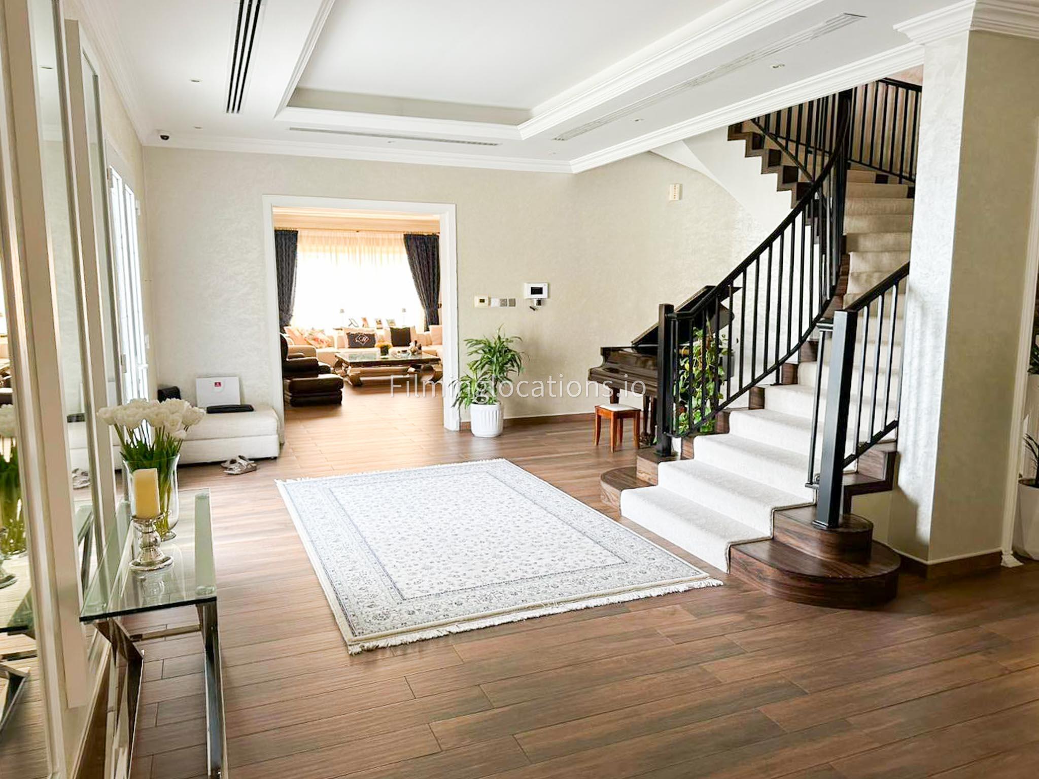 Our villa boasts a stunning two-story design featuring a beautifully adorned living room, a lovely dinning area, an elegant staircase, and a sophisticated grand piano that adds a touch of refinement to the space. Additionally, the sunlit kitchen with its charming island adds to the overall appeal. Outside, we have a delightful outdoor seating area, making it an ideal setting for outdoor shoot sessions.