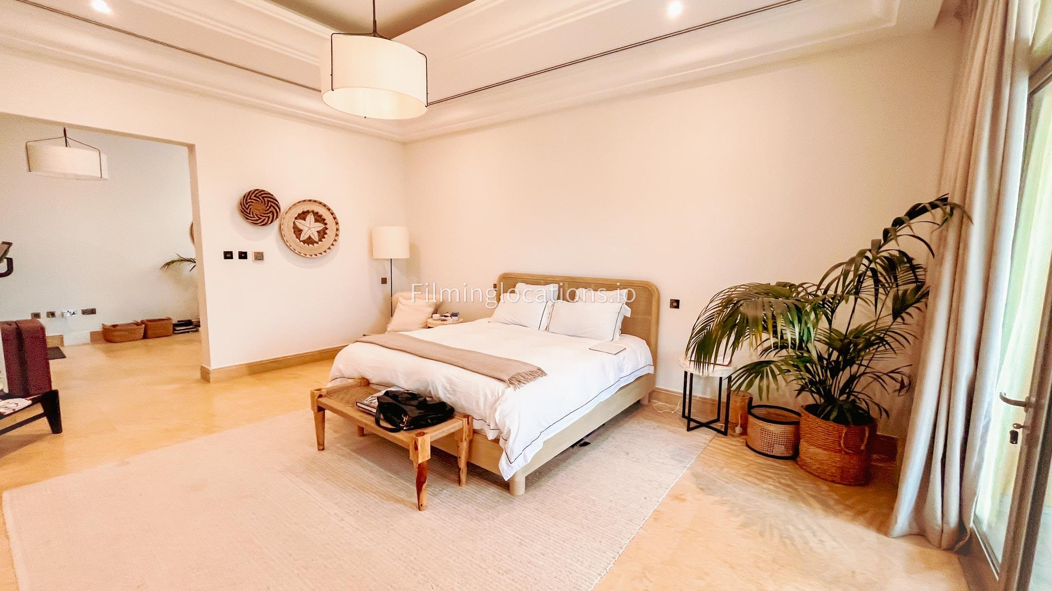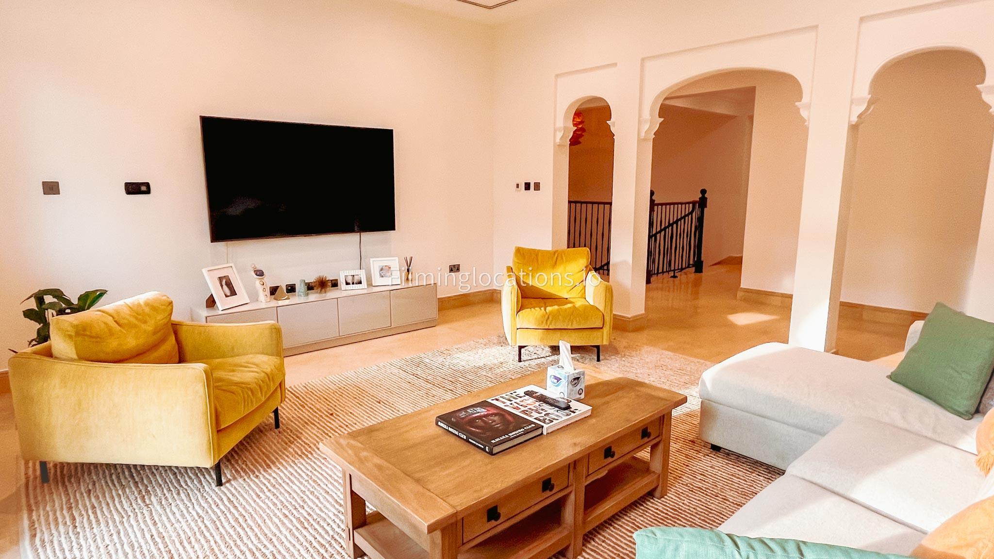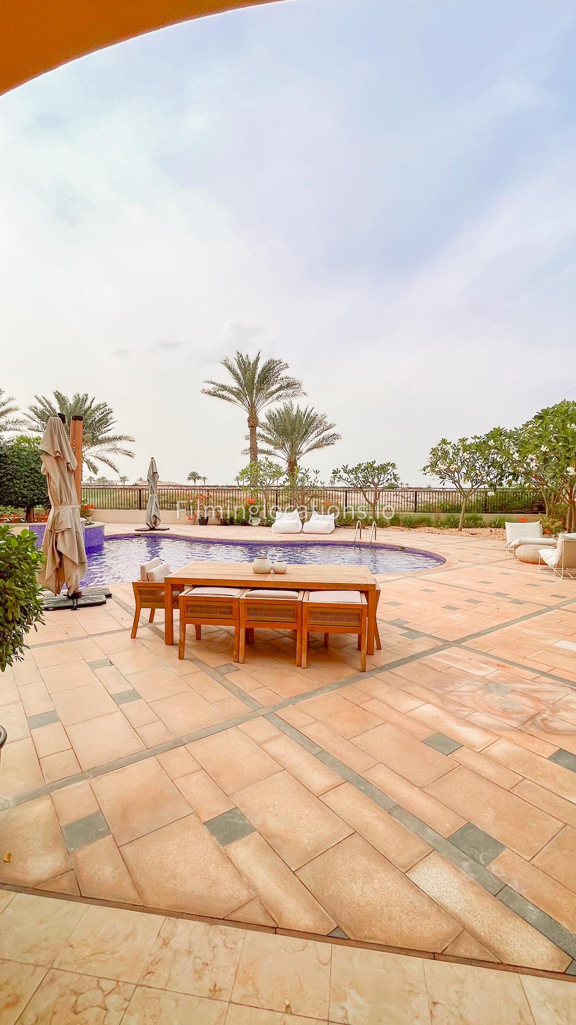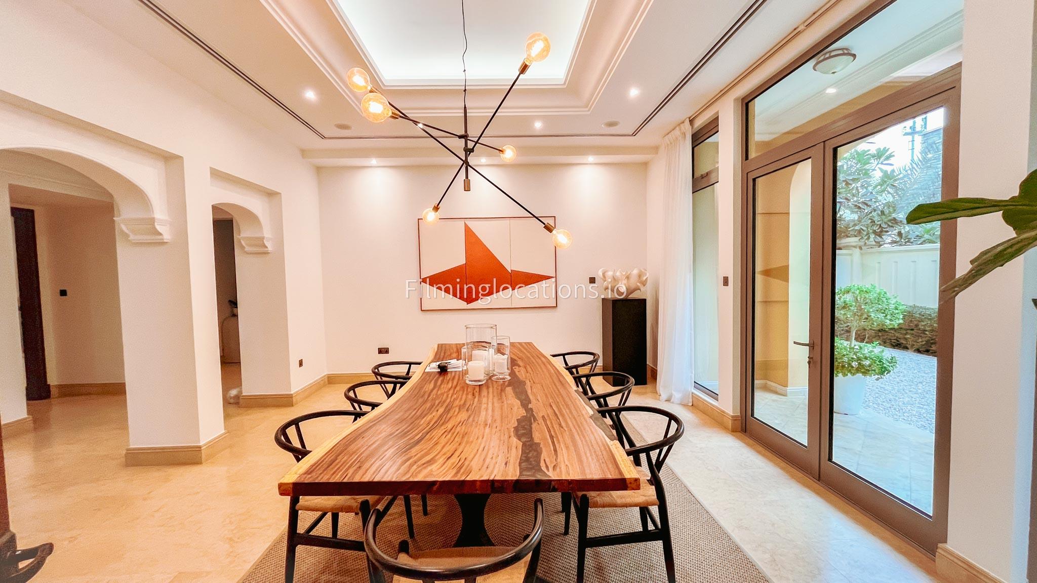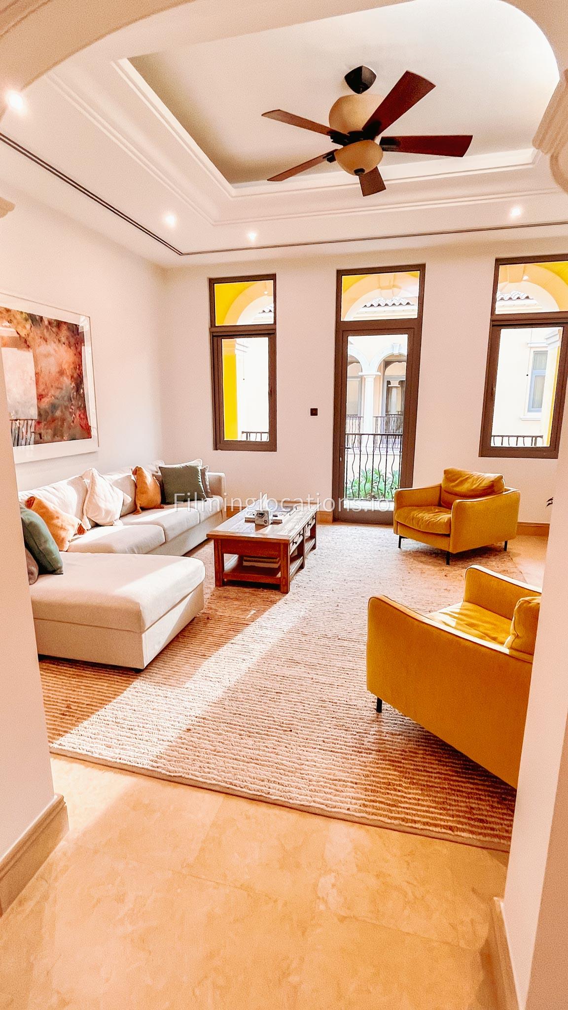 Our villa, located on Saadiyat Island, offers a delightful view of the golf course. It features five bedrooms, including two Kids rooms. The living room is elegantly decorated with artwork, furniture, and full-length mirrors. Additionally, there's a stunning backyard complete with a pristine pool and an outdoor seating area, all enveloped by lush greenery, making it an ideal setting for outdoor photography or film shoots. The kitchen is fully equipped, featuring an island, while the dining room emanates a tranquil atmosphere. The entire space is well-lit and exudes a peaceful ambiance