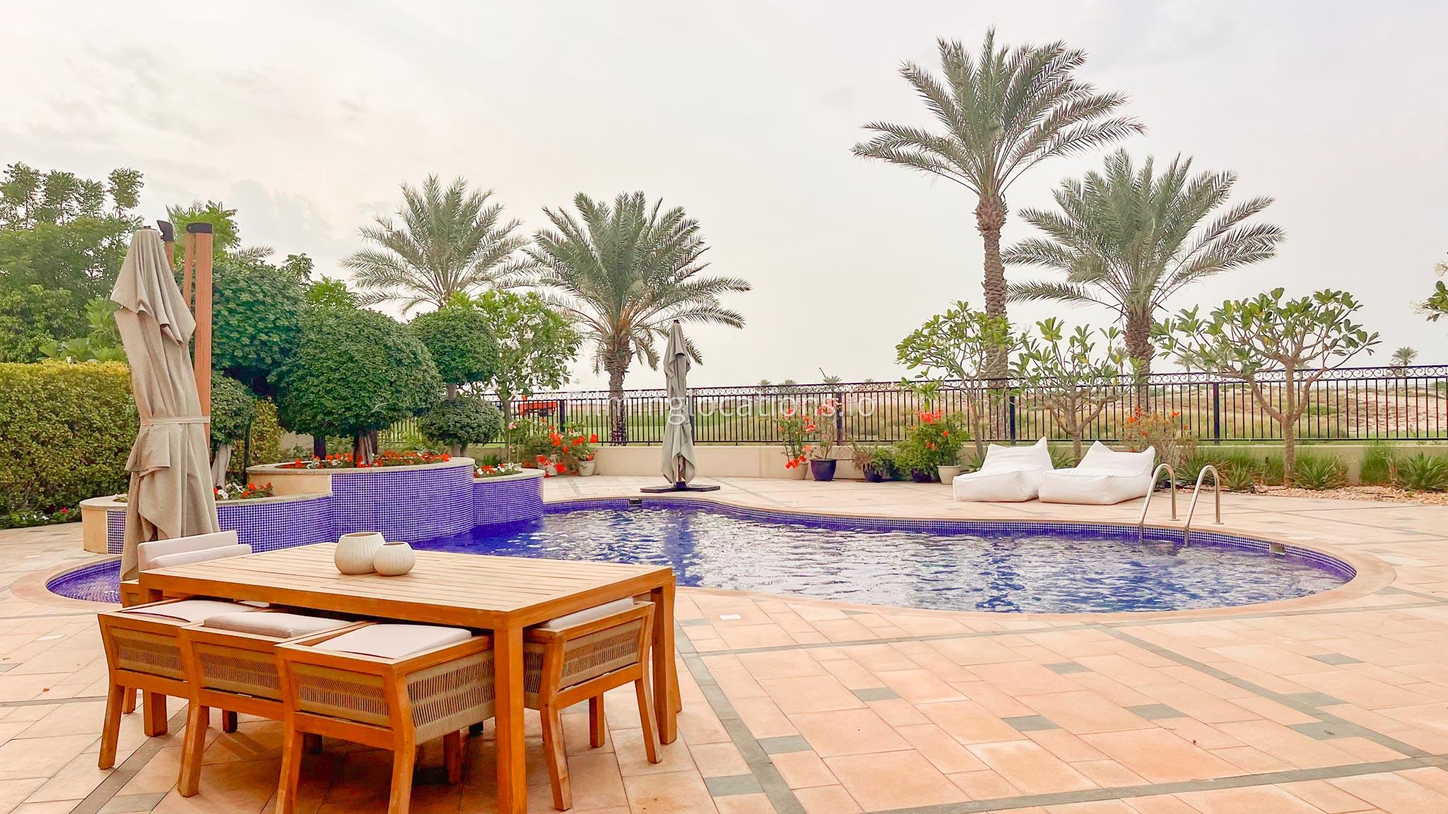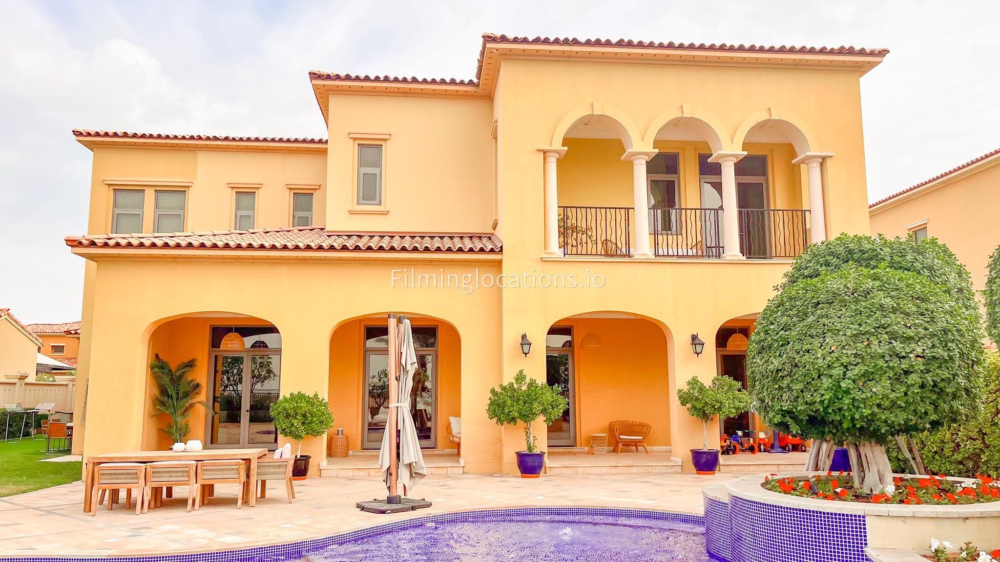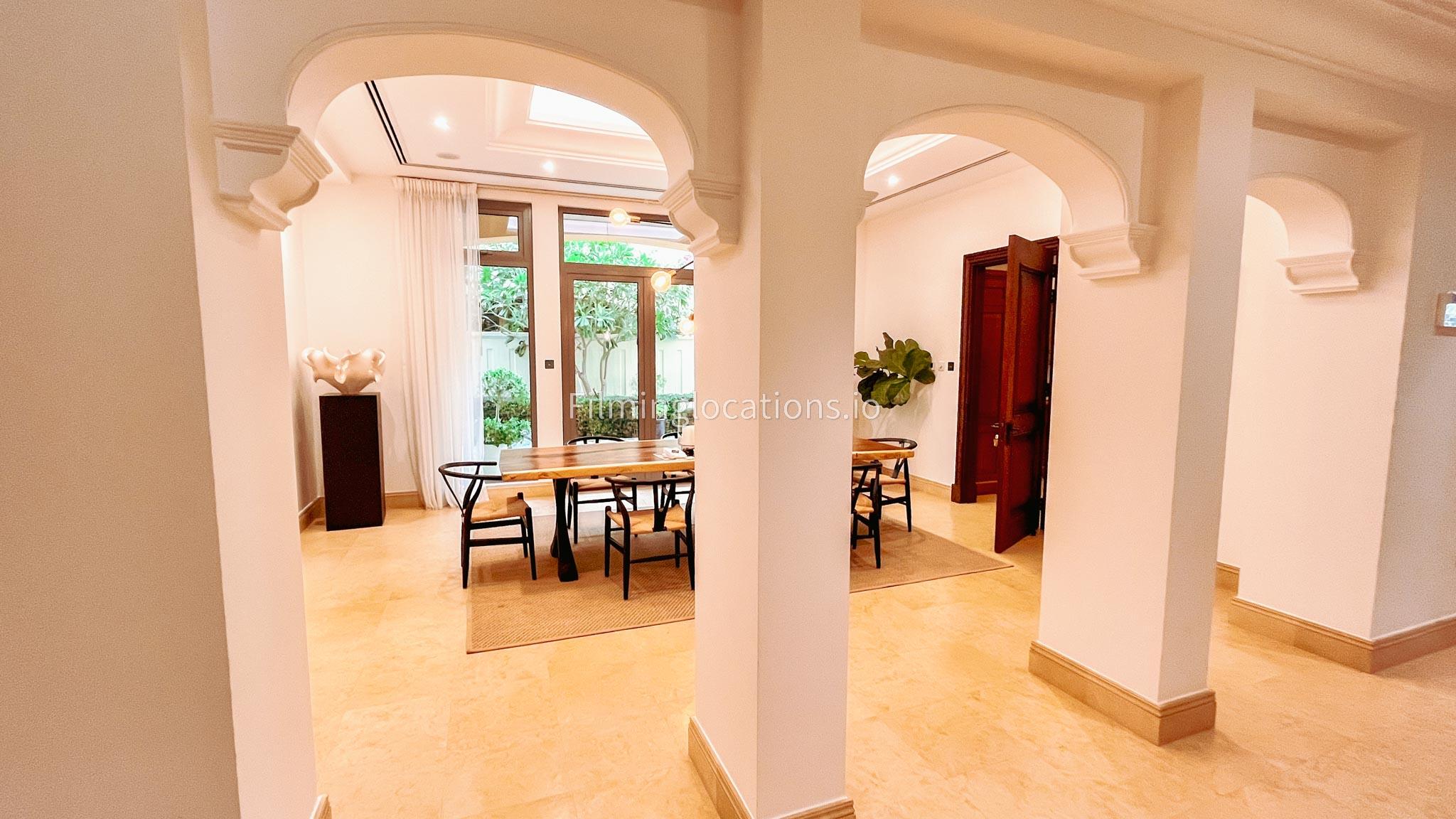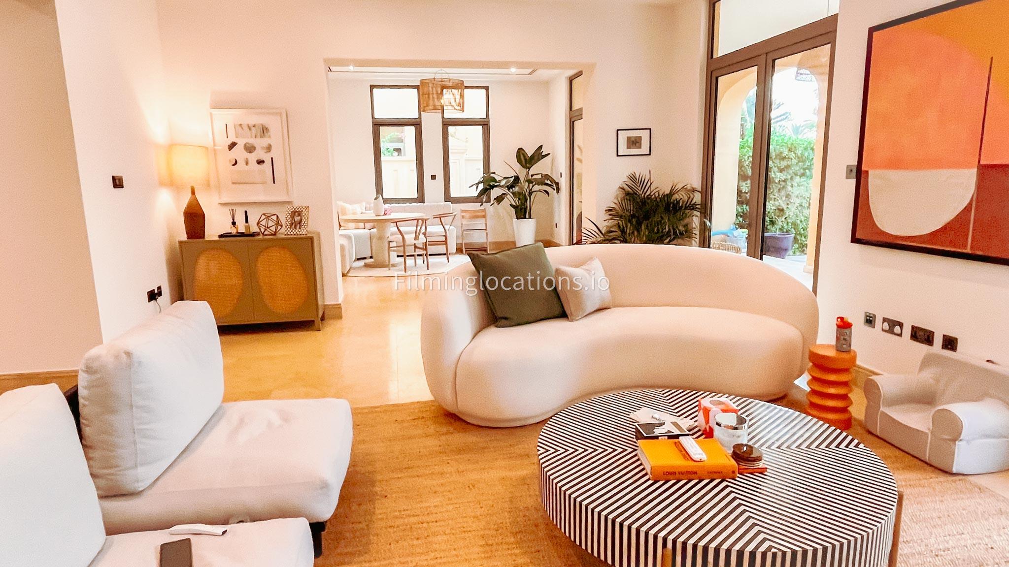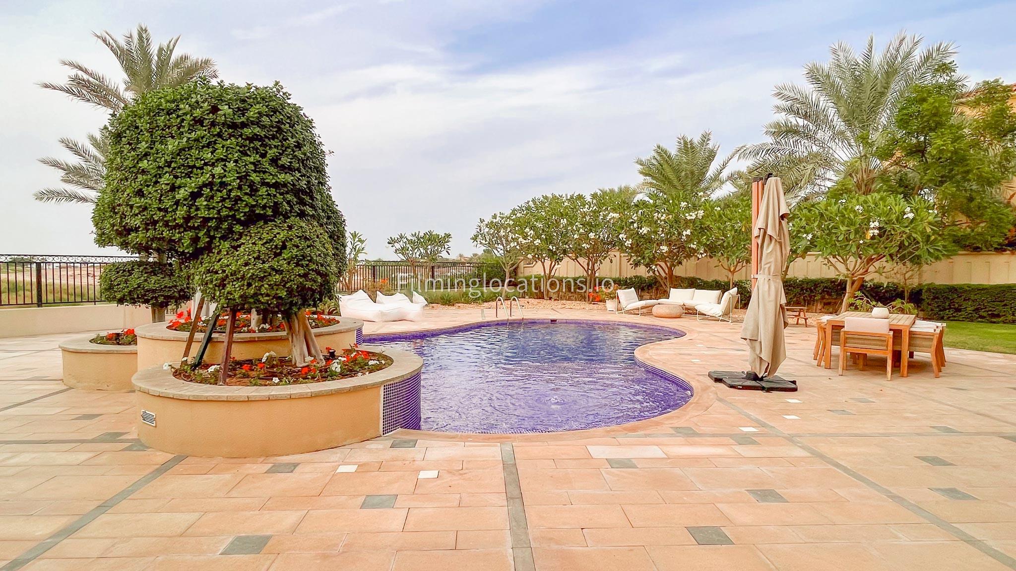 Our villa, located on Saadiyat Island, offers a delightful view of the golf course. It features five bedrooms, including two Kids rooms. The living room is elegantly decorated with artwork, furniture, and full-length mirrors. Additionally, there's a stunning backyard complete with a pristine pool and an outdoor seating area, all enveloped by lush greenery, making it an ideal setting for outdoor photography or film shoots. The kitchen is fully equipped, featuring an island, while the dining room emanates a tranquil atmosphere. The entire space is well-lit and exudes a peaceful ambiance