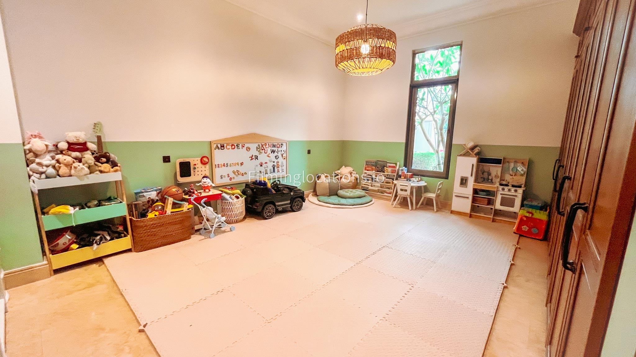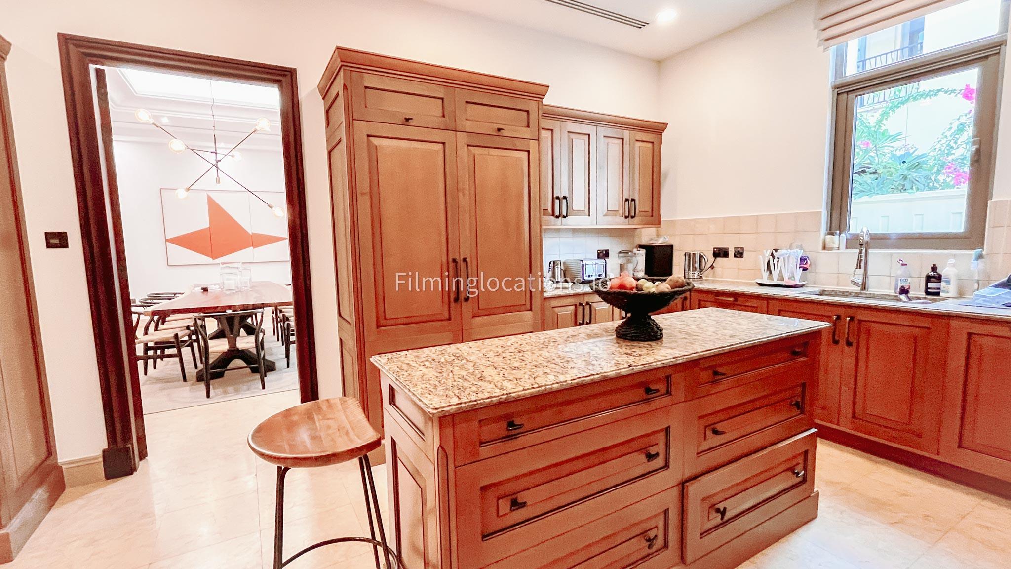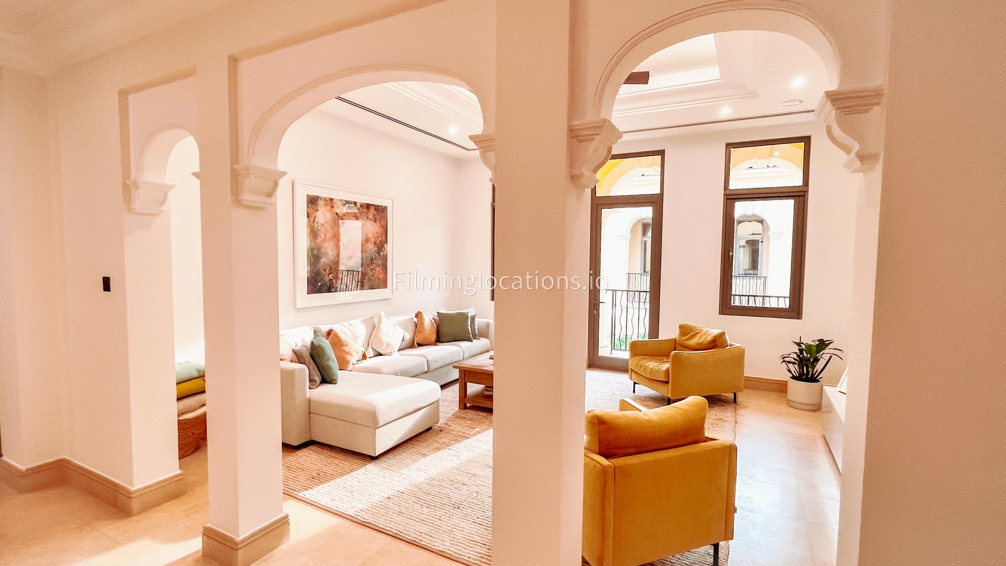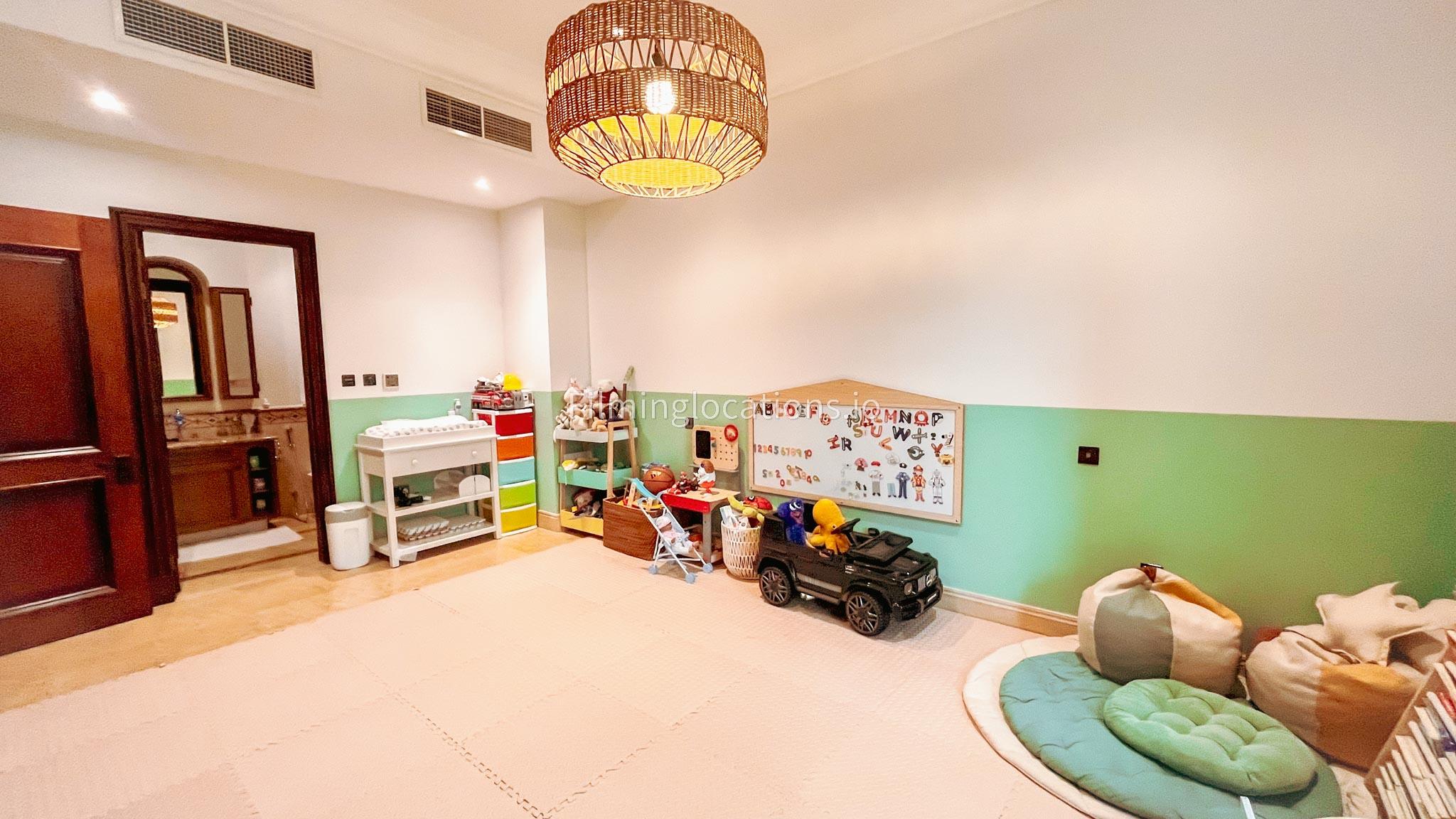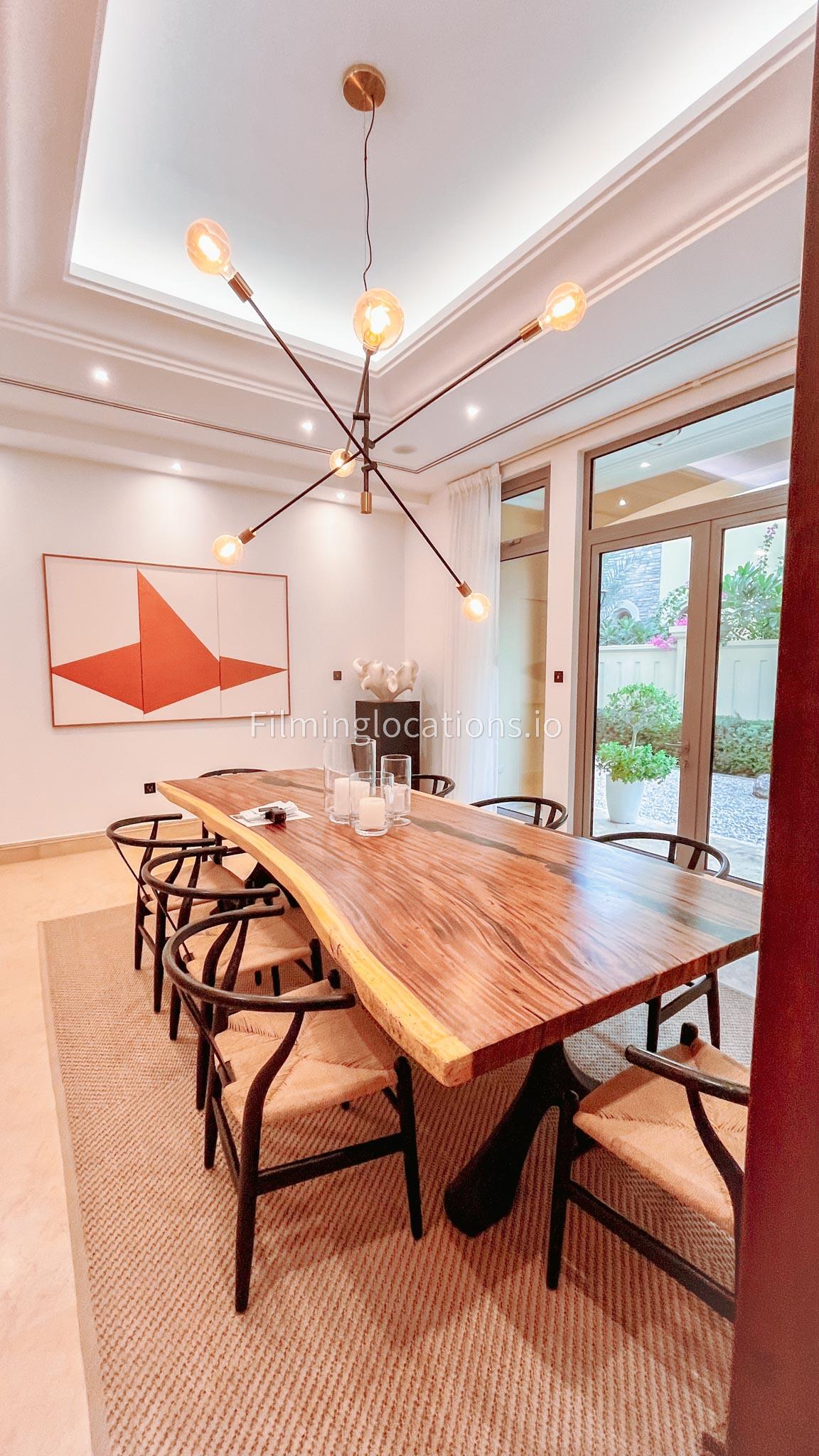 Our villa, located on Saadiyat Island, offers a delightful view of the golf course. It features five bedrooms, including two Kids rooms. The living room is elegantly decorated with artwork, furniture, and full-length mirrors. Additionally, there's a stunning backyard complete with a pristine pool and an outdoor seating area, all enveloped by lush greenery, making it an ideal setting for outdoor photography or film shoots. The kitchen is fully equipped, featuring an island, while the dining room emanates a tranquil atmosphere. The entire space is well-lit and exudes a peaceful ambiance
