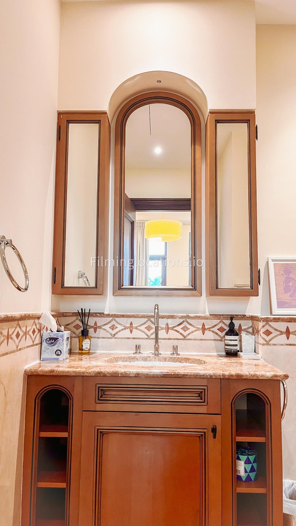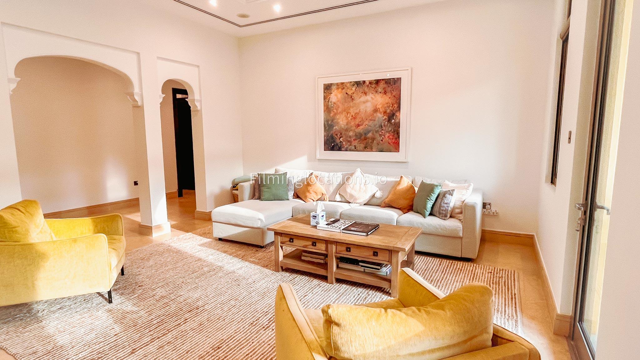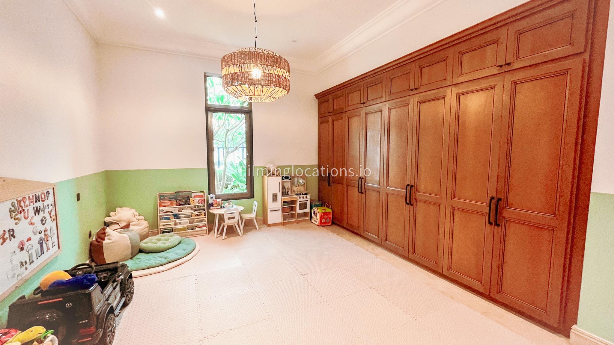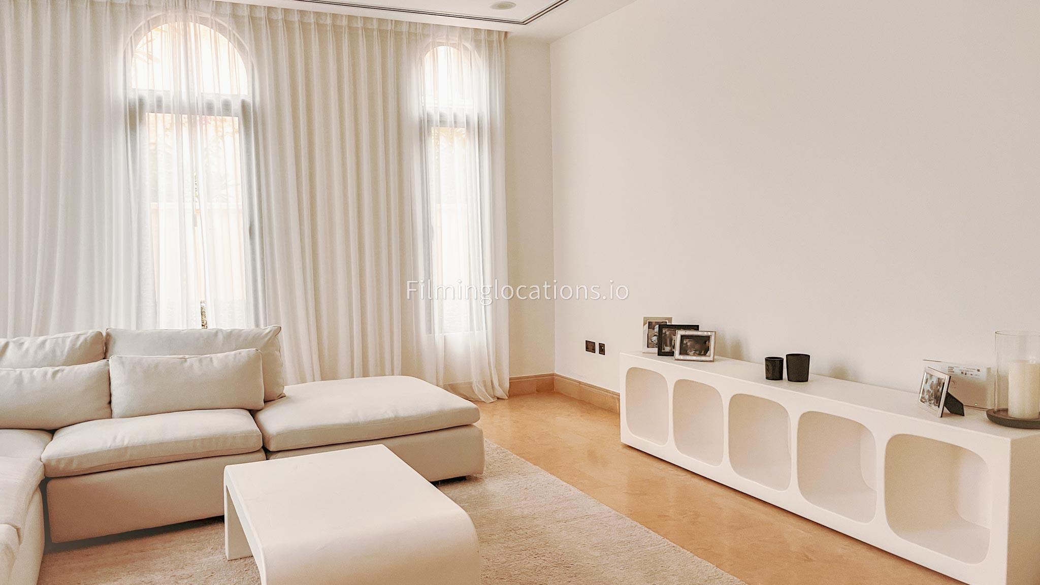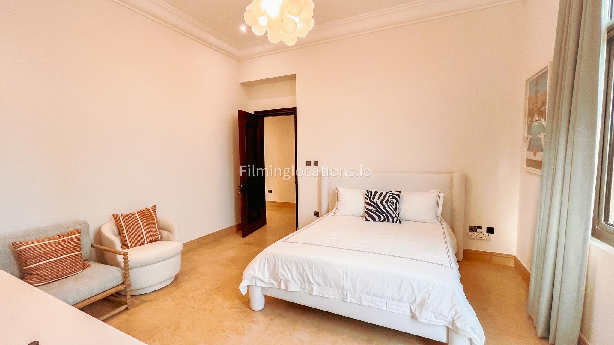 Our villa, located on Saadiyat Island, offers a delightful view of the golf course. It features five bedrooms, including two Kids rooms. The living room is elegantly decorated with artwork, furniture, and full-length mirrors. Additionally, there's a stunning backyard complete with a pristine pool and an outdoor seating area, all enveloped by lush greenery, making it an ideal setting for outdoor photography or film shoots. The kitchen is fully equipped, featuring an island, while the dining room emanates a tranquil atmosphere. The entire space is well-lit and exudes a peaceful ambiance