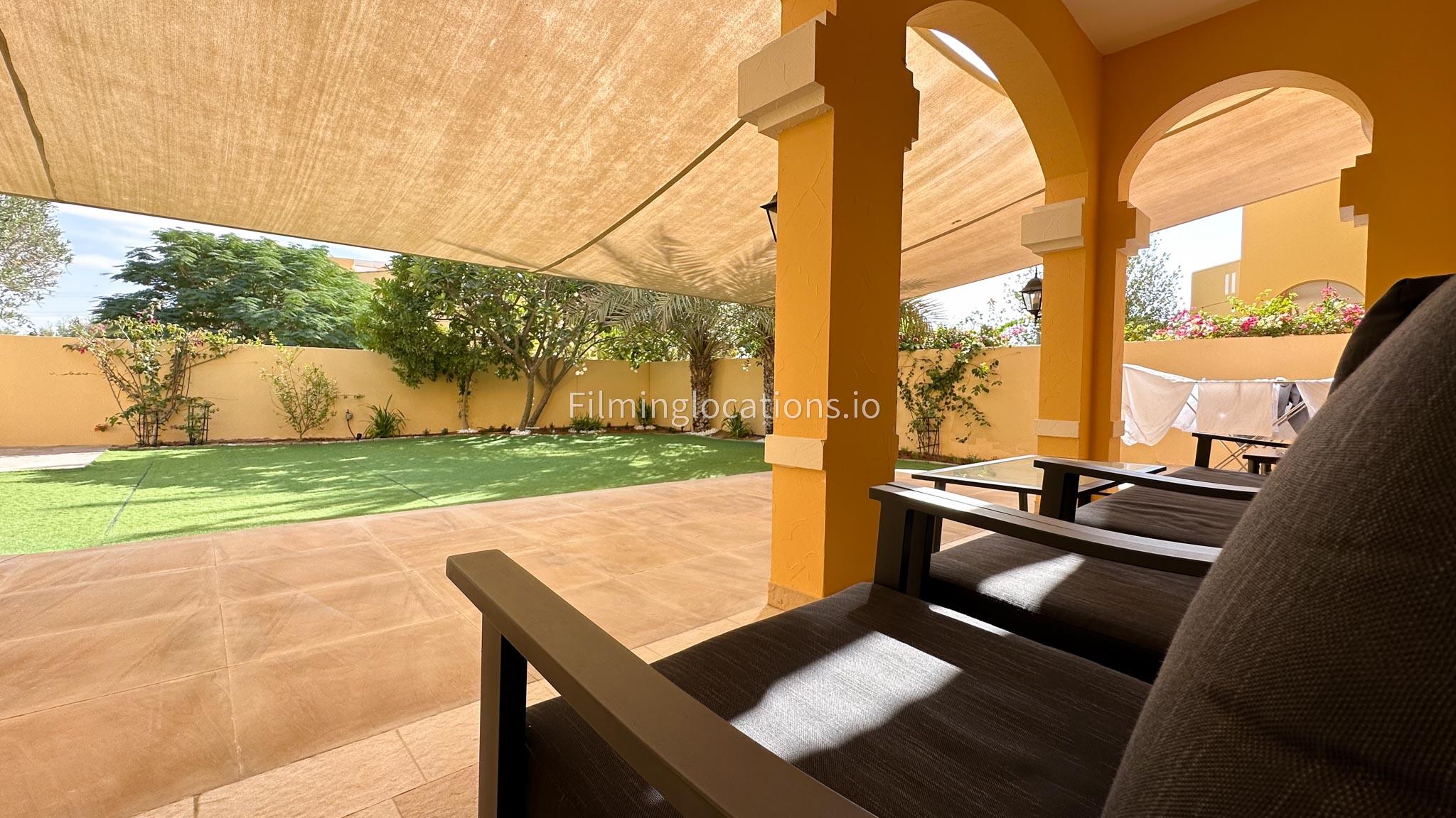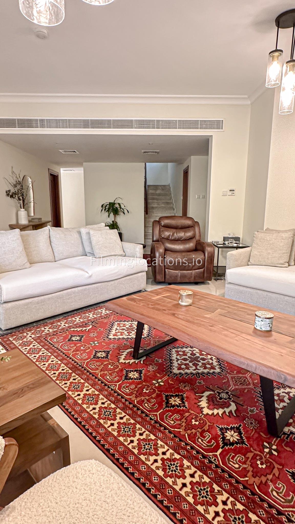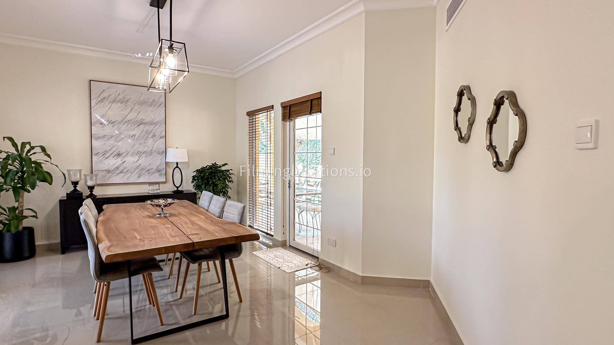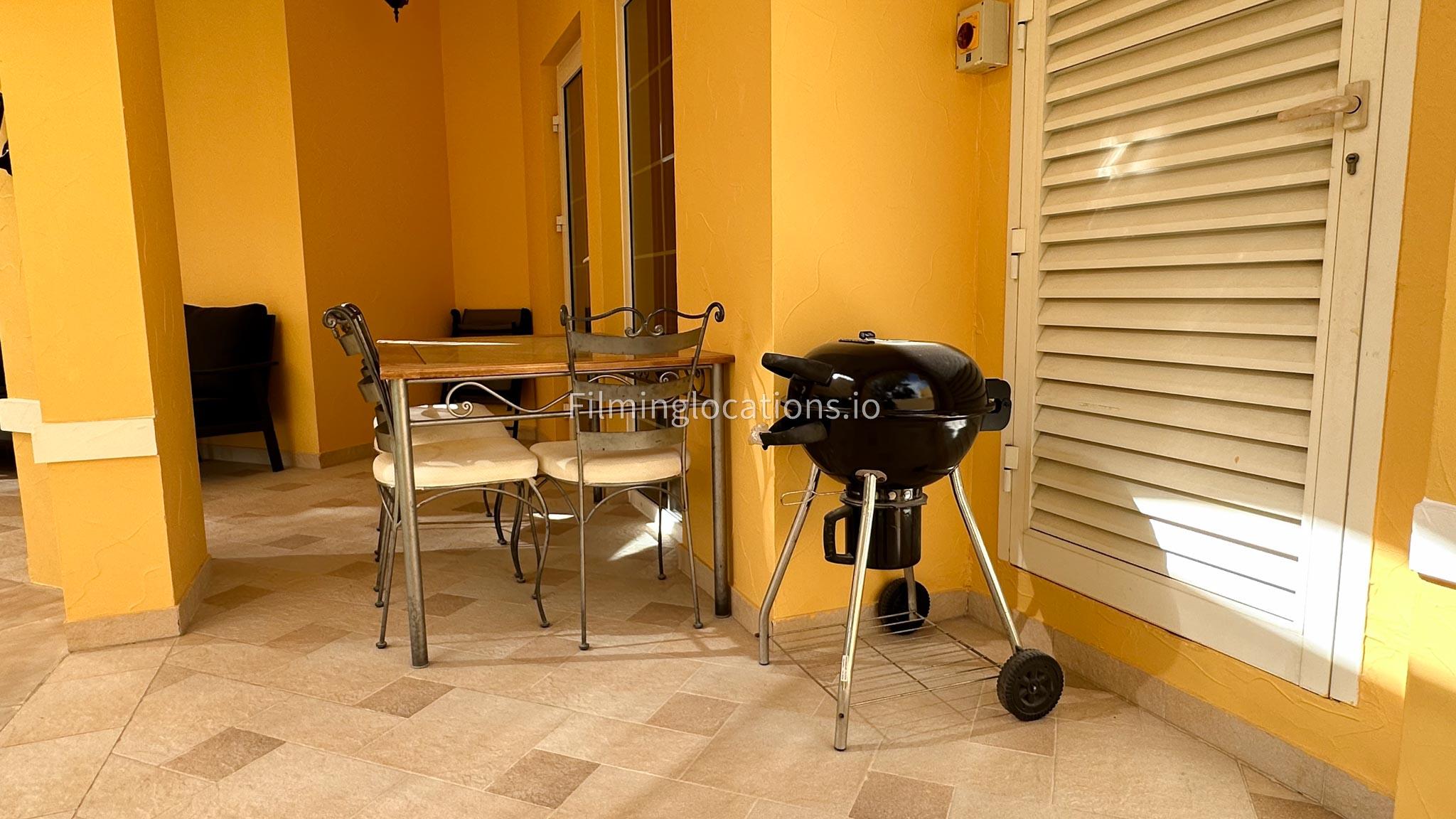 Our villa features a charming living room that embraces the sunrise, accompanied by an elegant dining area. The spacious backyard, adorned with delightful patio furniture and a BBQ grill, is easily accessible. Upstairs, a second living space with a balcony offers a scenic view of the lush green backyard. Filmmakers will appreciate the picturesque setting and versatile spaces for capturing dynamic scenes in both the cozy interior and the inviting outdoor area.