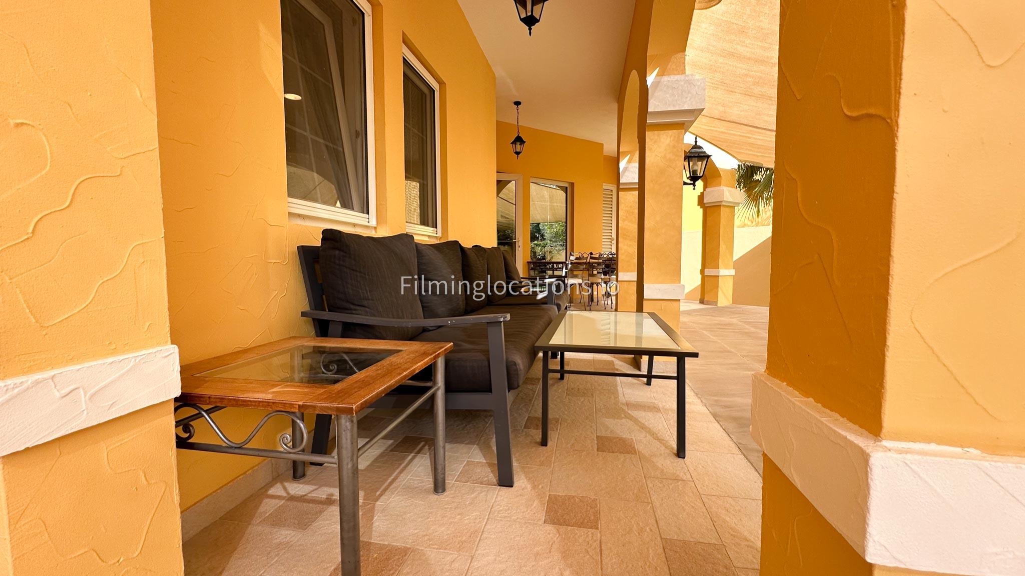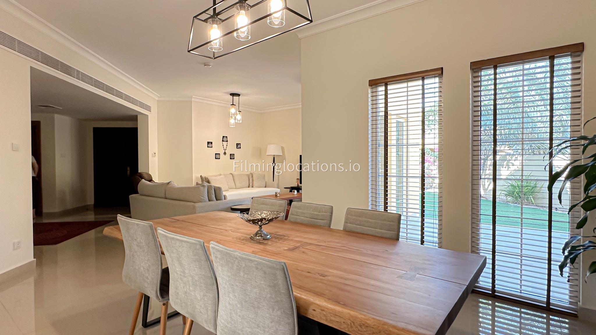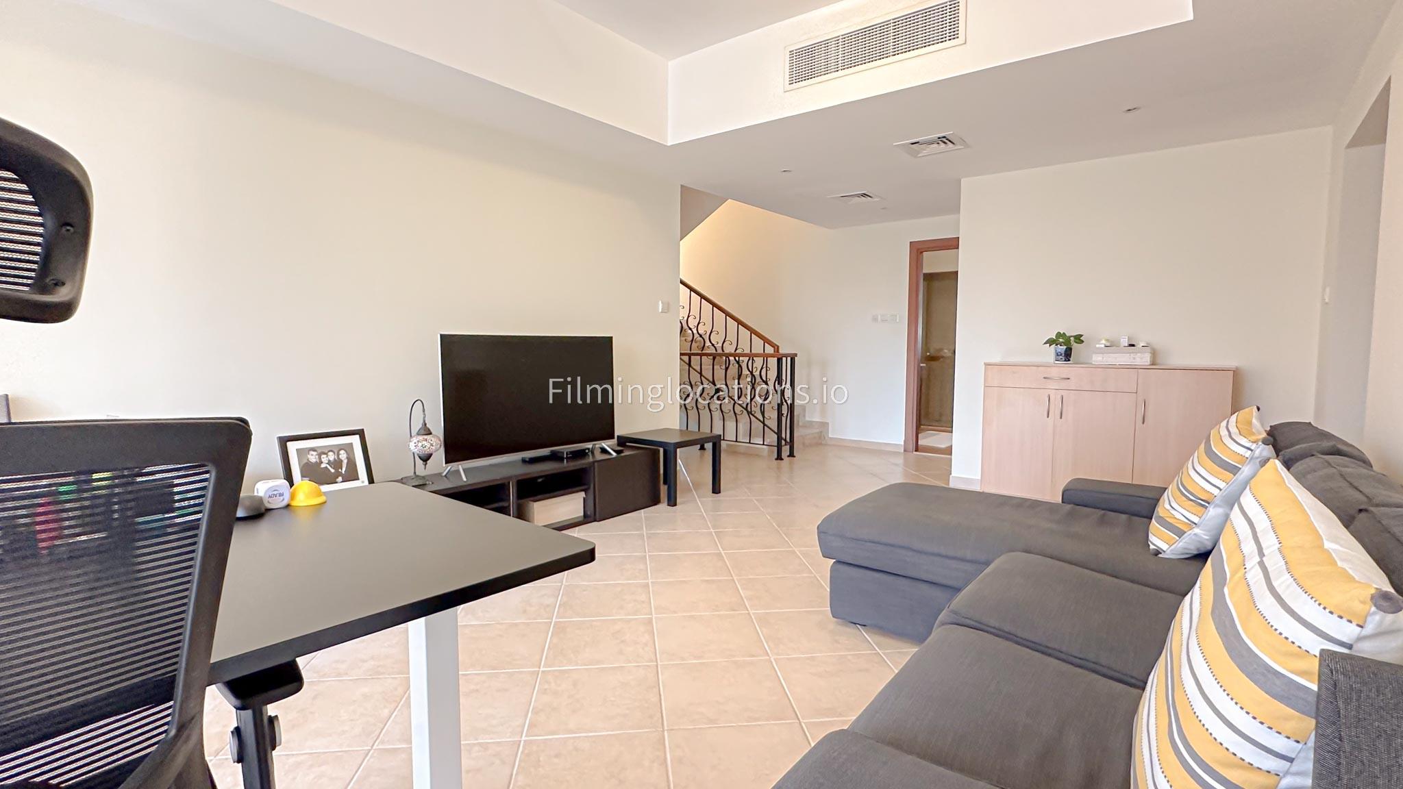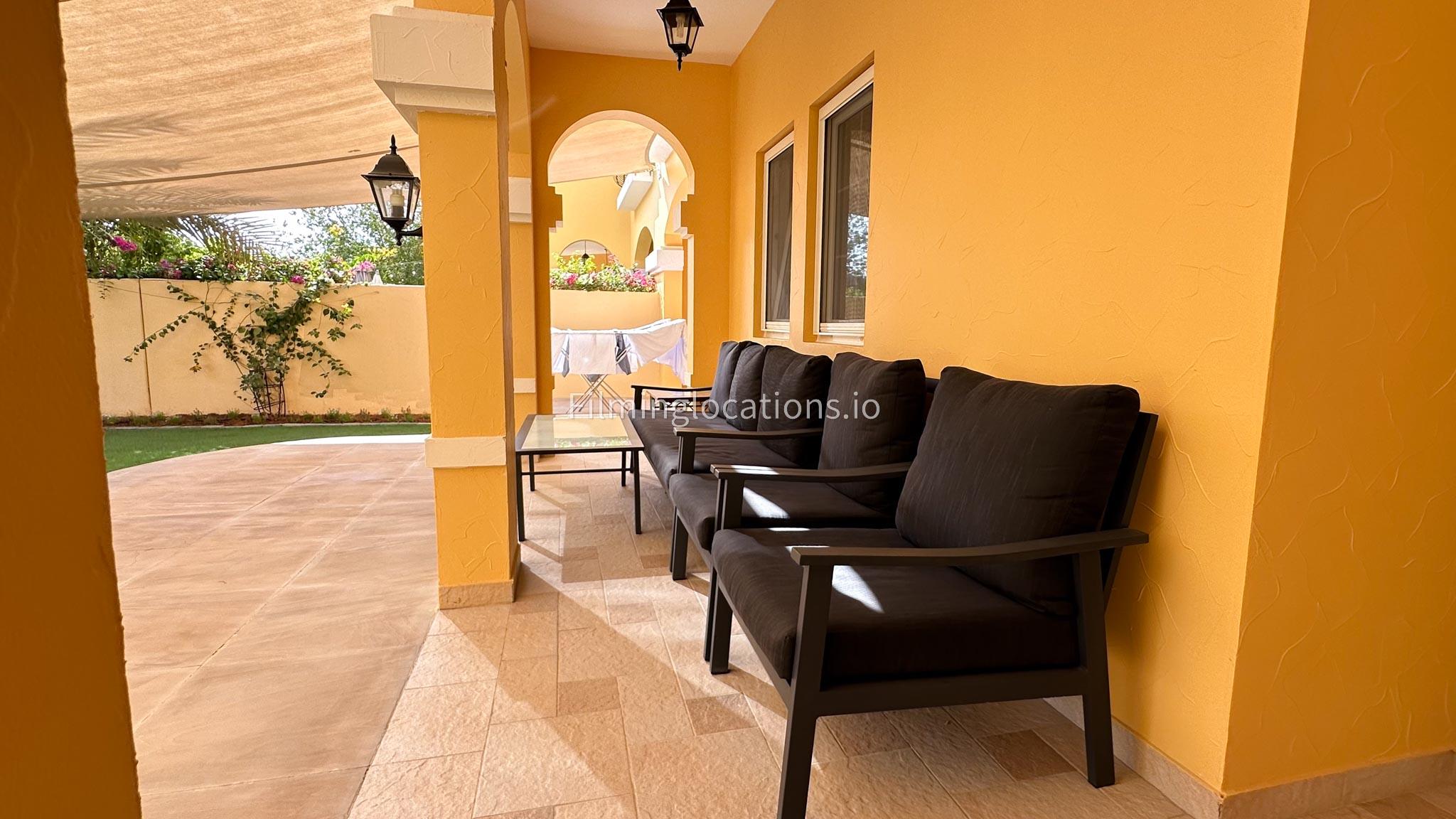 Our villa features a charming living room that embraces the sunrise, accompanied by an elegant dining area. The spacious backyard, adorned with delightful patio furniture and a BBQ grill, is easily accessible. Upstairs, a second living space with a balcony offers a scenic view of the lush green backyard. Filmmakers will appreciate the picturesque setting and versatile spaces for capturing dynamic scenes in both the cozy interior and the inviting outdoor area.