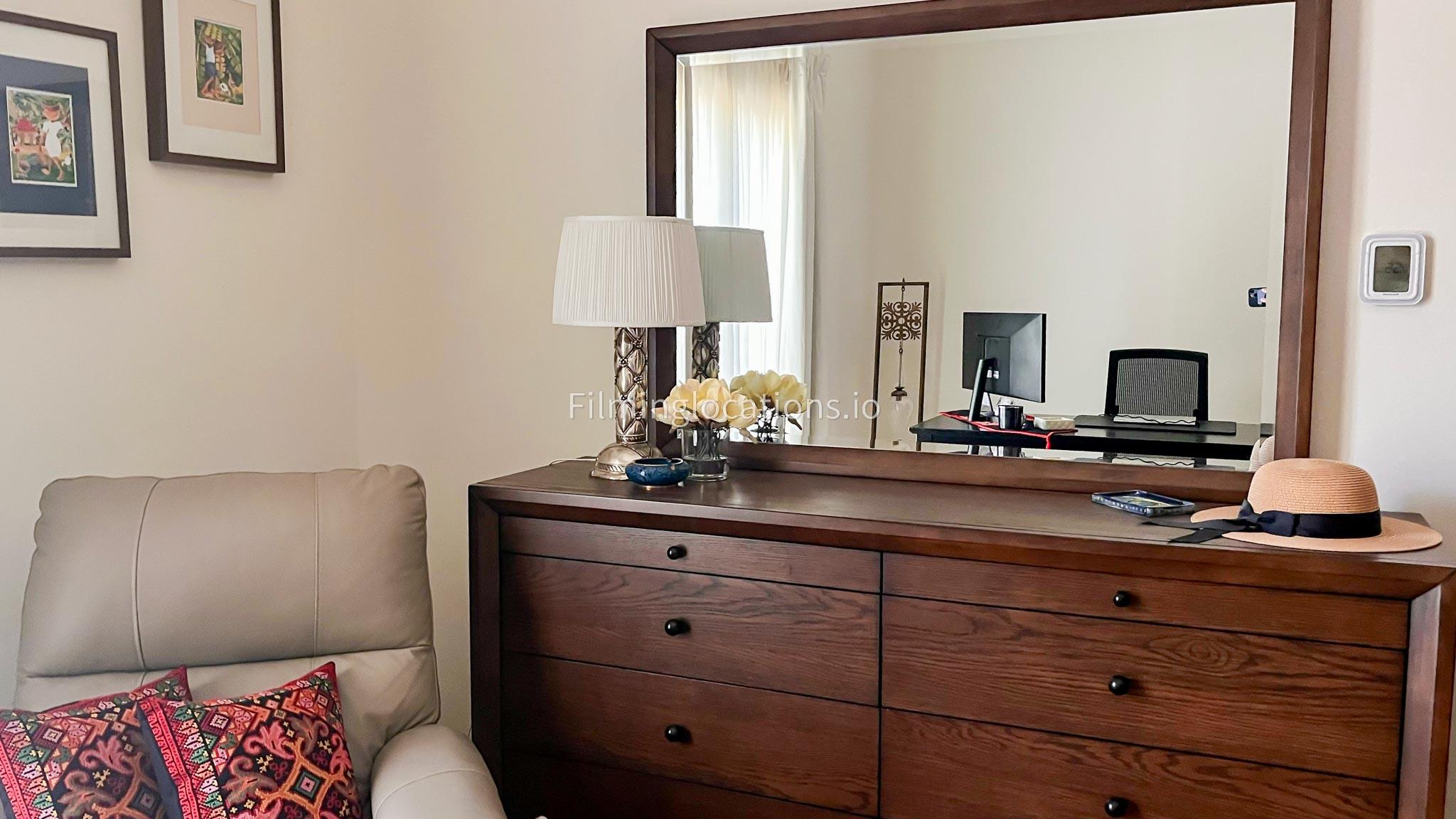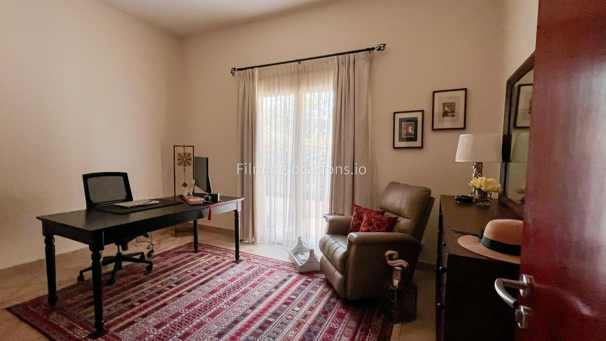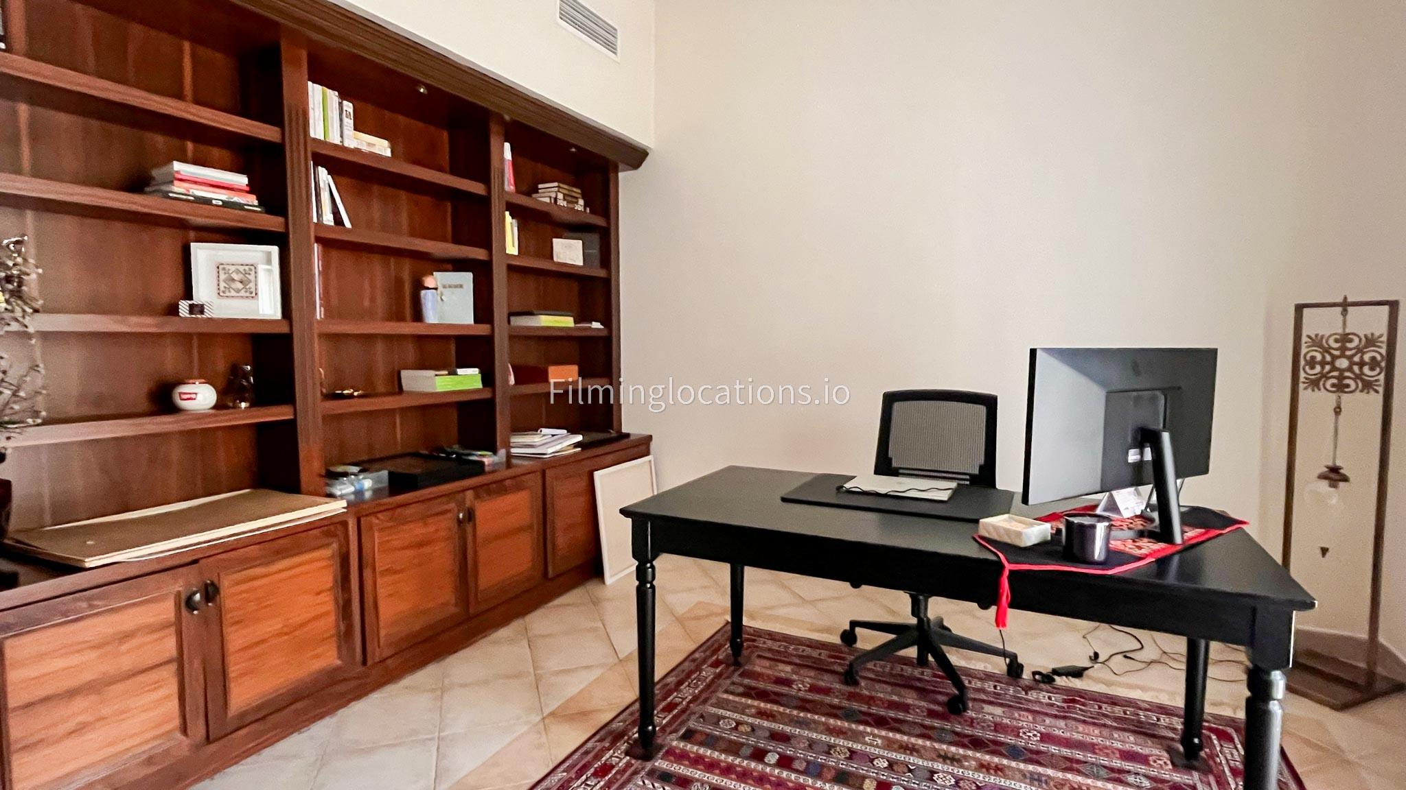 Ascending to the top floor, you'll find a second living space, a tastefully furnished office, and a bedroom. The villa's layout and outdoor aesthetics offer filmmakers an ideal canvas for capturing scenes with a perfect blend of sophistication and natural beauty.