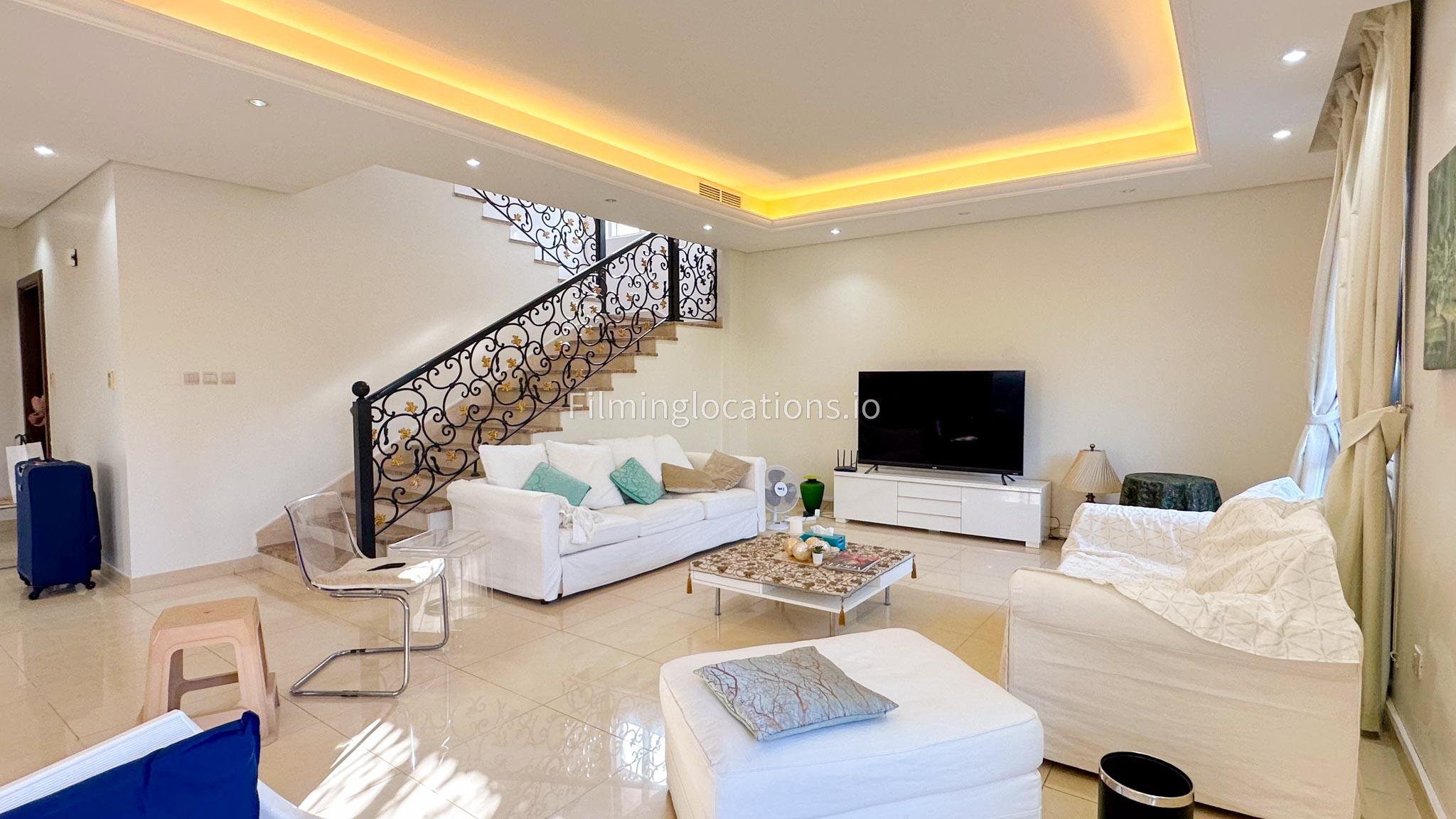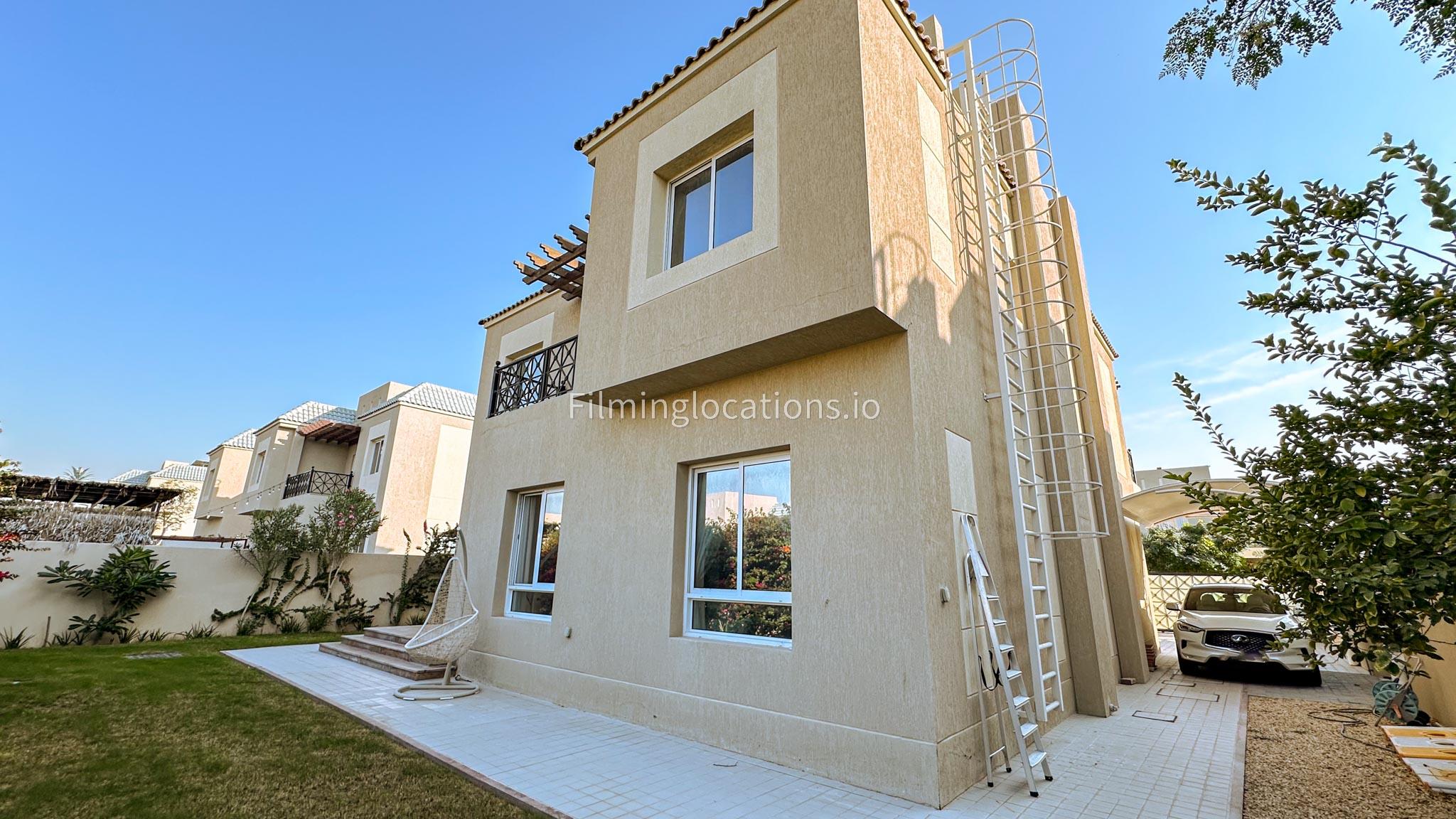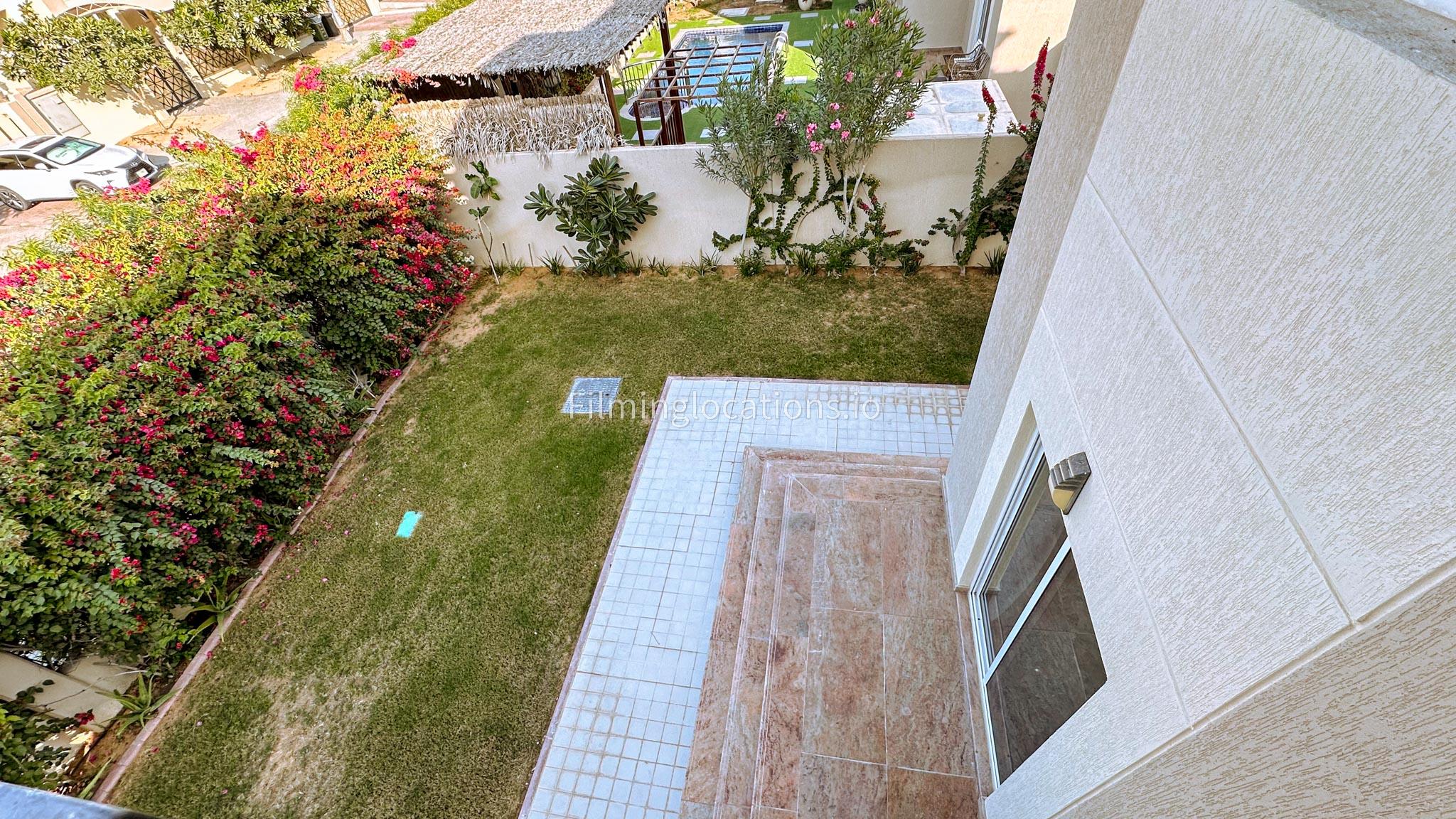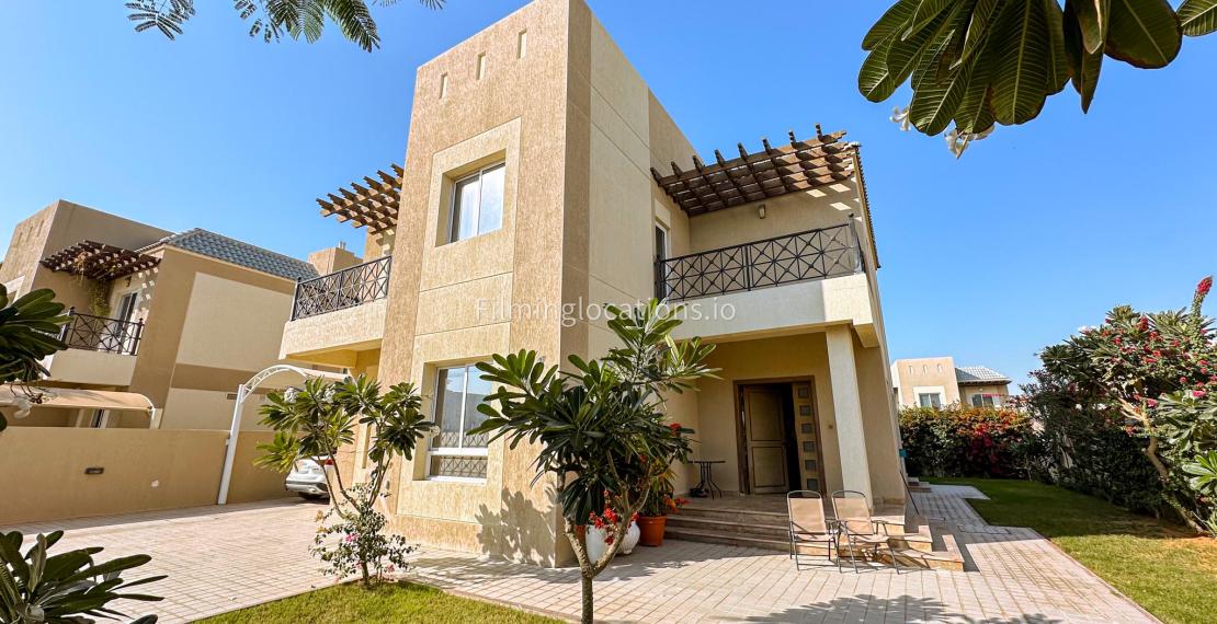 This two-story villa features a spacious living room along with a dining space, ideal for diverse scenes, while an adjoining office space offers a versatile setting for professional narratives. With five bedrooms designed for functionality, the villa meets various storytelling needs. A balcony provides scenic views, and the quaint backyard features outdoor seating and a garden. The simplicity in the layout make this villa a filmmaker's choice, offering a versatile backdrop for both indoor and outdoor scenes.